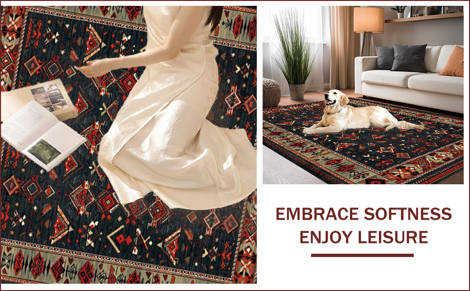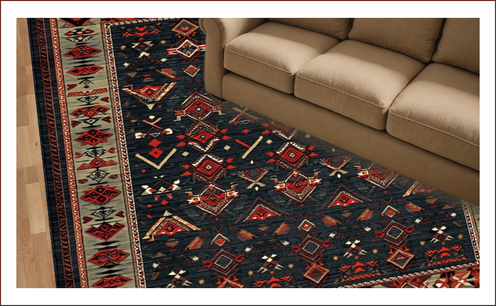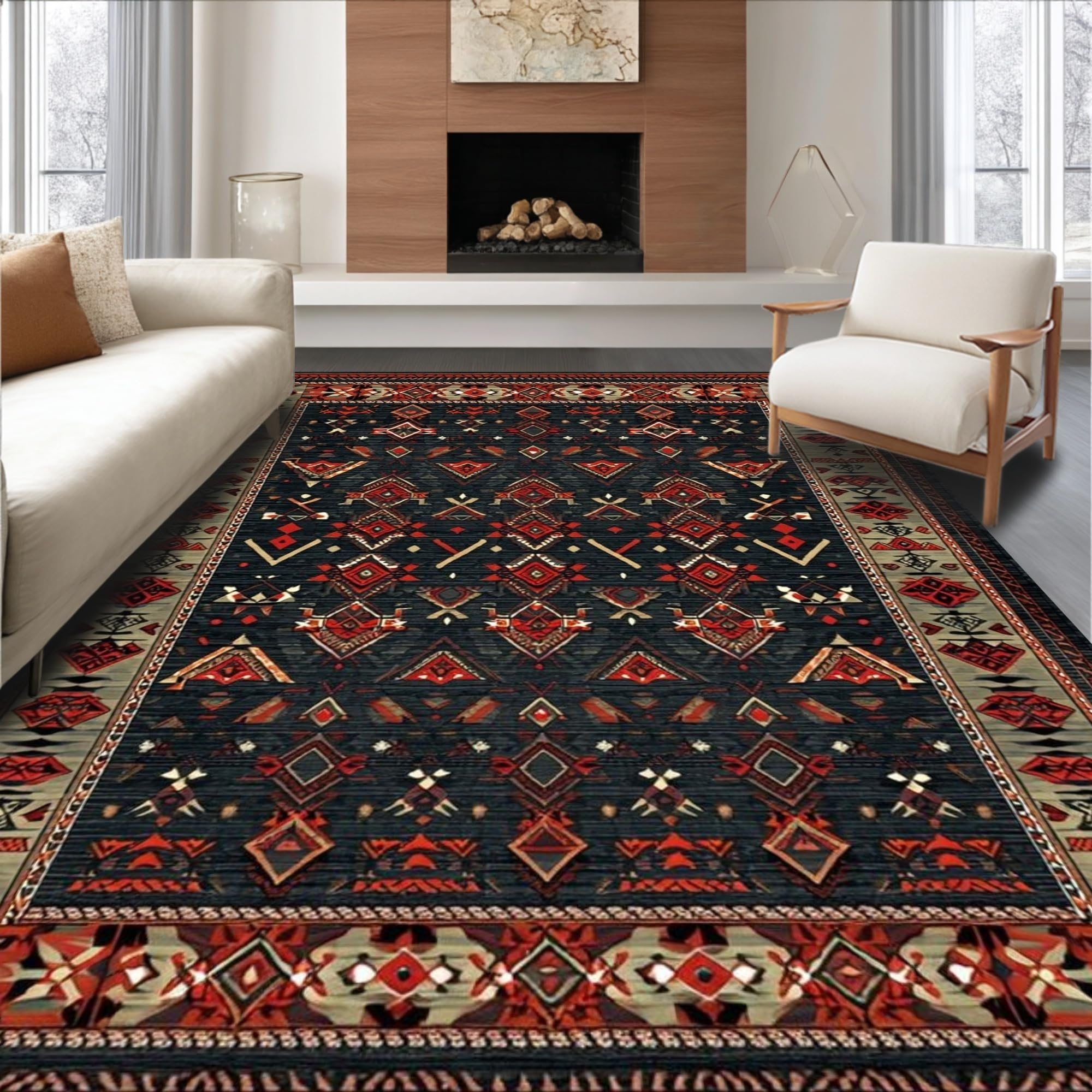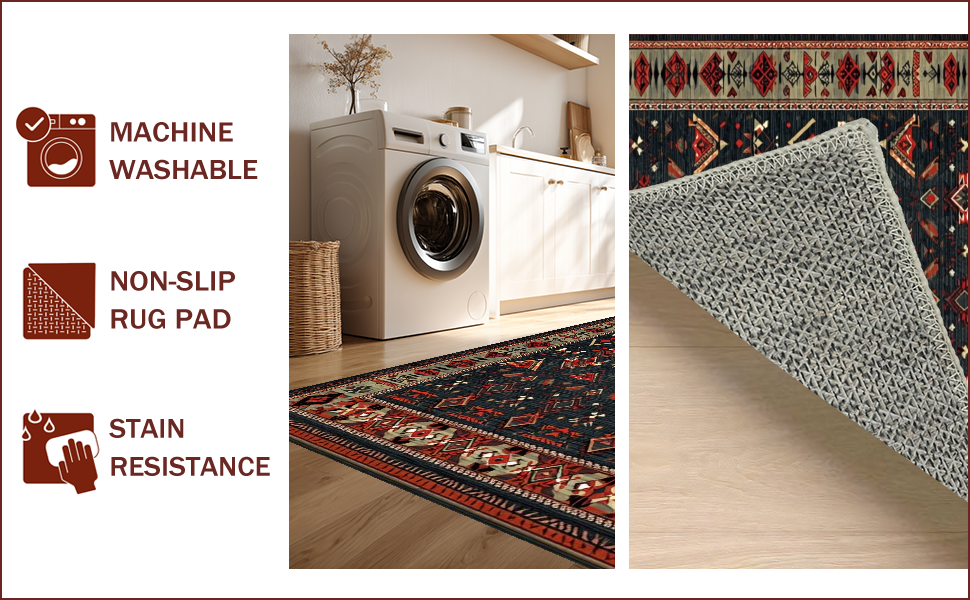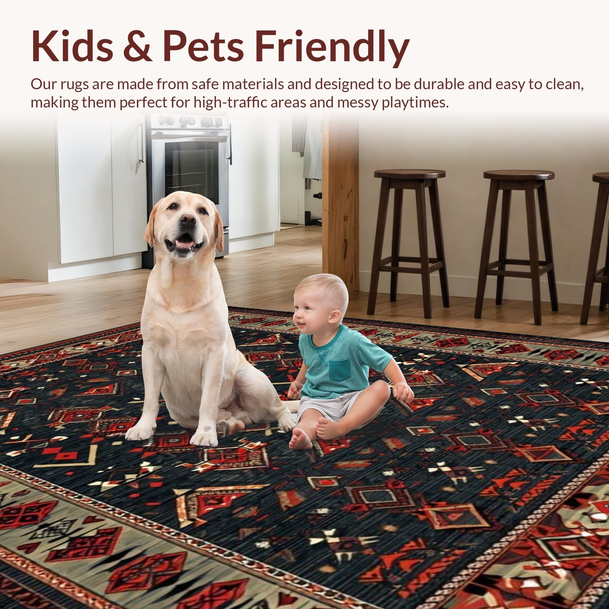 Ultra Soft Area Rug, Non Slip, Stain Resistant, Washable Area Rugs for Living Room, Bedroom, Distressed Tribal Patterned Charm(Red) Overview: