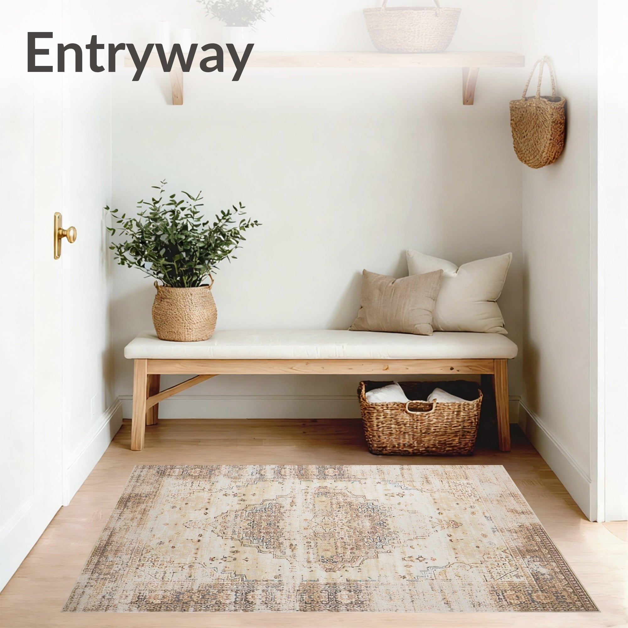 Ultra Soft Area Rug, Non Slip, Stain Resistant, Washable Area Rugs for Living Room, Bedroom, Distressed Vintage Area – Elegant Beige Brown Floor(Beige) Overview: