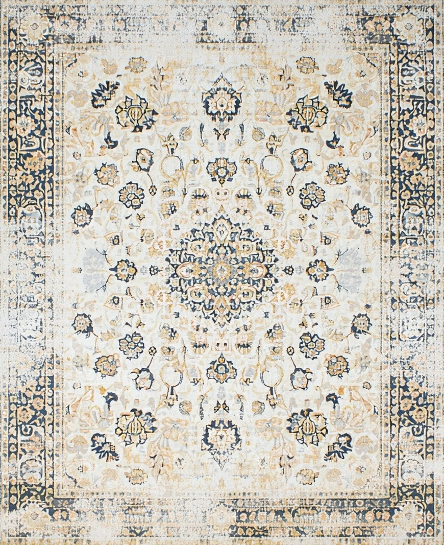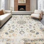 Ultra Soft Area Rug, Non Slip, Stain Resistant, Washable Area Rugs for Living Room, Bedroom, Distressed Vintage Medallion Design in Beige and Grey(Beige) Overview: