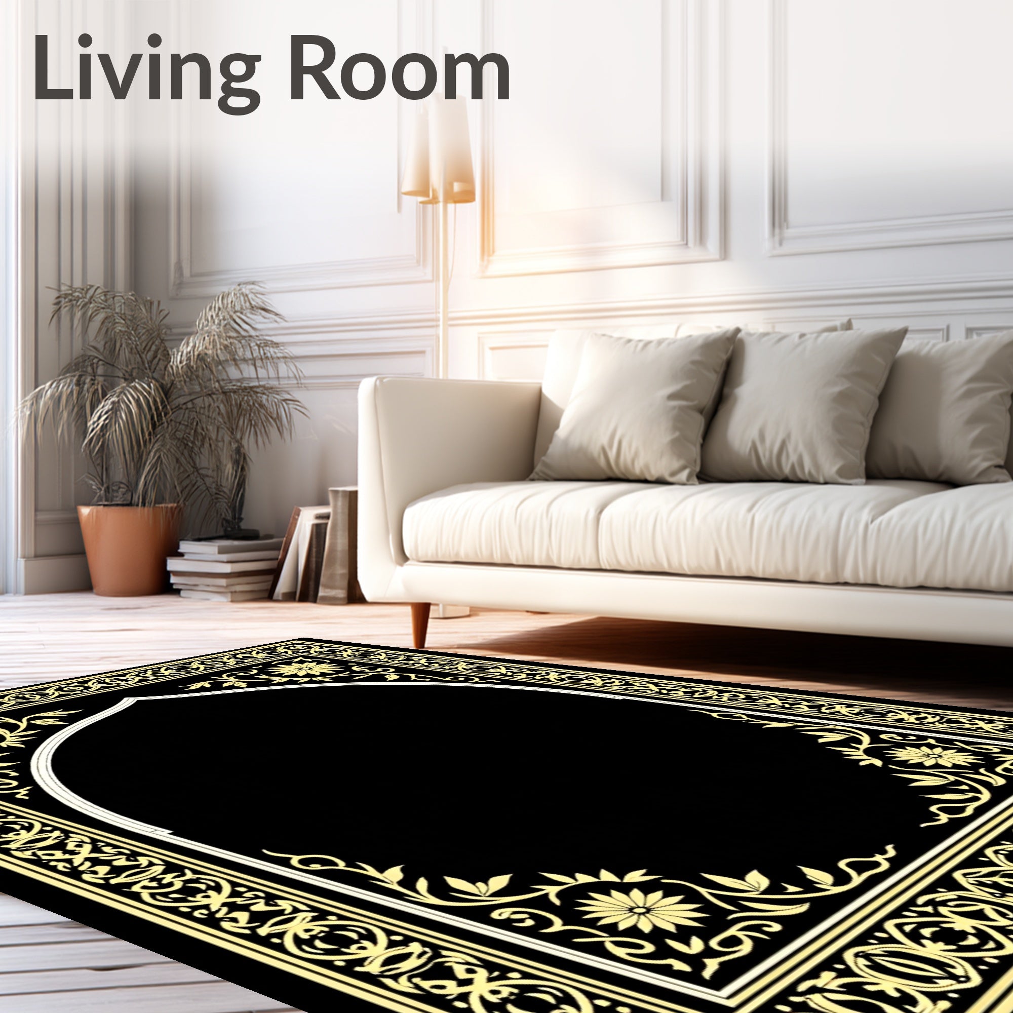 Ultra Soft Area Rug, Non Slip, Stain Resistant, Washable Area Rugs for Living Room, Bedroom, Divine Supplication Transportable Tube Container Eid Festival(Black) Overview: