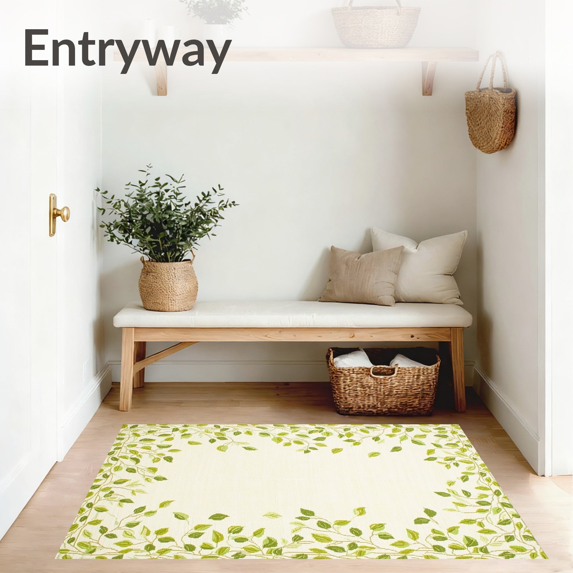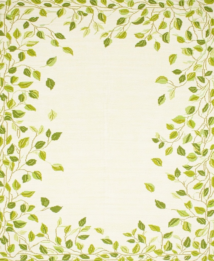 Doormat Elegant Beige Green Leaf Accents(Ivory)