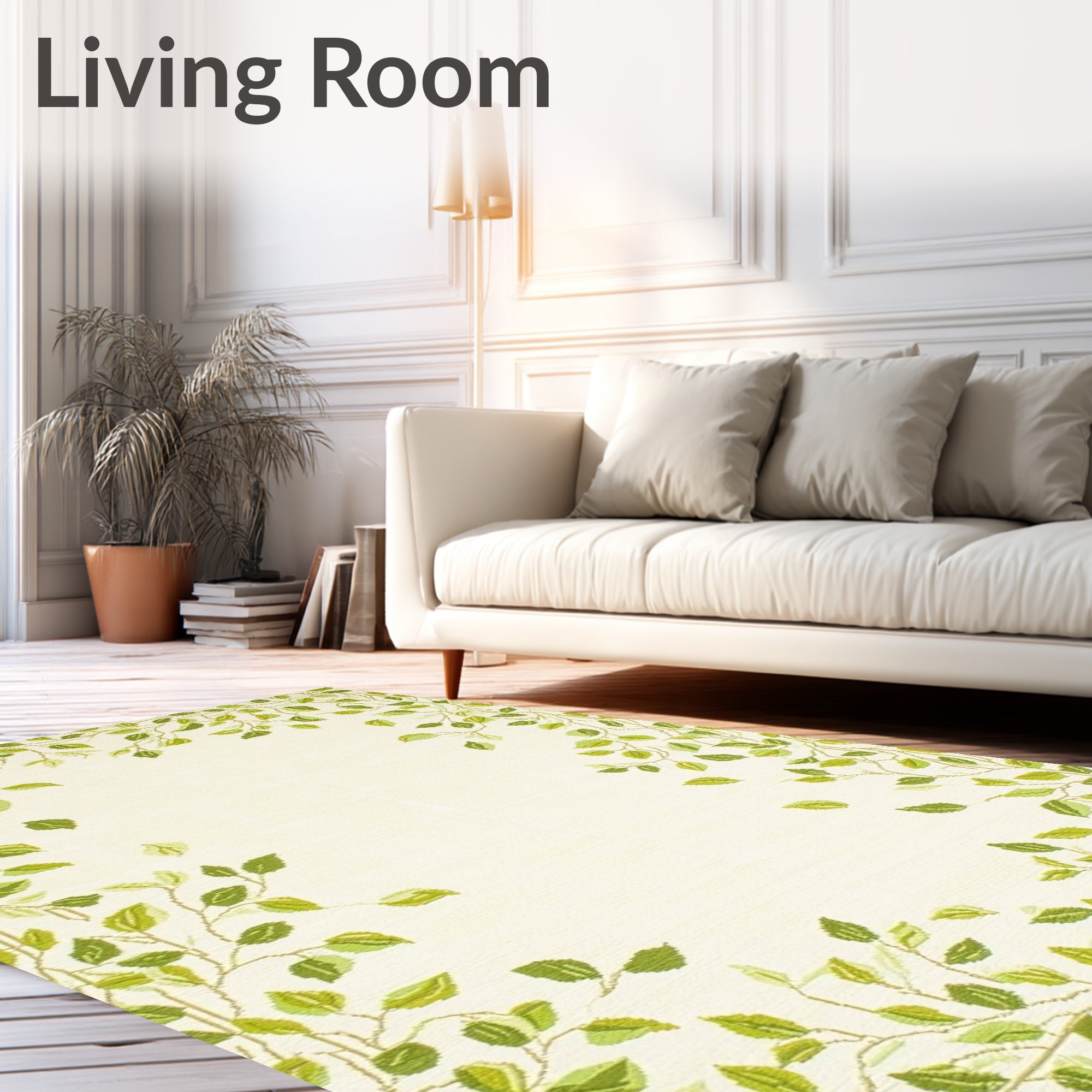 Ultra Soft Area Rug, Non Slip, Stain Resistant, Washable Area Rugs for Living Room, Bedroom, Doormat Elegant Beige Green Leaf Accents(Ivory) Overview: