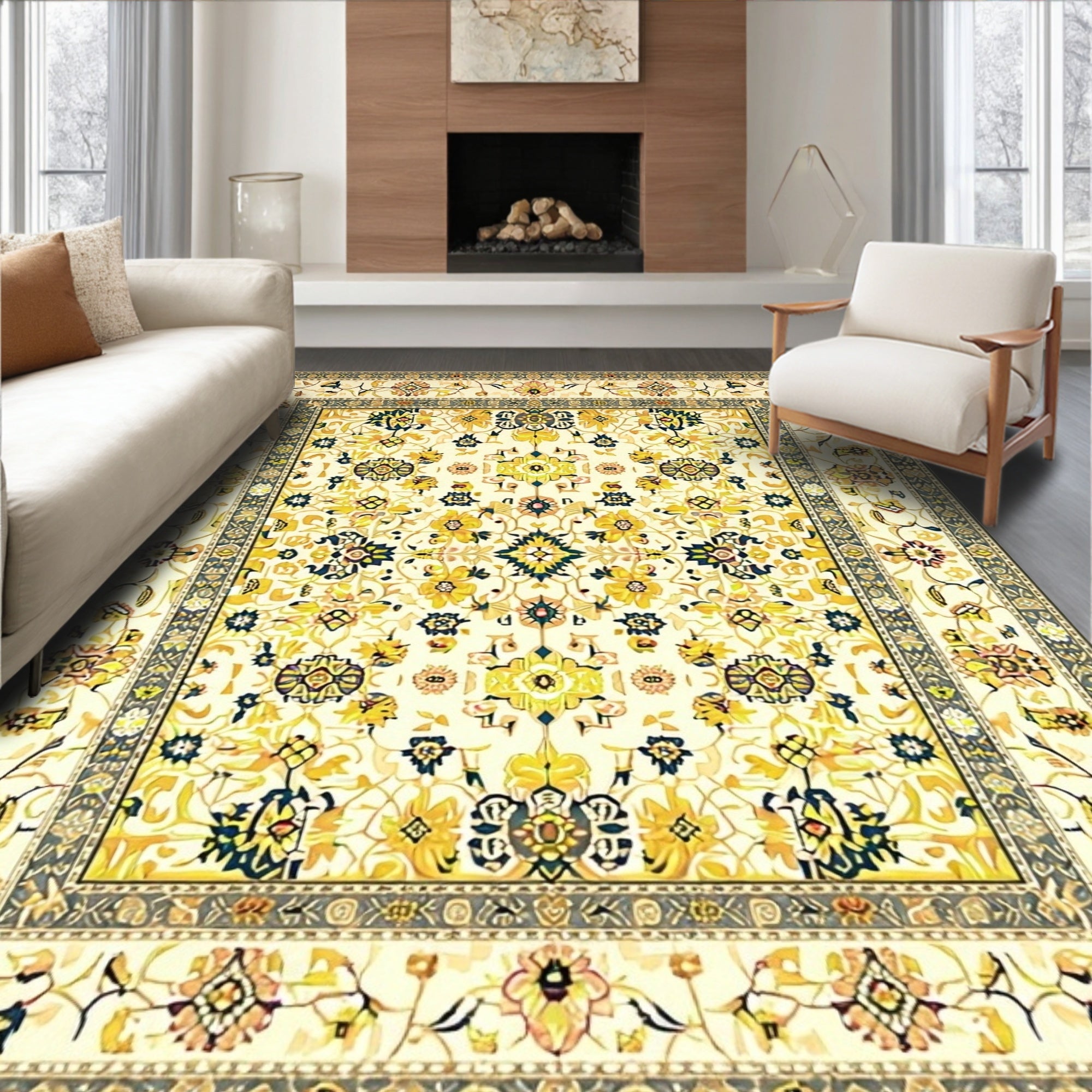 Ultra Soft Area Rug, Non Slip, Stain Resistant, Washable Area Rugs for Living Room, Bedroom, Doormat with Beige Yellow Distressed Design(Beige) Overview: