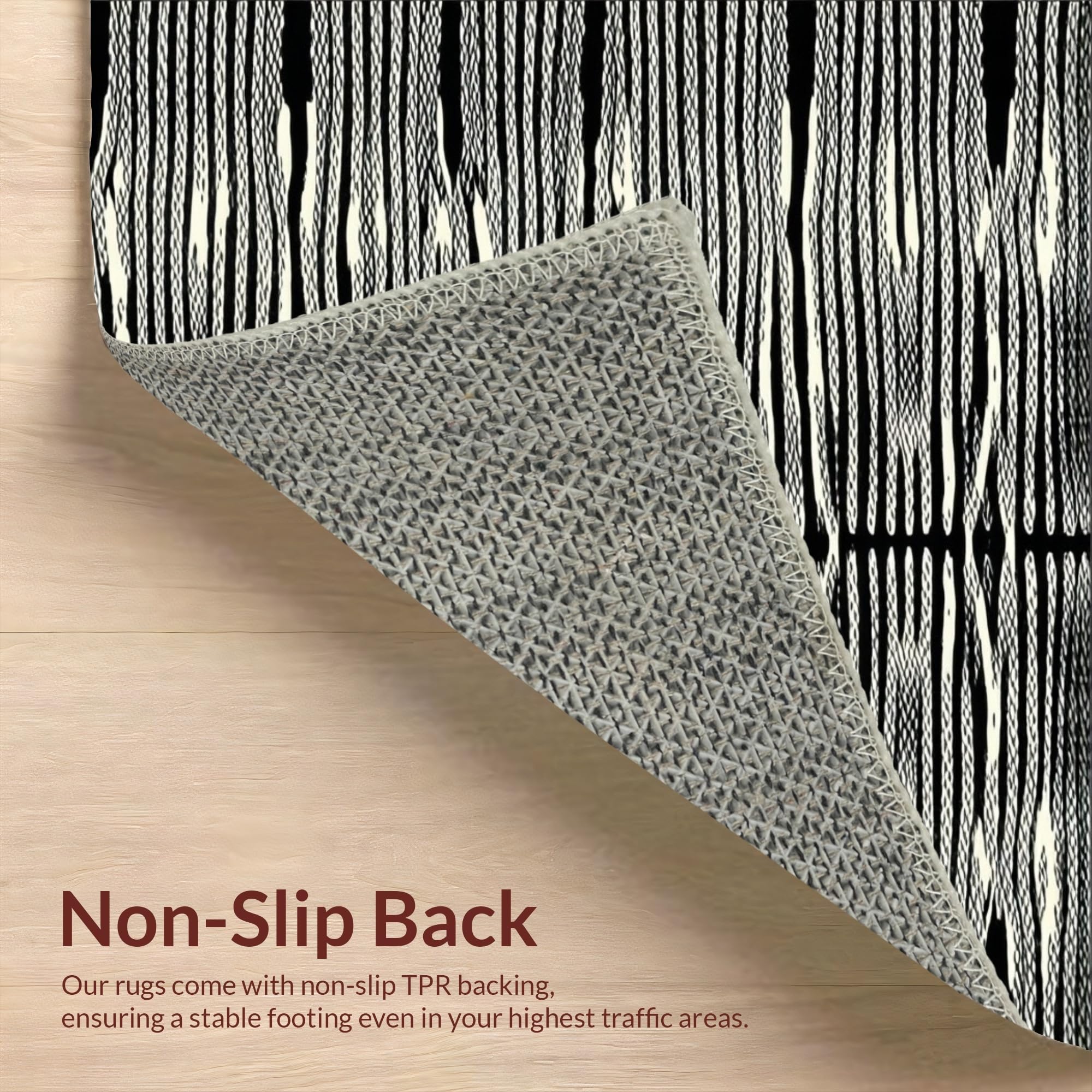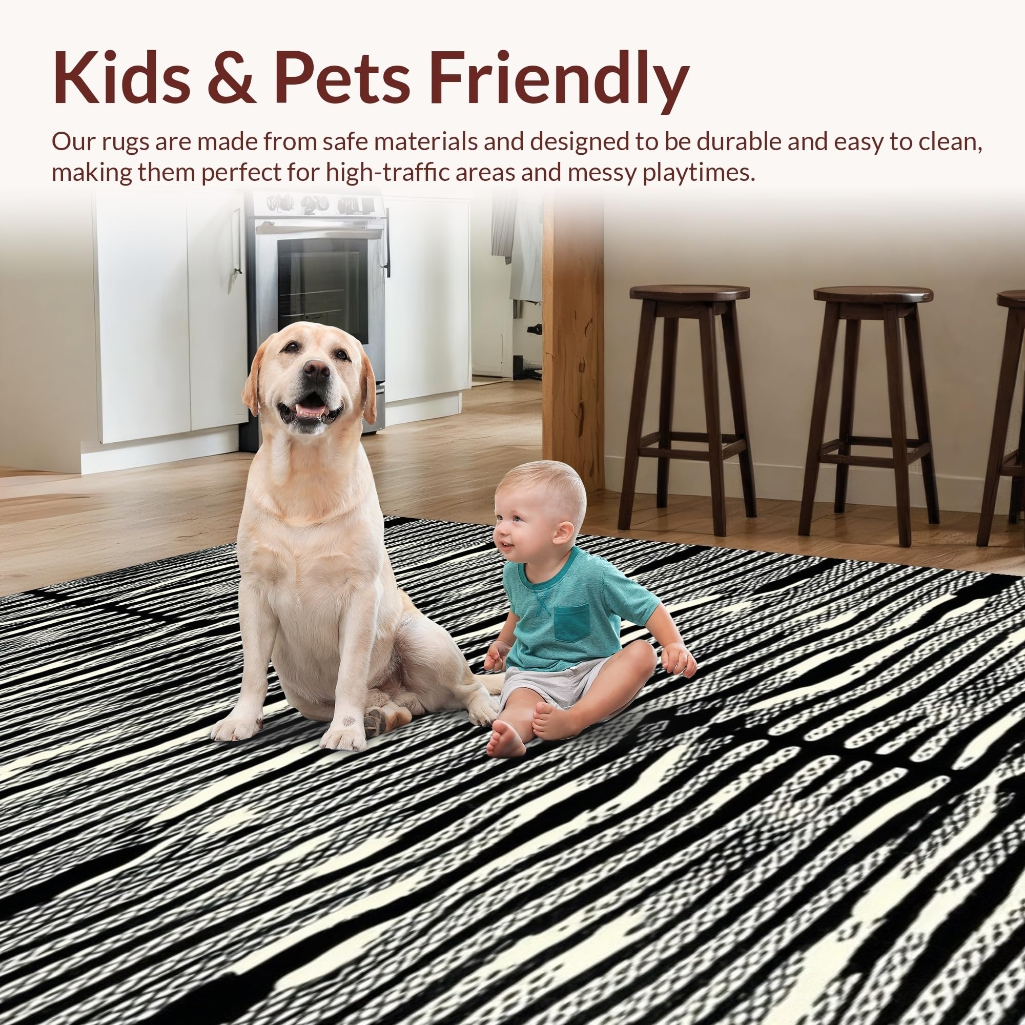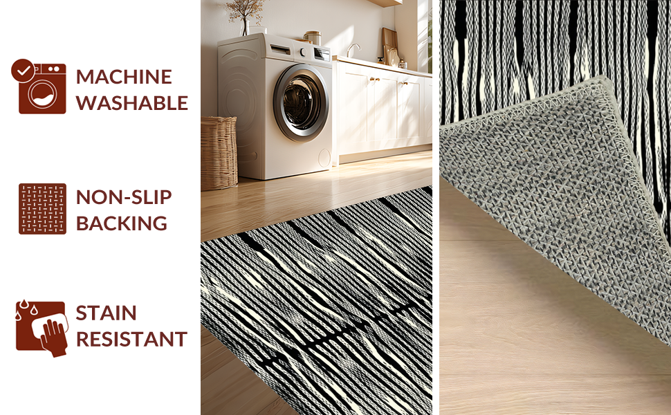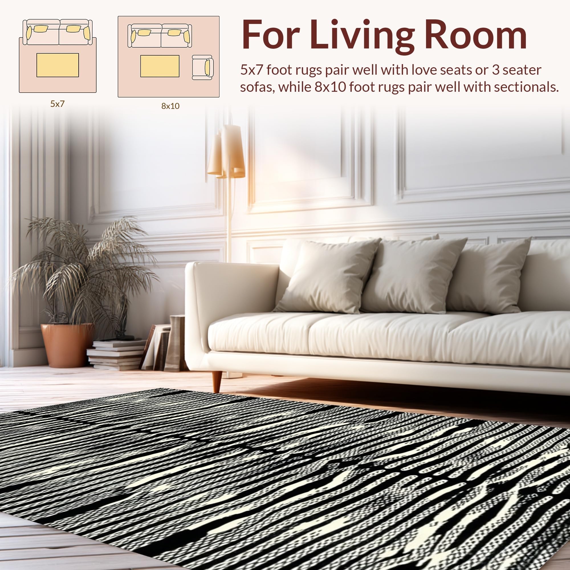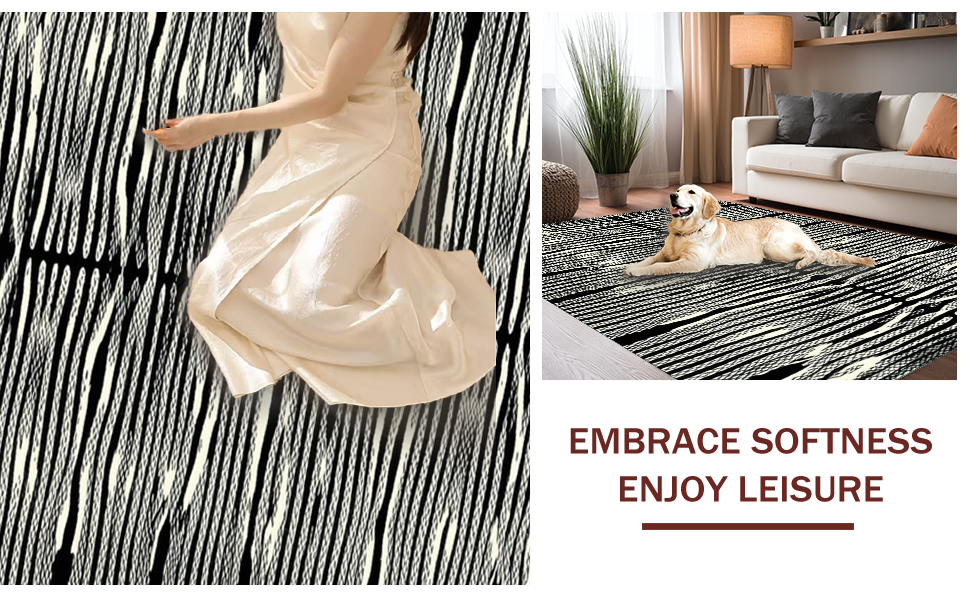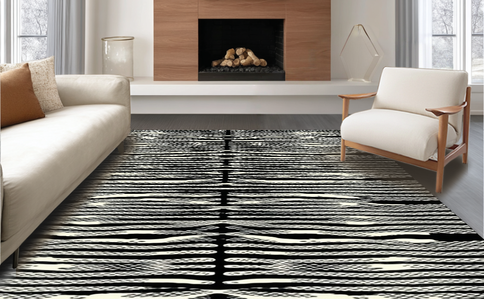 Ultra Soft Area Rug, Non Slip, Stain Resistant, Washable Area Rugs for Living Room, Bedroom, Dramatic Black and Beige Visual Flow(Black) Overview: