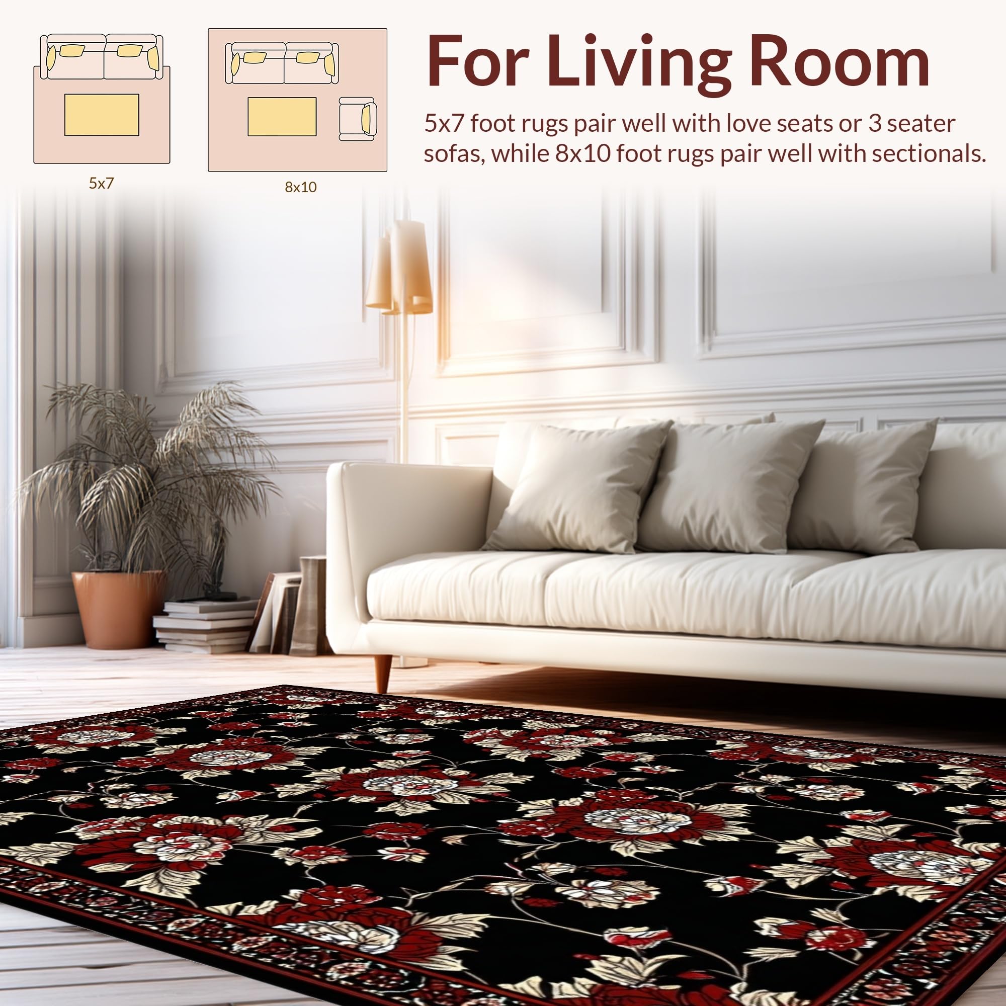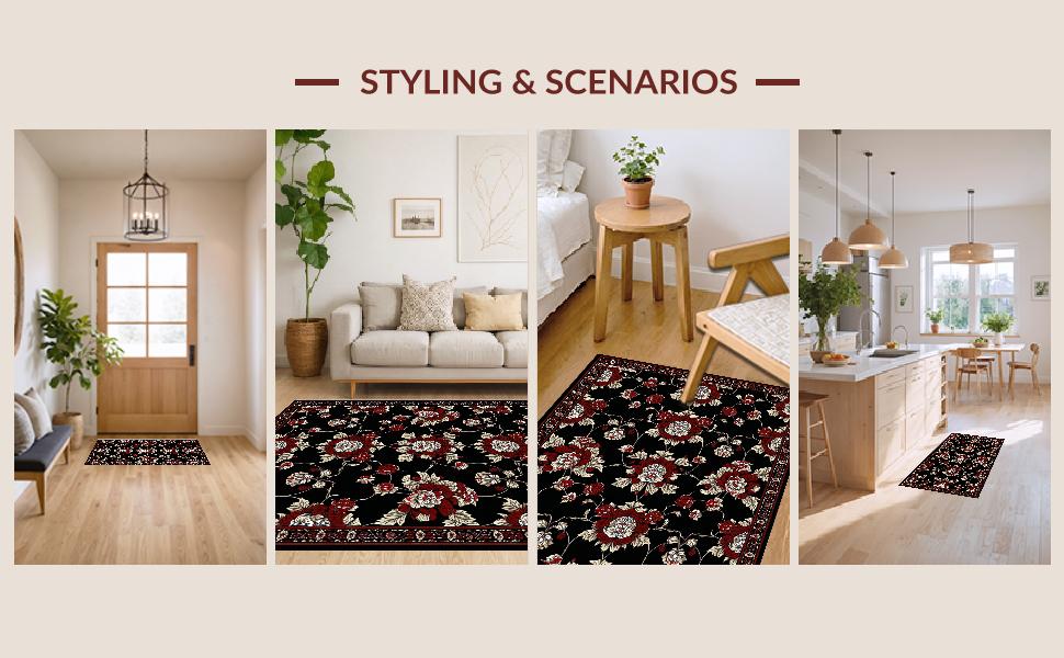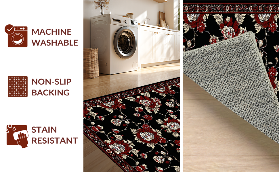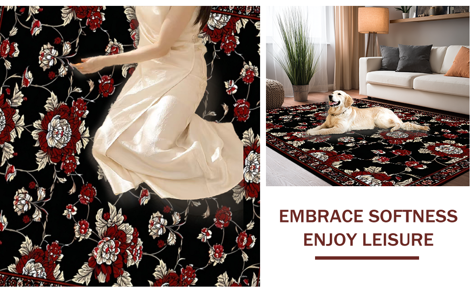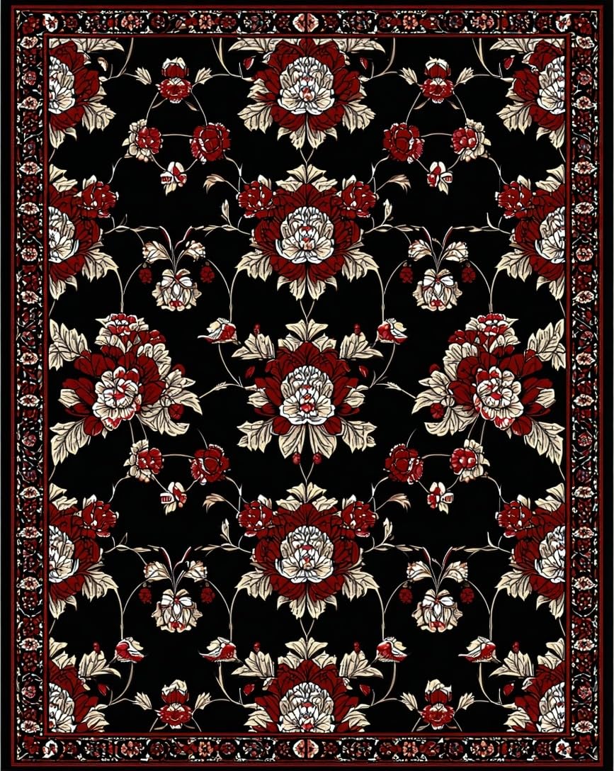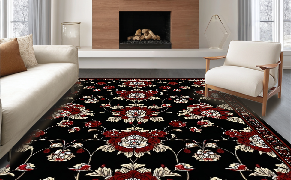 Ultra Soft Area Rug, Non Slip, Stain Resistant, Washable Area Rugs for Living Room, Bedroom, Dramatic Black and Burgundy Design(Black) Overview: