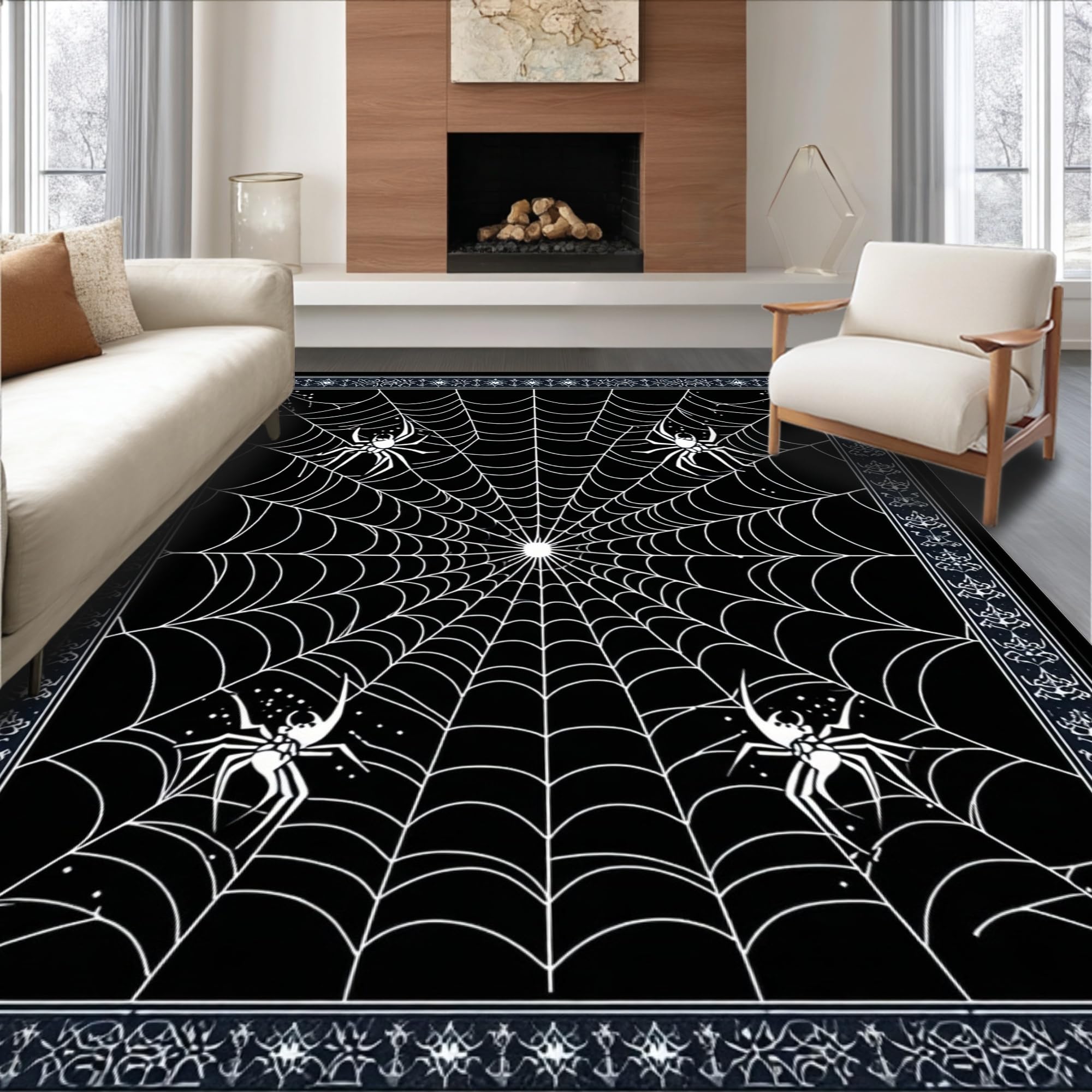 Ultra Soft Area Rug, Non Slip, Stain Resistant, Washable Area Rugs for Living Room, Bedroom, Dramatic Black and White Illusion(Black) Overview: