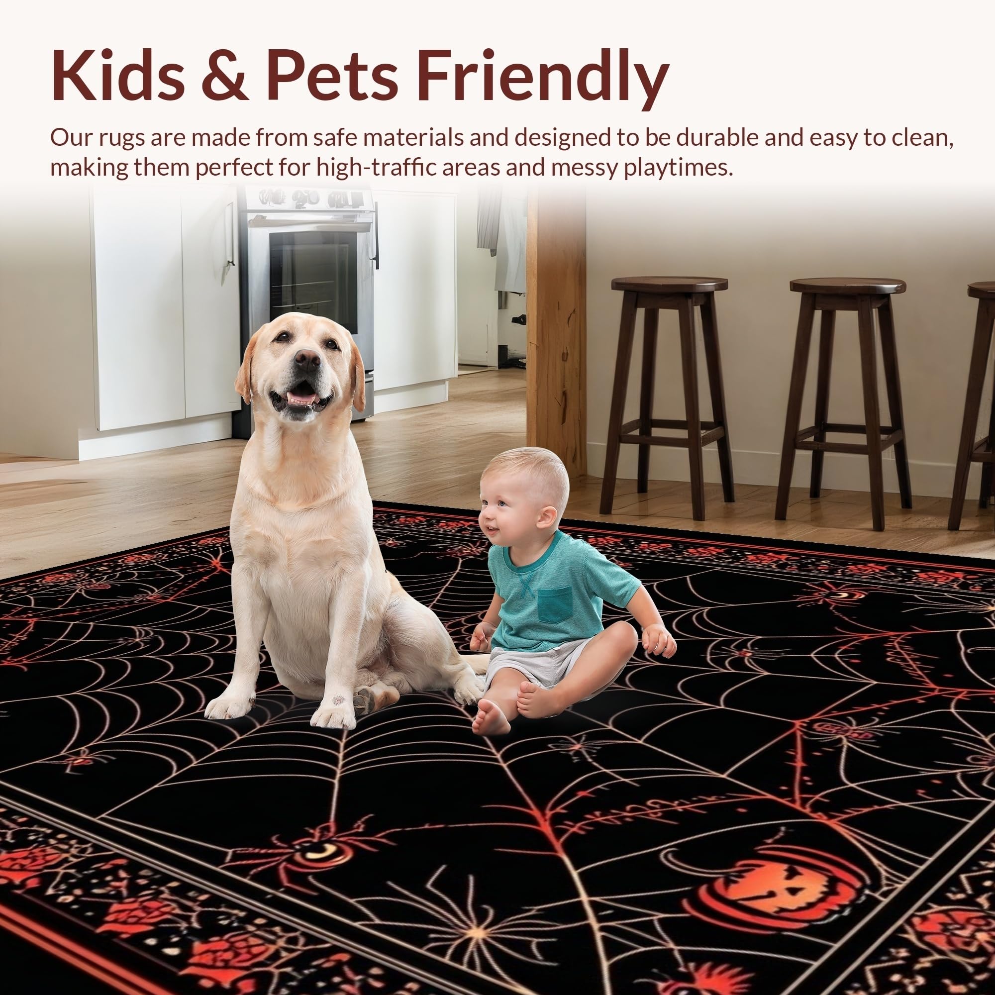 Ultra Soft Area Rug, Non Slip, Stain Resistant, Washable Area Rugs for Living Room, Bedroom, Dramatic Black and White Pattern(Black) Overview: