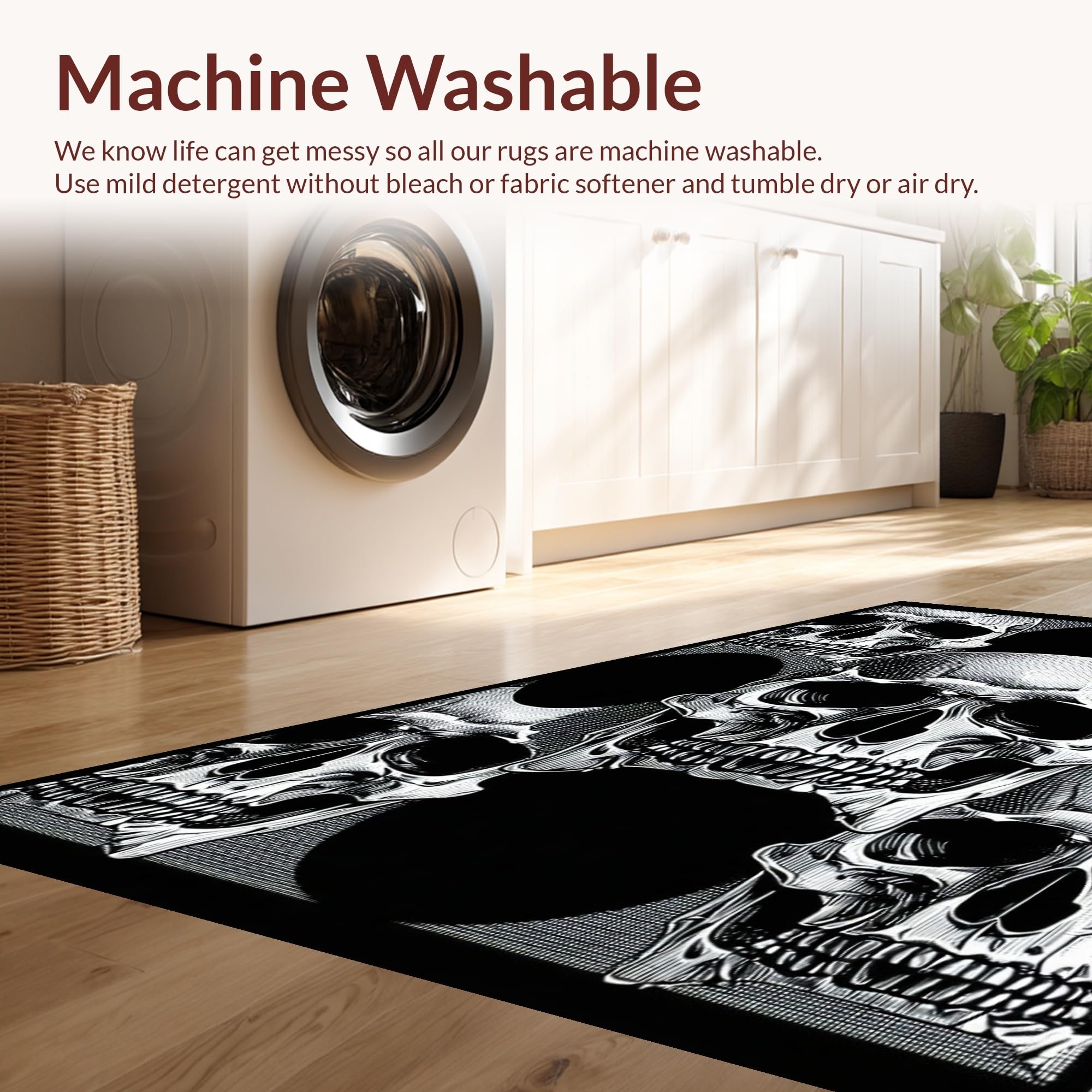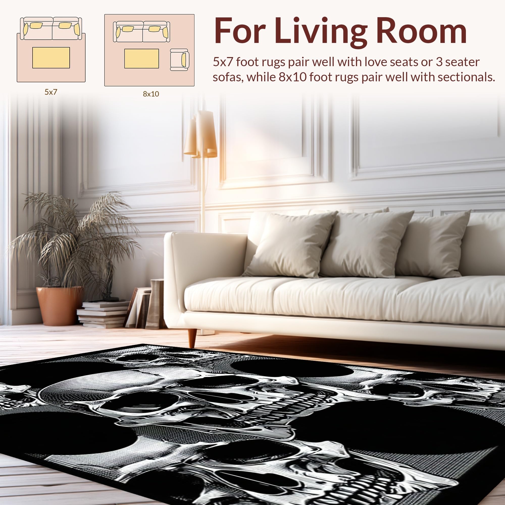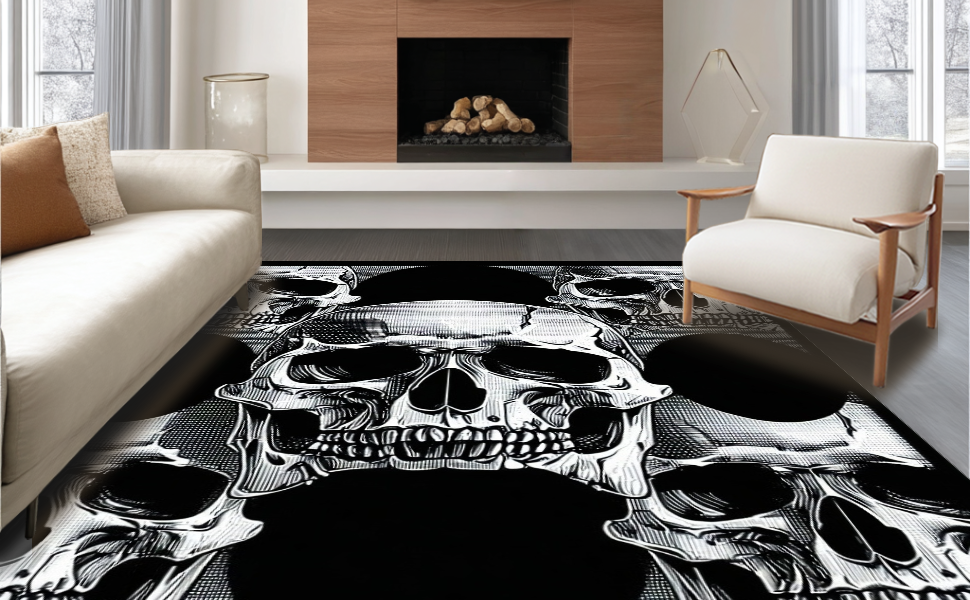 Ultra Soft Area Rug, Non Slip, Stain Resistant, Washable Area Rugs for Living Room, Bedroom, Dramatic Skull Art Arrangement(Black) Overview: