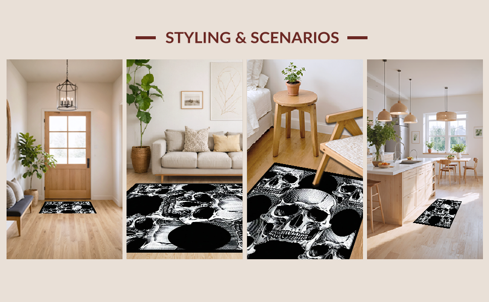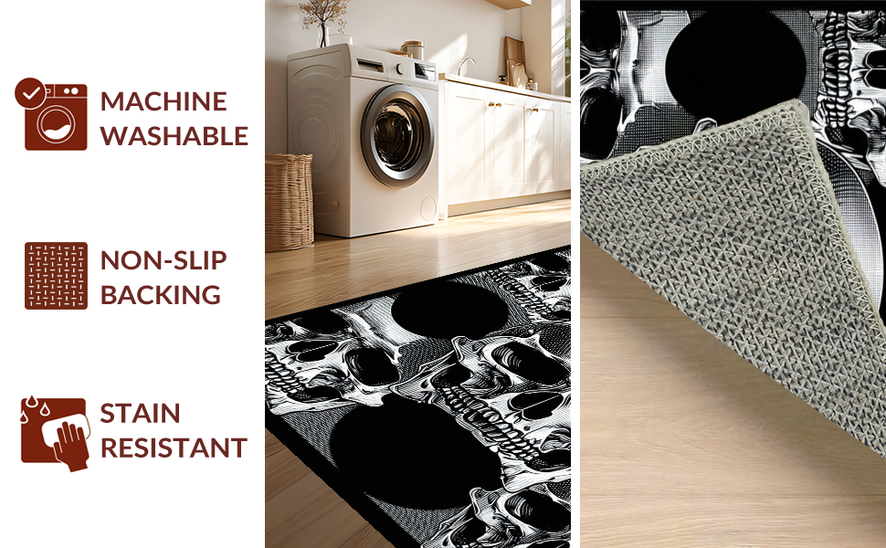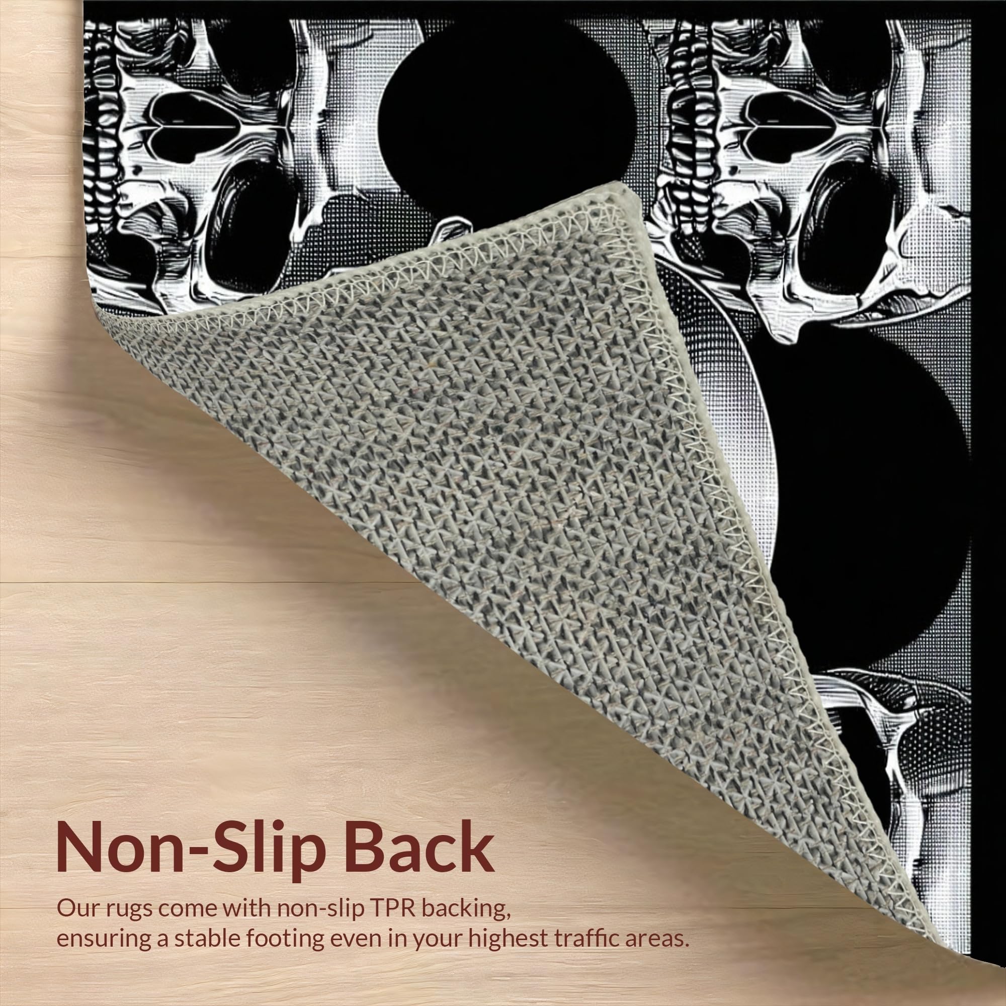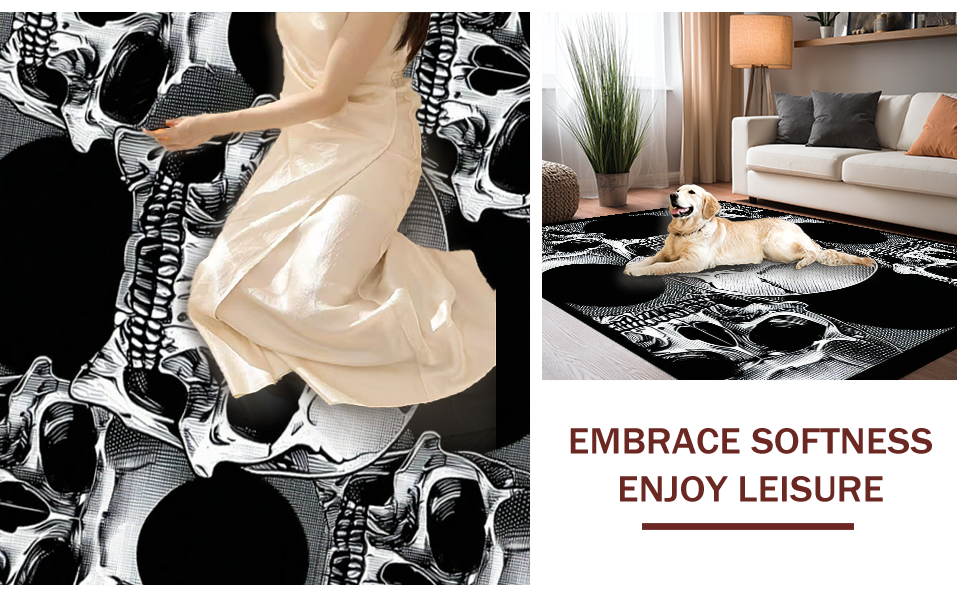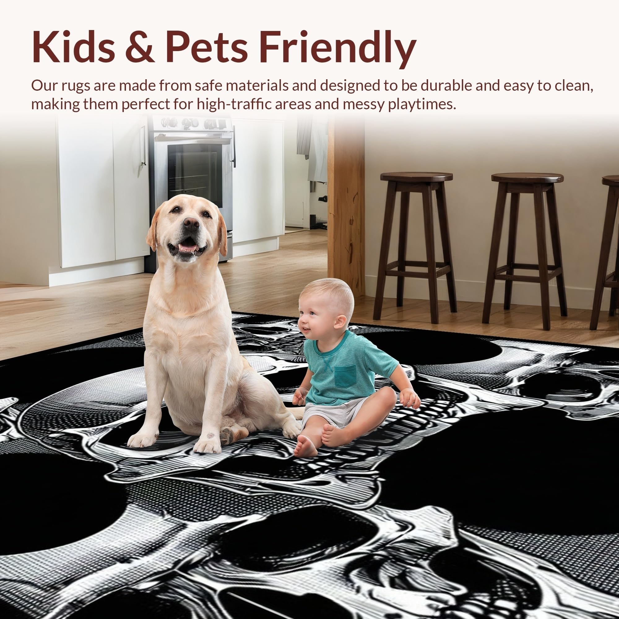 Ultra Soft Area Rug, Non Slip, Stain Resistant, Washable Area Rugs for Living Room, Bedroom, Dramatic Skull Art Arrangement(Black) Overview: