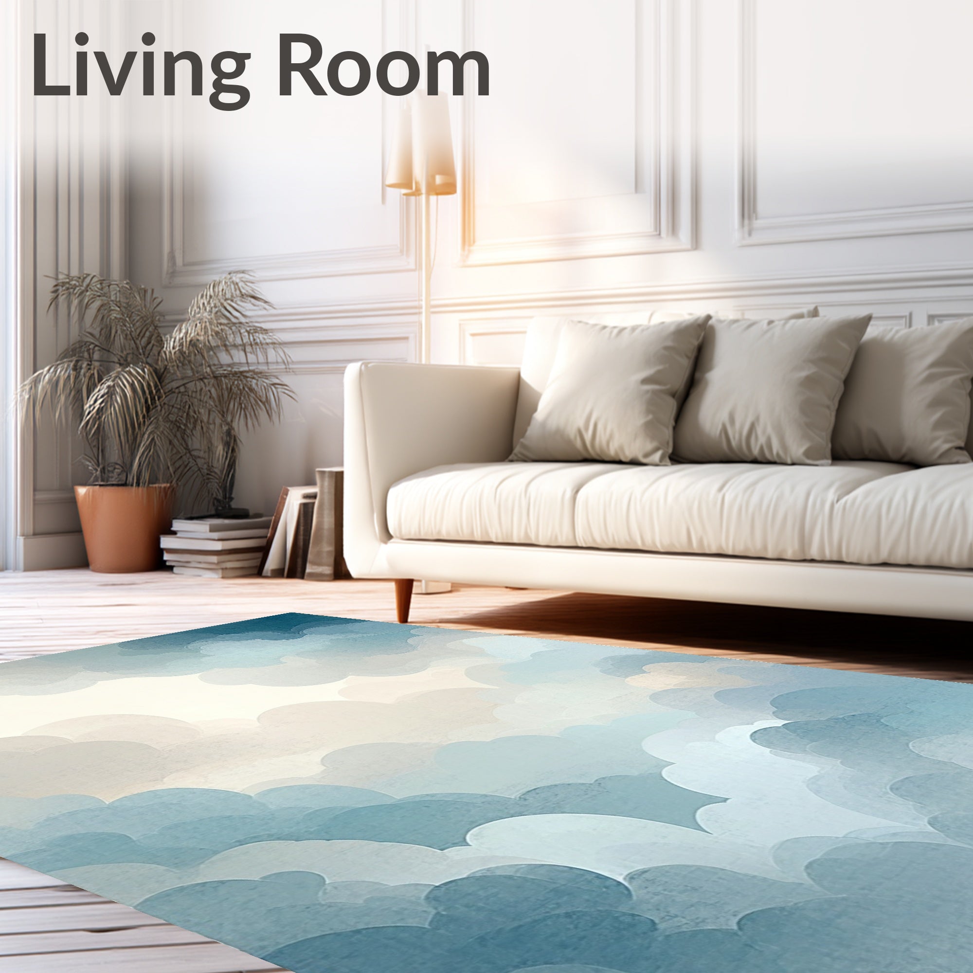 Ultra Soft Area Rug, Non Slip, Stain Resistant, Washable Area Rugs for Living Room, Bedroom, Dreamscape Collection Round Abstract Cloud in Serene Blue Beige(Beige) Overview: