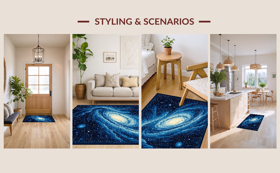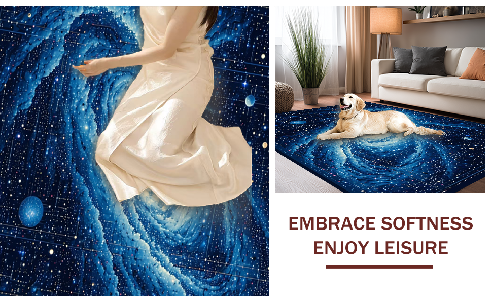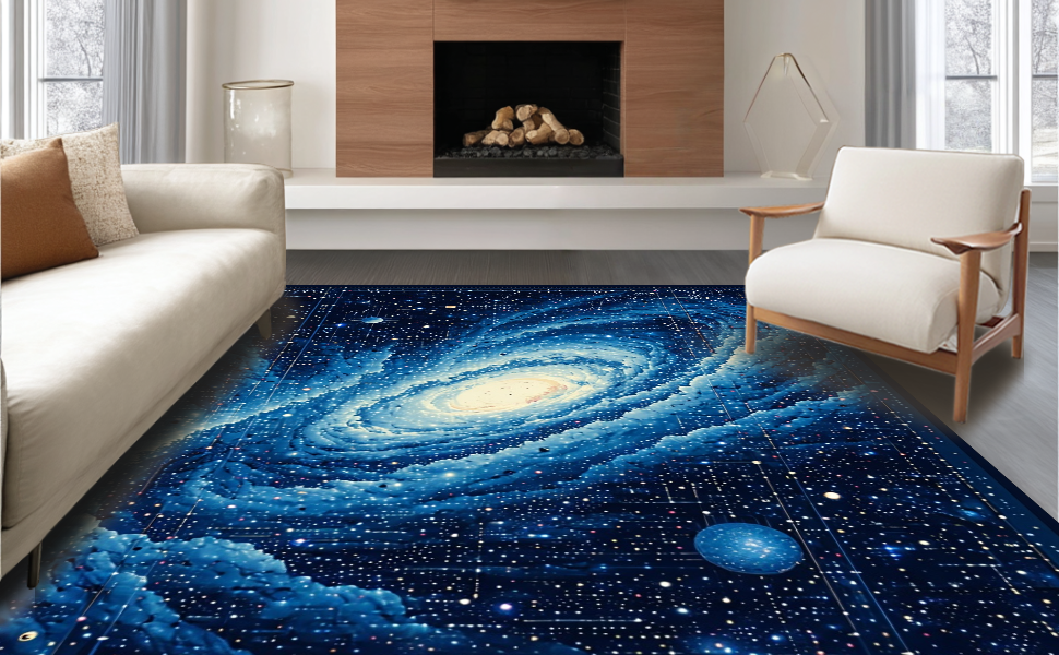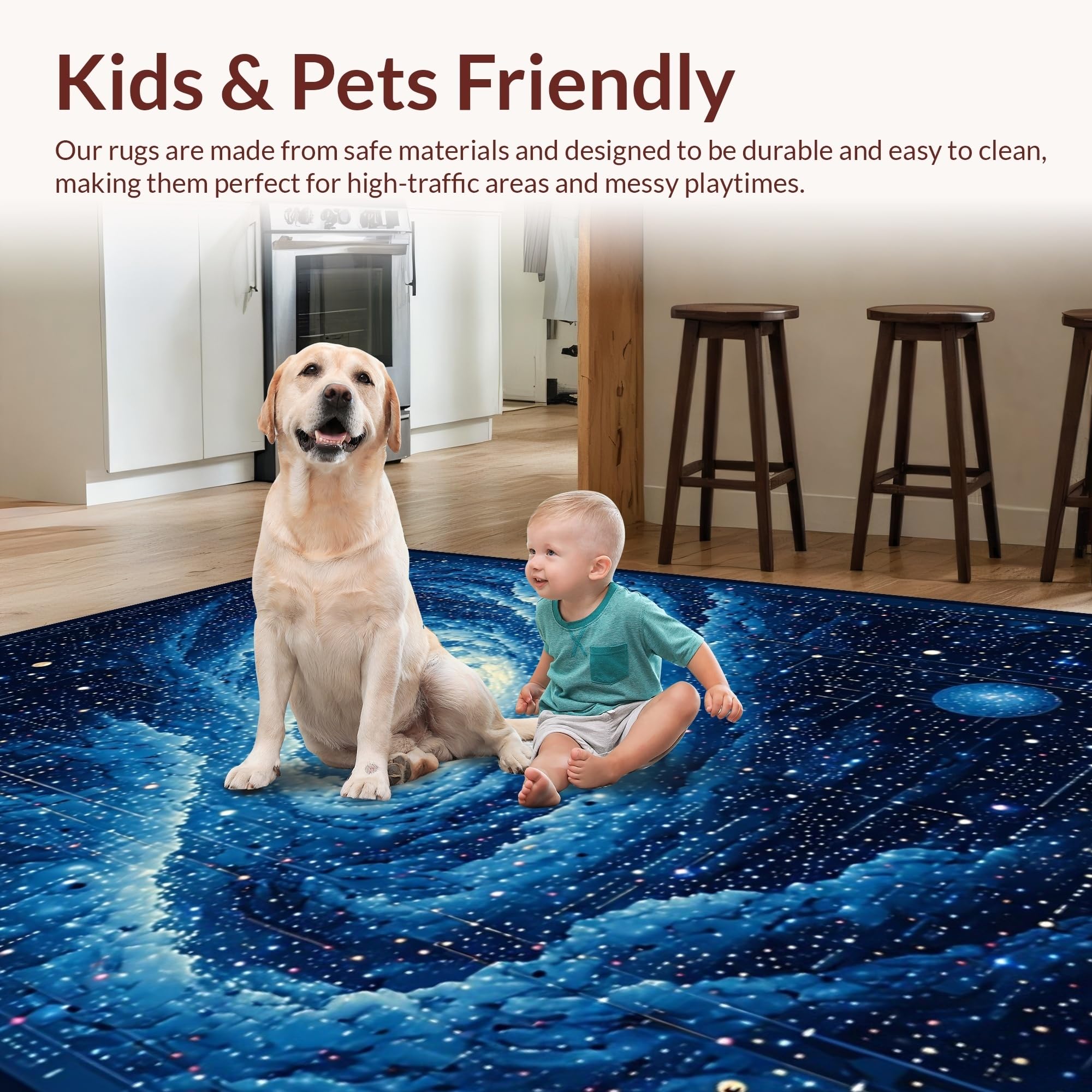 Ultra Soft Area Rug, Non Slip, Stain Resistant, Washable Area Rugs for Living Room, Bedroom, Dreamy Astronaut Adventure Design(Blue) Overview: