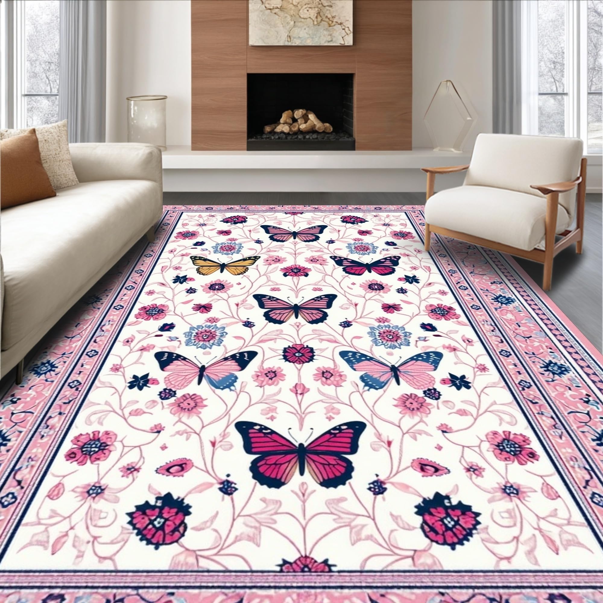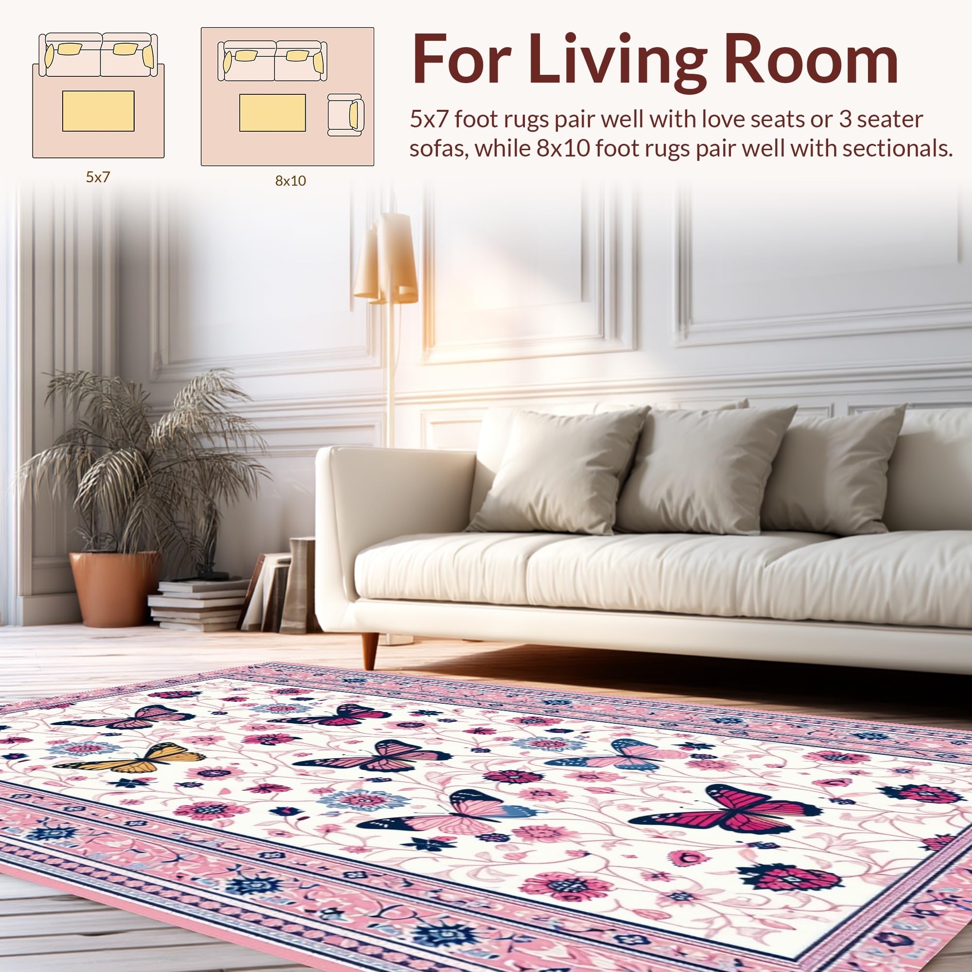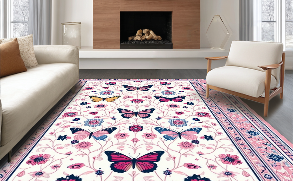 Ultra Soft Area Rug, Non Slip, Stain Resistant, Washable Area Rugs for Living Room, Bedroom, Dreamy Butterfly Artful Composition(White) Overview:
