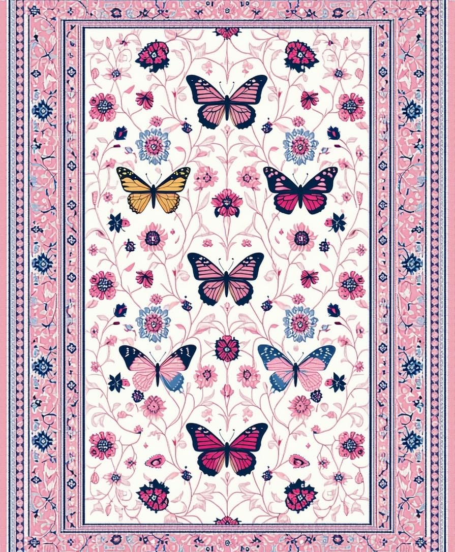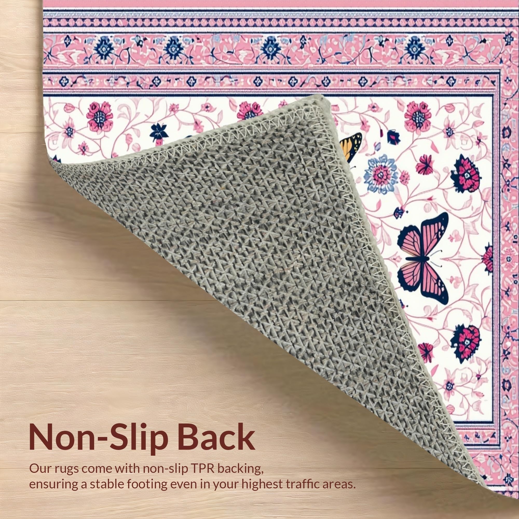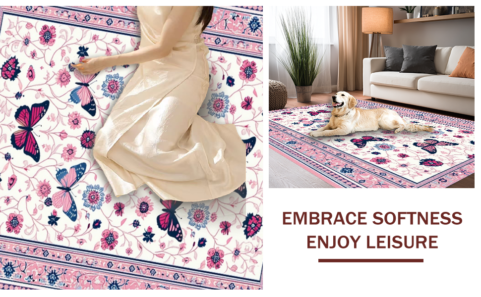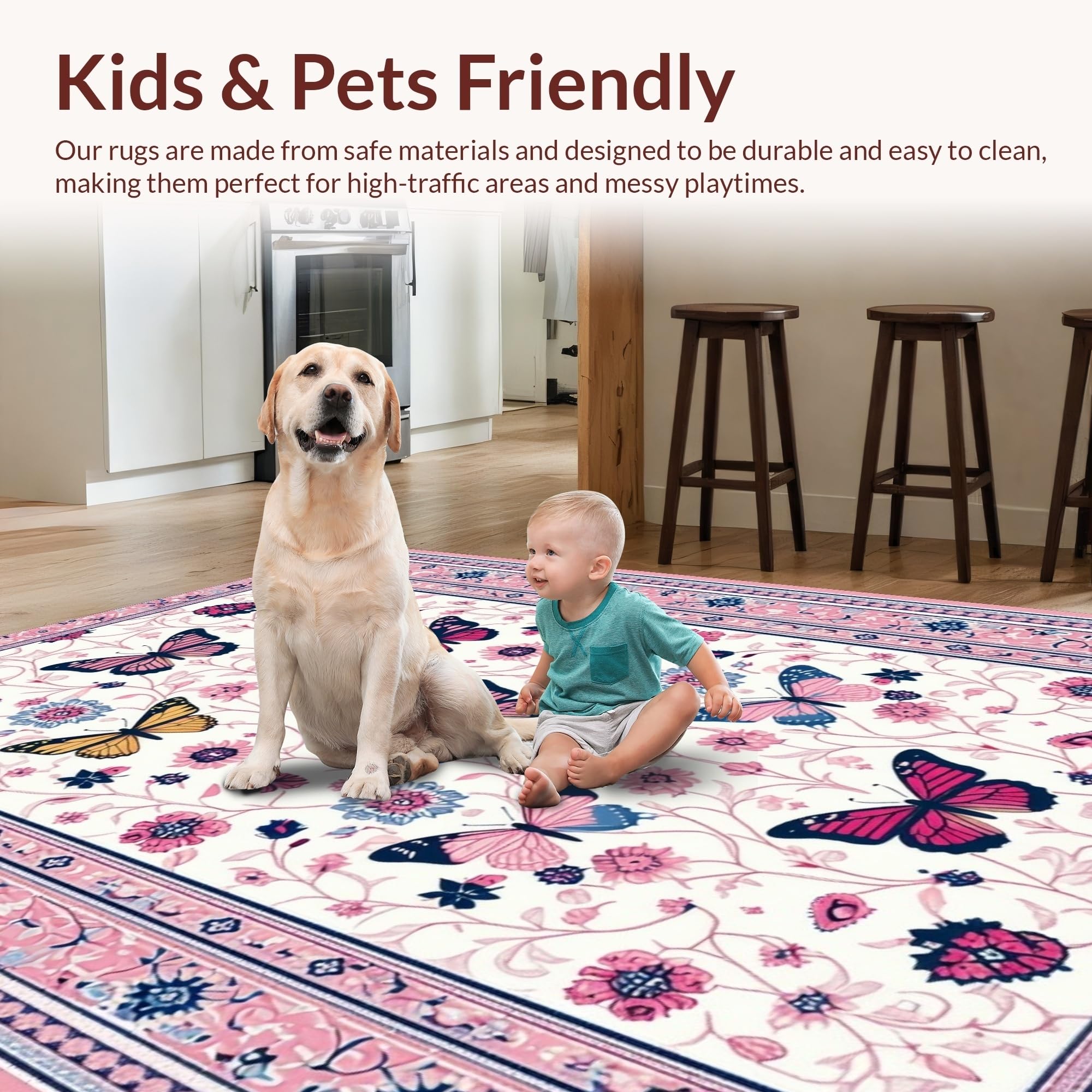 Ultra Soft Area Rug, Non Slip, Stain Resistant, Washable Area Rugs for Living Room, Bedroom, Dreamy Butterfly Artful Composition(White) Overview: