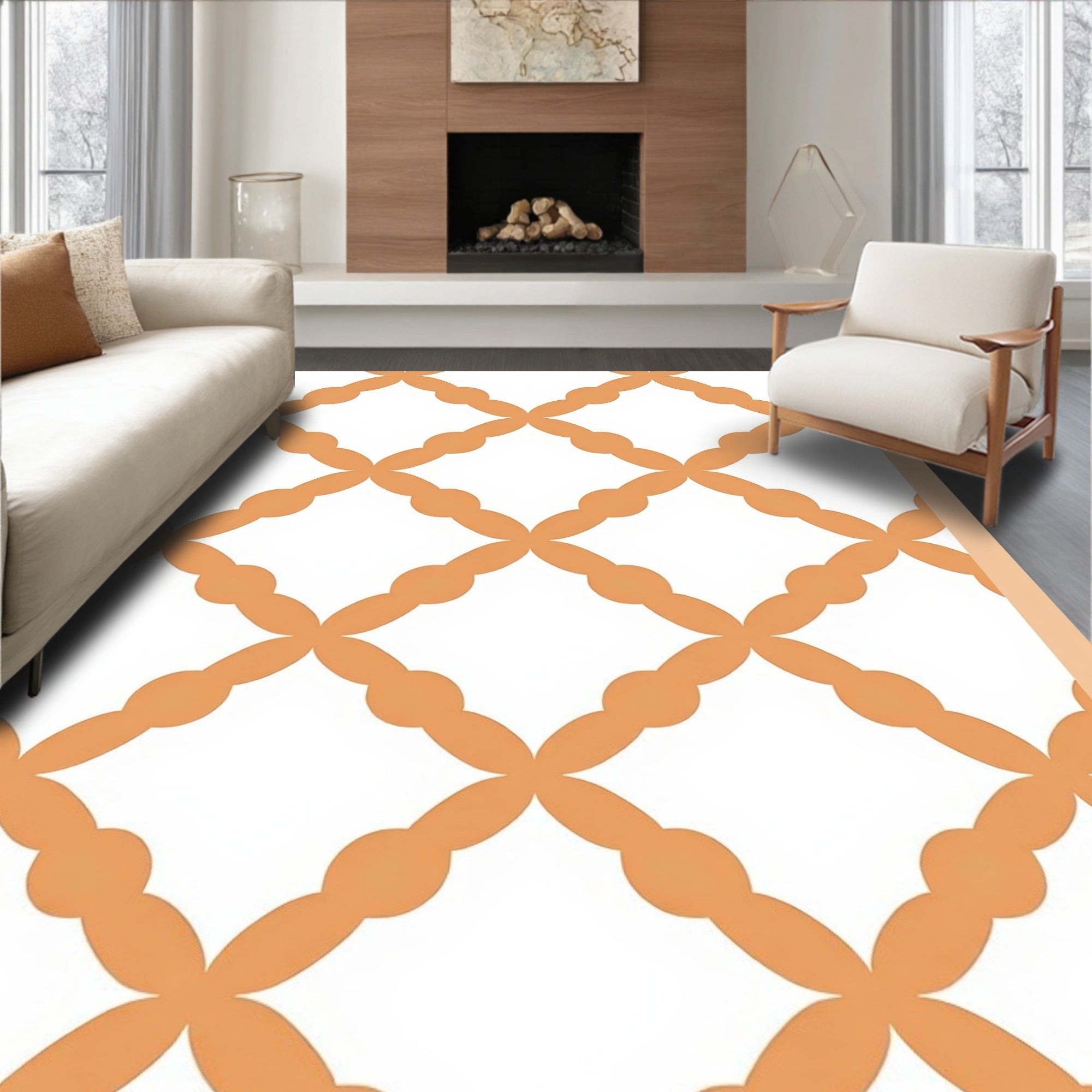 Flatwoven High Traffic Area Rug, Dreamy Cloud Lattice Non Slip Stylish Enhancement, Non Slip, Stain Resistant, Washable Area Rugs for Living Room, Bedroom (Orange) Overview: