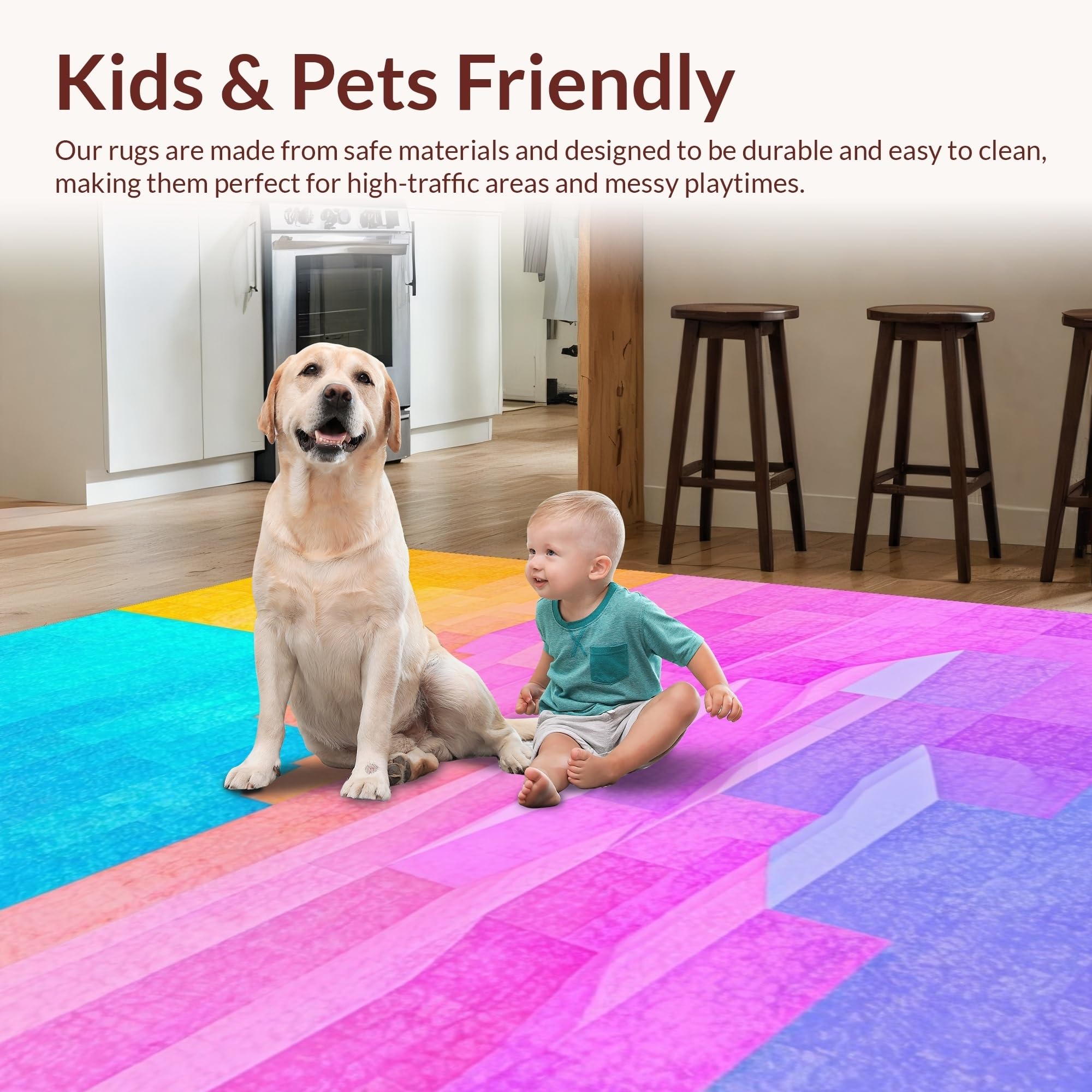 Ultra Soft Area Rug, Non Slip, Stain Resistant, Washable Area Rugs for Living Room, Bedroom, Dreamy Colorful Curved Lines(Blue) Overview: