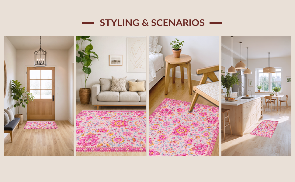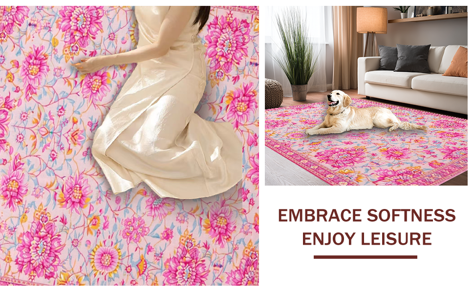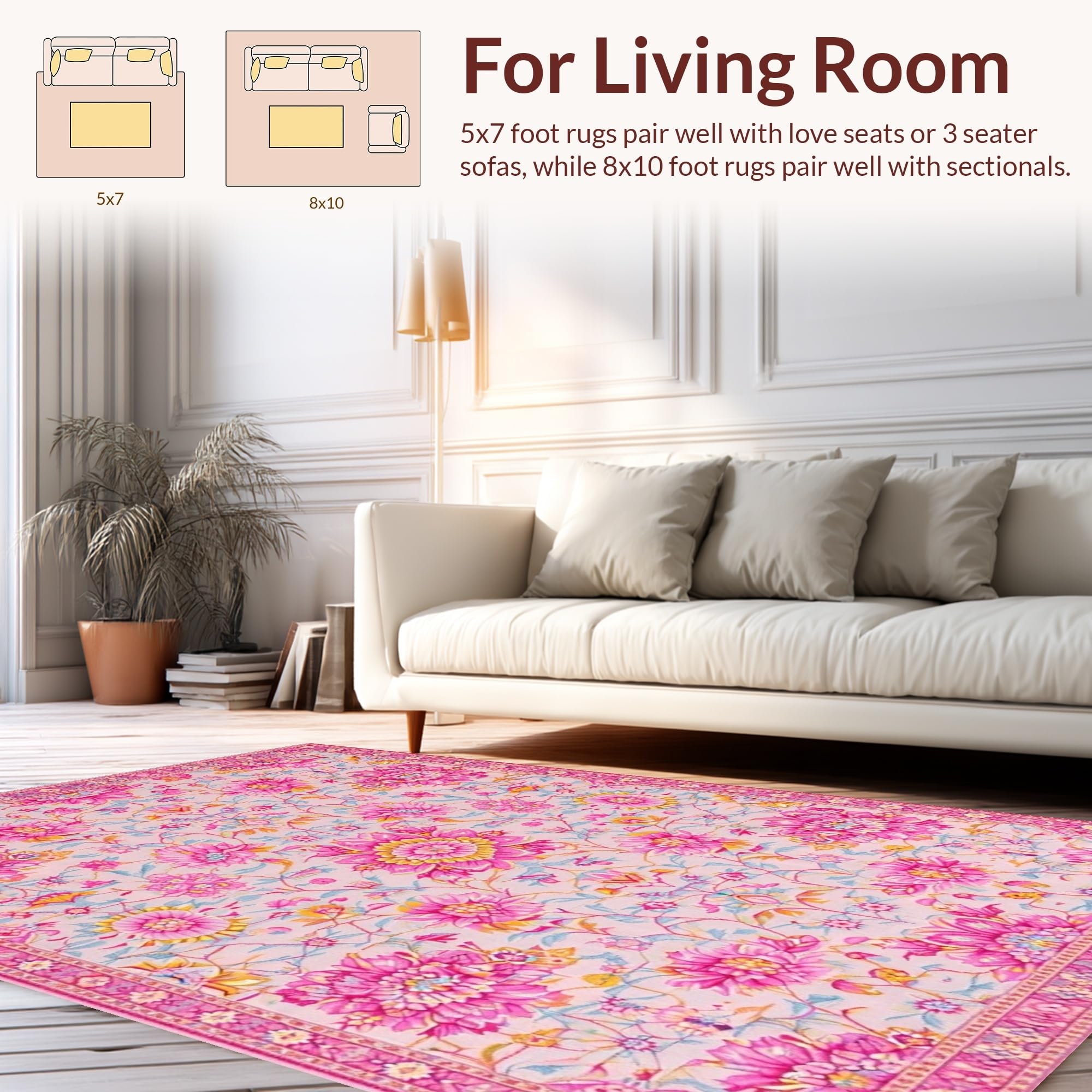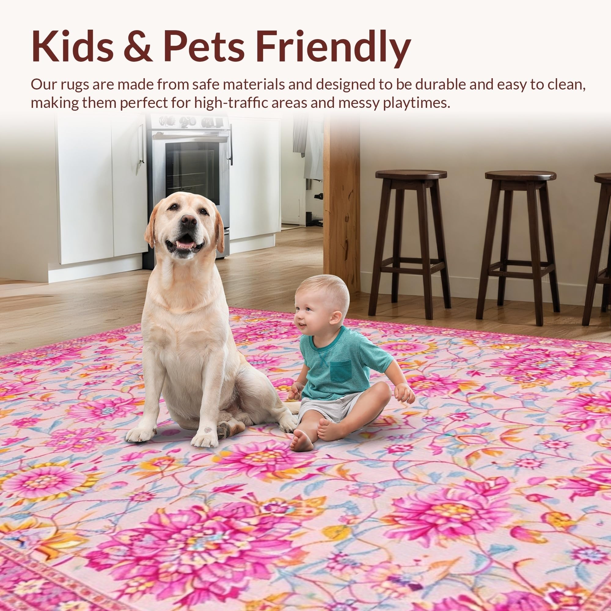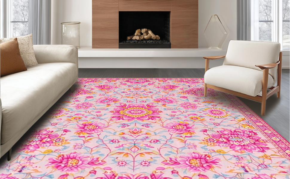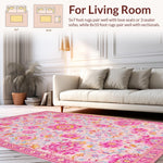Ultra Soft Area Rug, Non Slip, Stain Resistant, Washable Area Rugs for Living Room, Bedroom, Dreamy Elegant Ogee Design(Pink) Overview: