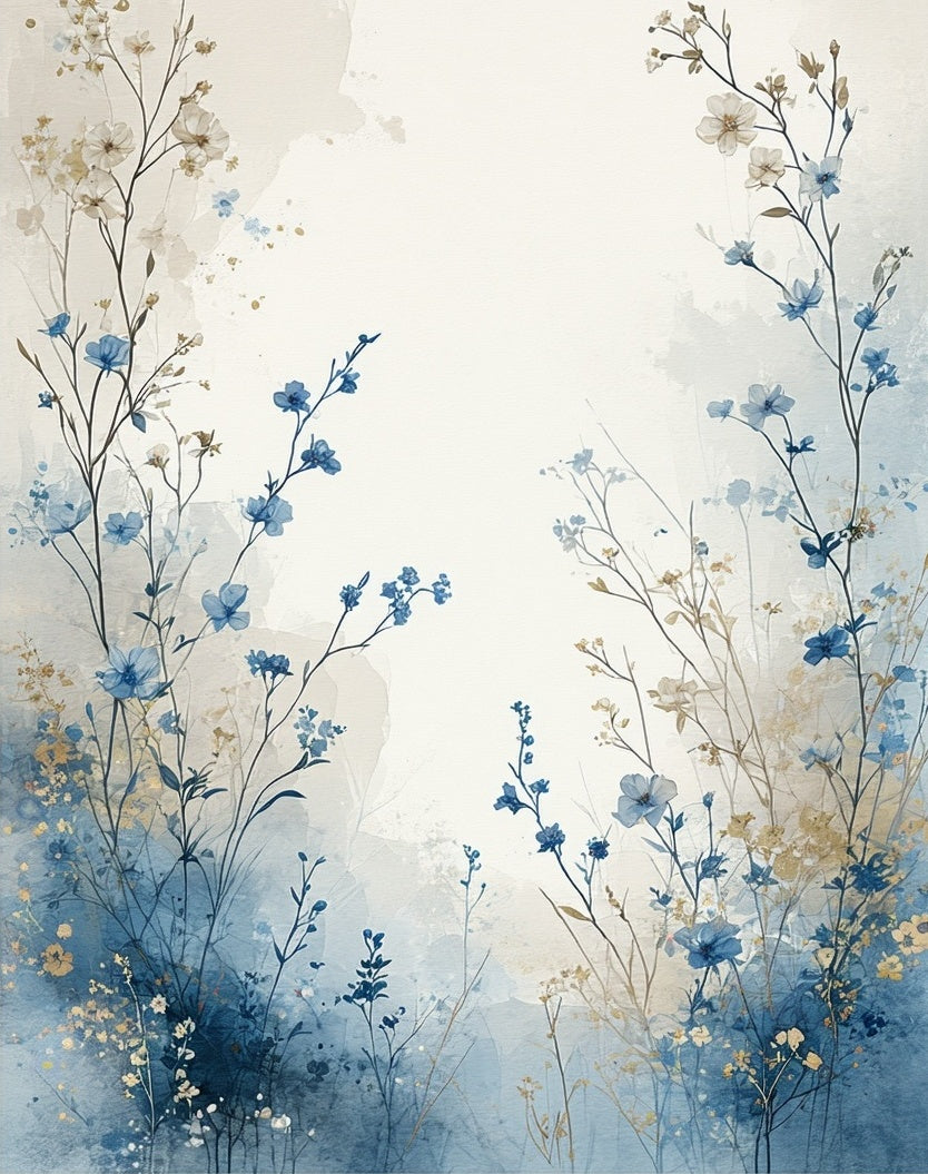 Dreamy Garden Bath with Artistic Watercolor Flower Impressions(Blue)