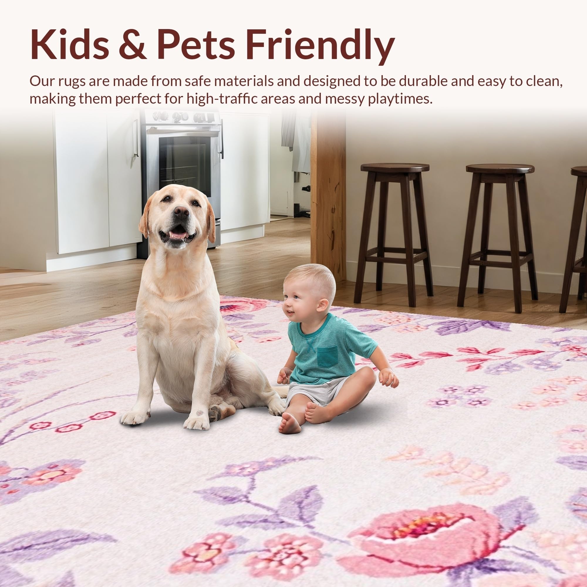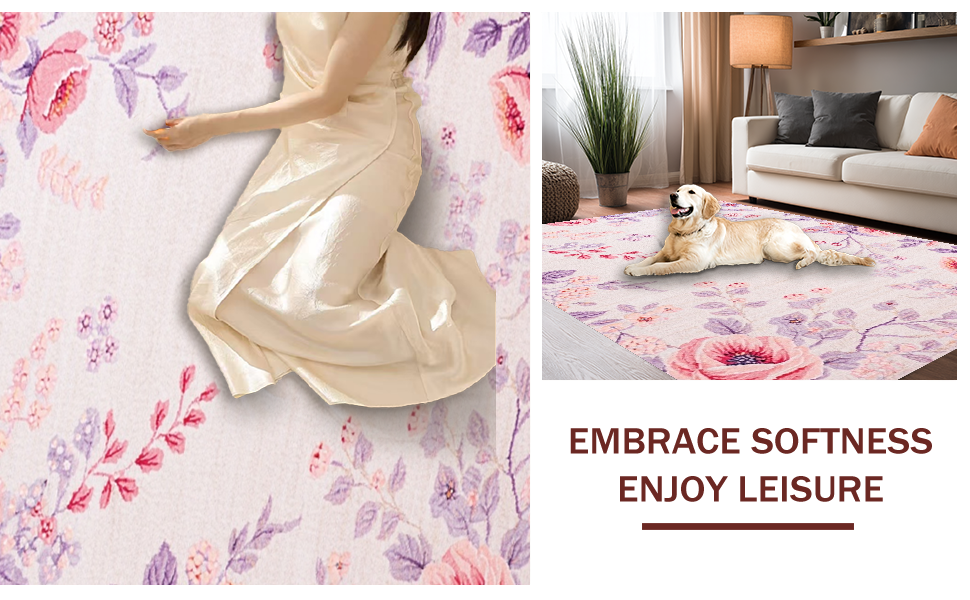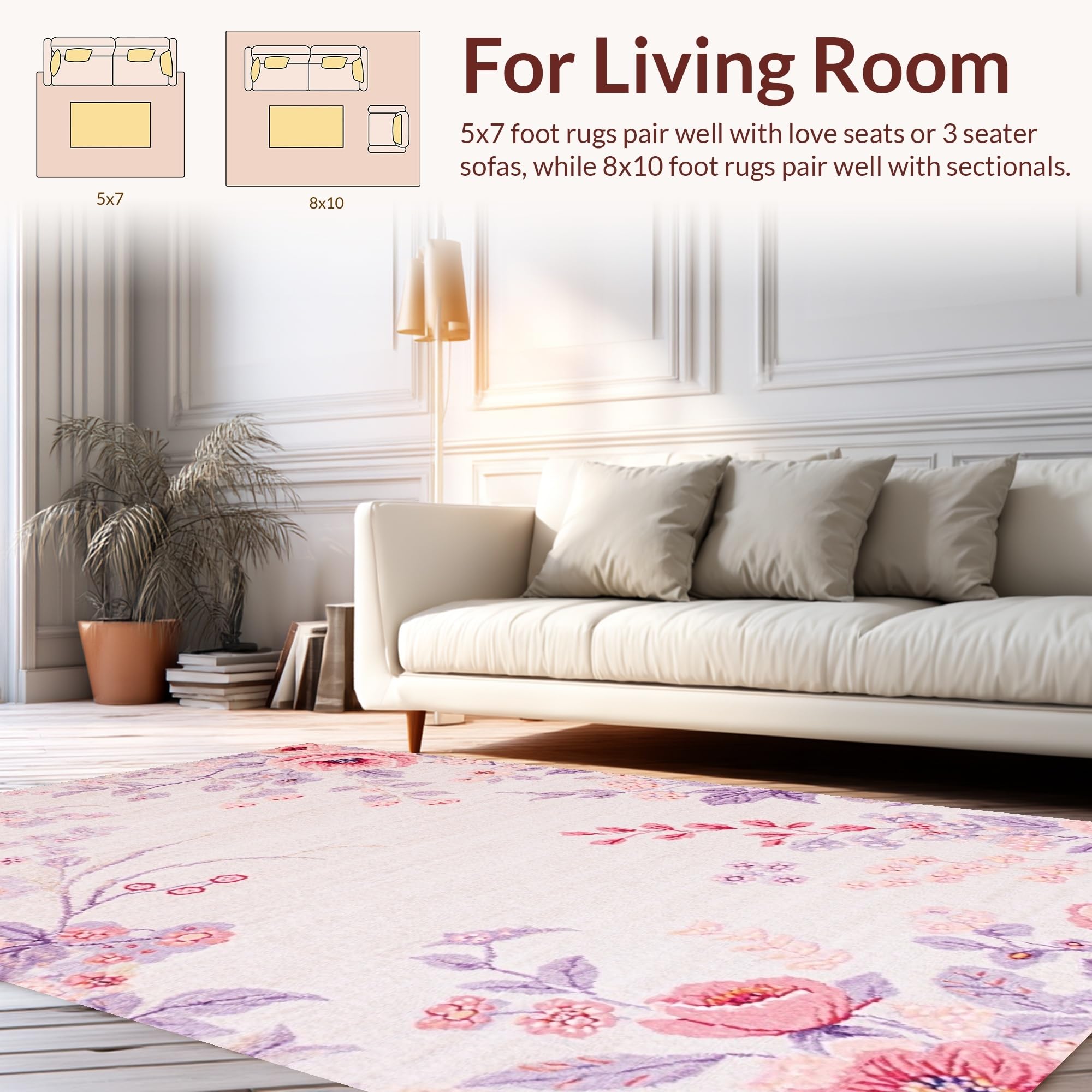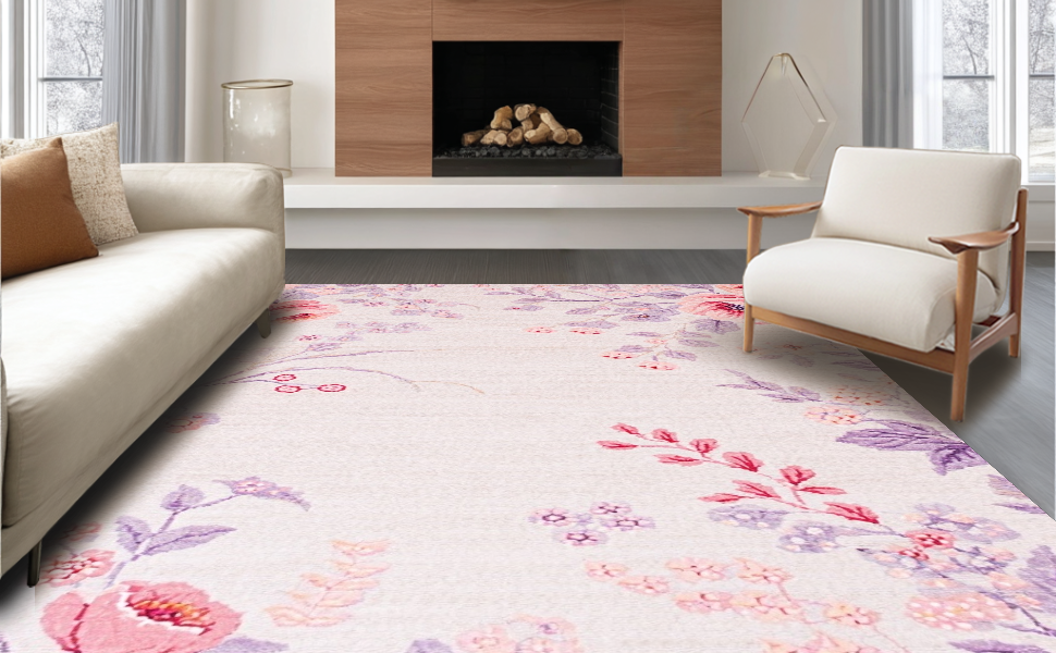 Ultra Soft Area Rug, Non Slip, Stain Resistant, Washable Area Rugs for Living Room, Bedroom, Dreamy Gentle Blush Design(Pink) Overview: