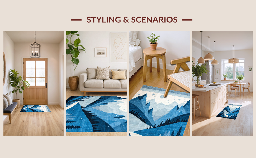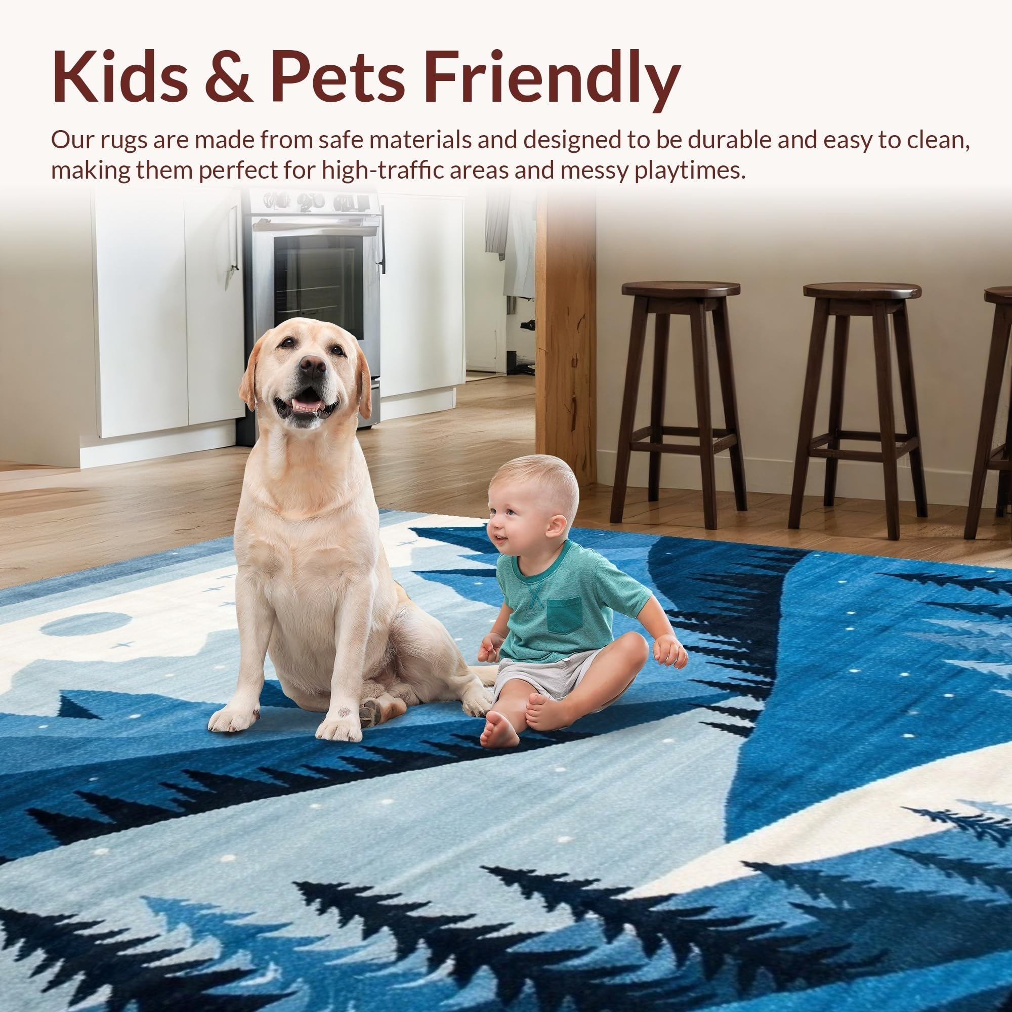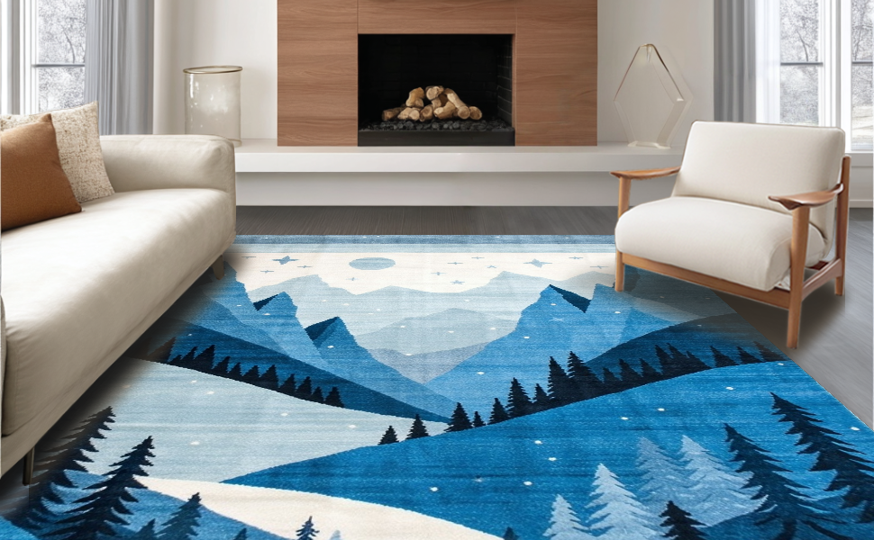 Ultra Soft Area Rug, Non Slip, Stain Resistant, Washable Area Rugs for Living Room, Bedroom, Dreamy Light Blue Rustic Appeal(Blue) Overview: