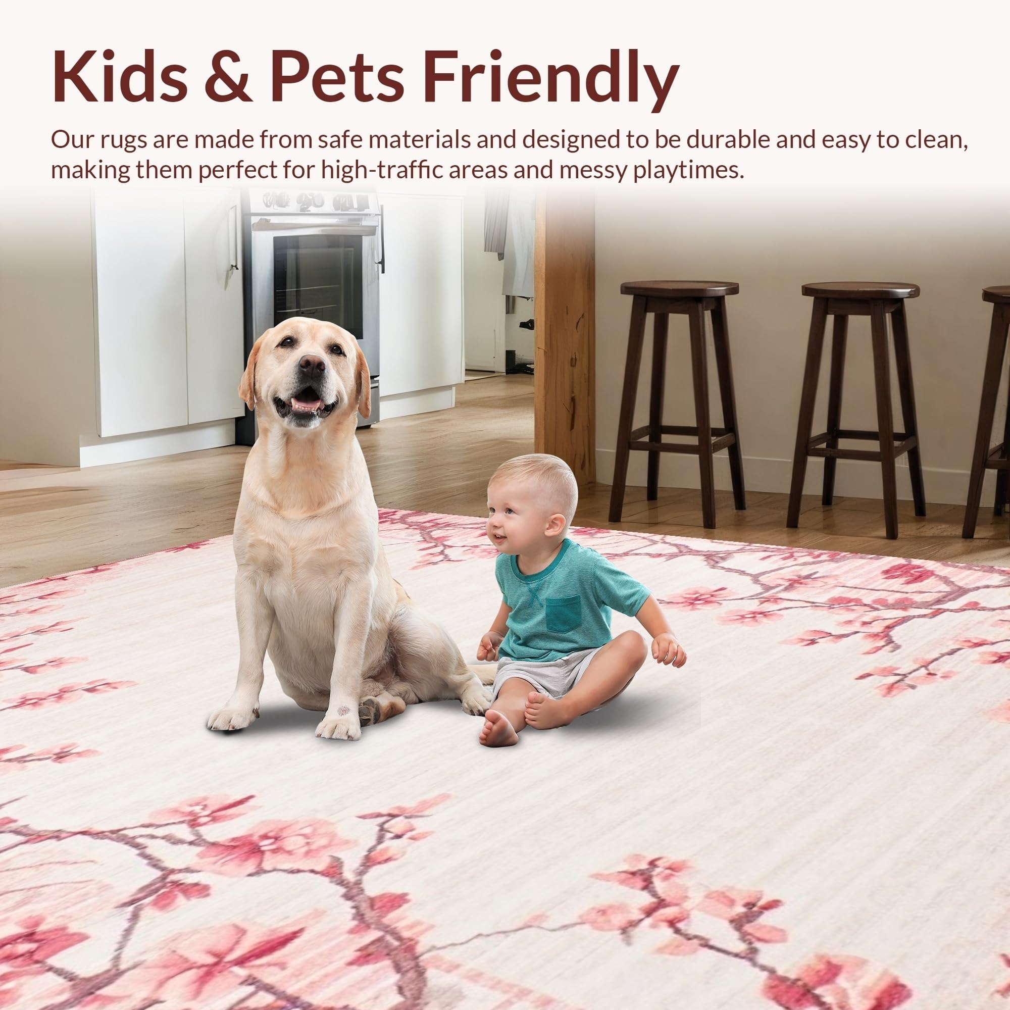 Ultra Soft Area Rug, Non Slip, Stain Resistant, Washable Area Rugs for Living Room, Bedroom, Dreamy Pale Pink Contemporary Flair(Pink) Overview: