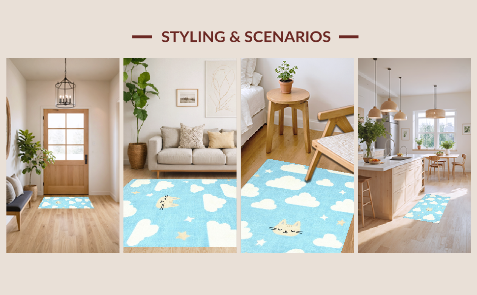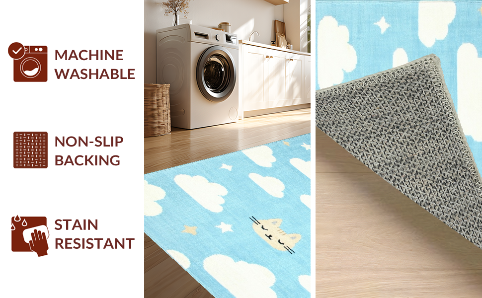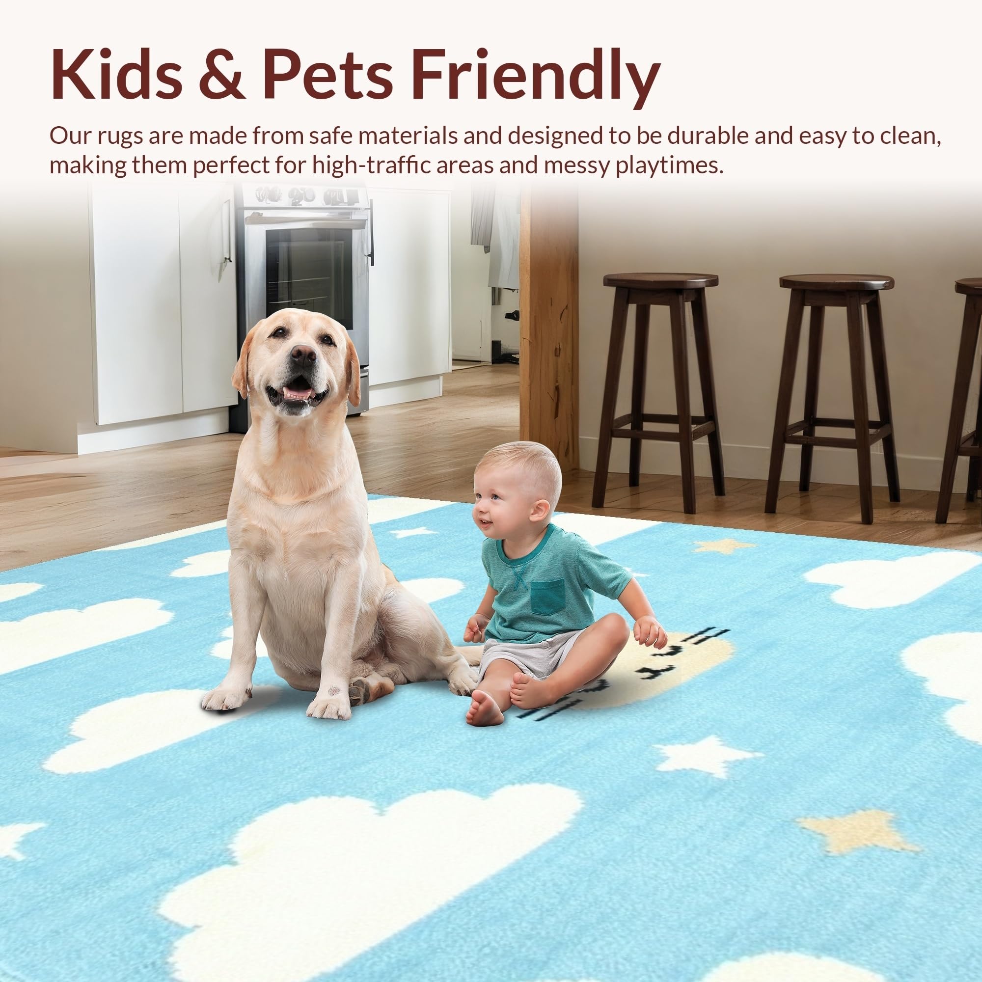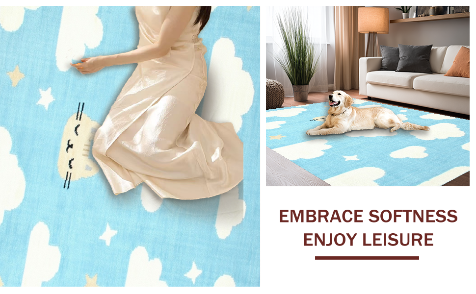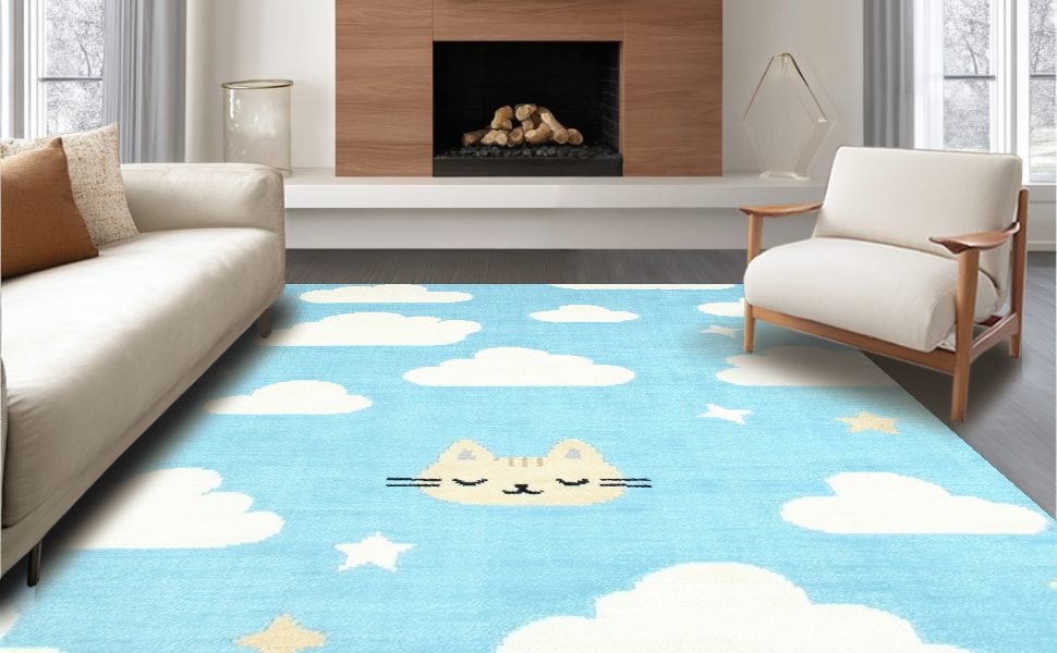 Ultra Soft Area Rug, Non Slip, Stain Resistant, Washable Area Rugs for Living Room, Bedroom, Dreamy Pastel Cloudscape Pattern(Blue) Overview: