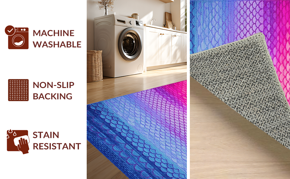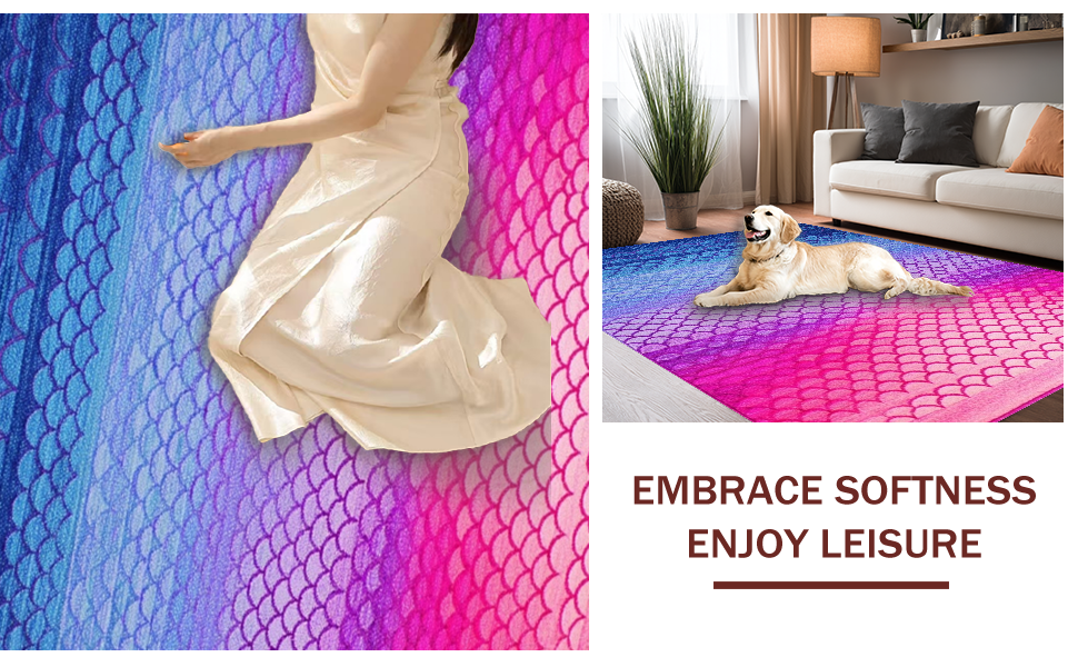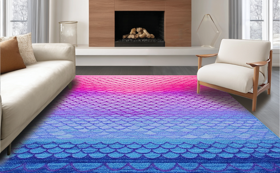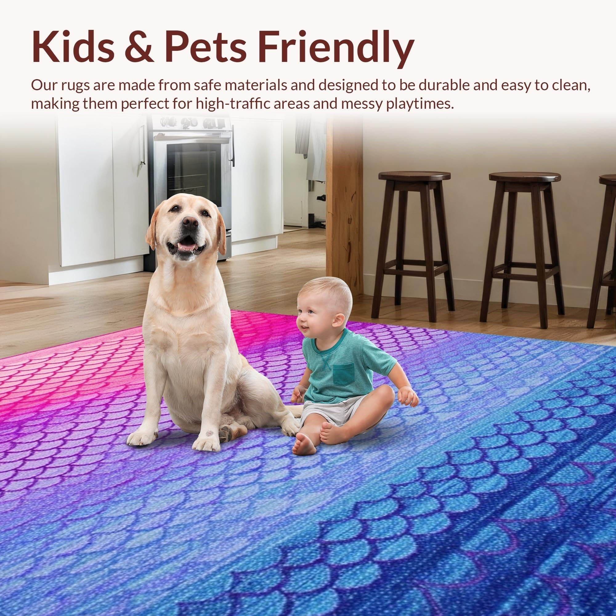 Ultra Soft Area Rug, Non Slip, Stain Resistant, Washable Area Rugs for Living Room, Bedroom, Dreamy Pastel Mermaid Theme(Pink) Overview: