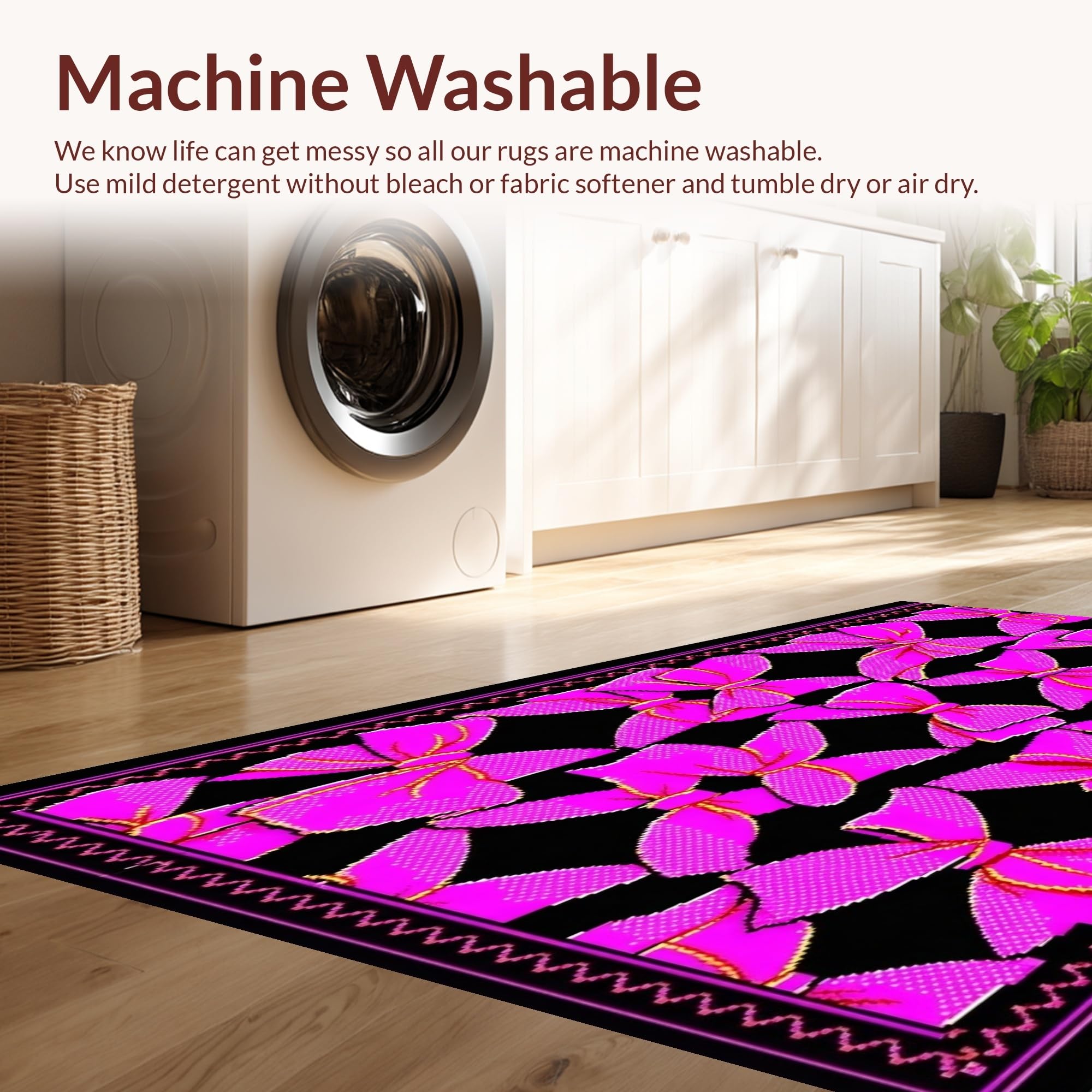 - Machine Washable: Our rugs can be easily thrown in the wash machine.