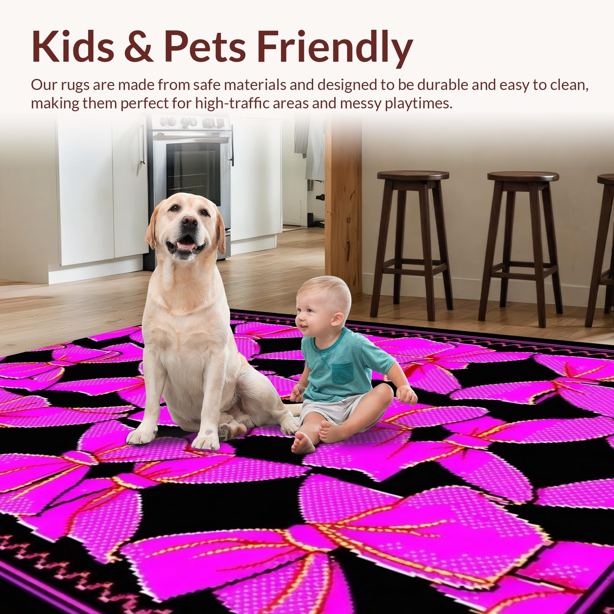 Ultra Soft Area Rug, Non Slip, Stain Resistant, Washable Area Rugs for Living Room, Bedroom, Dreamy Princess Palette Touch(Pink) Overview: