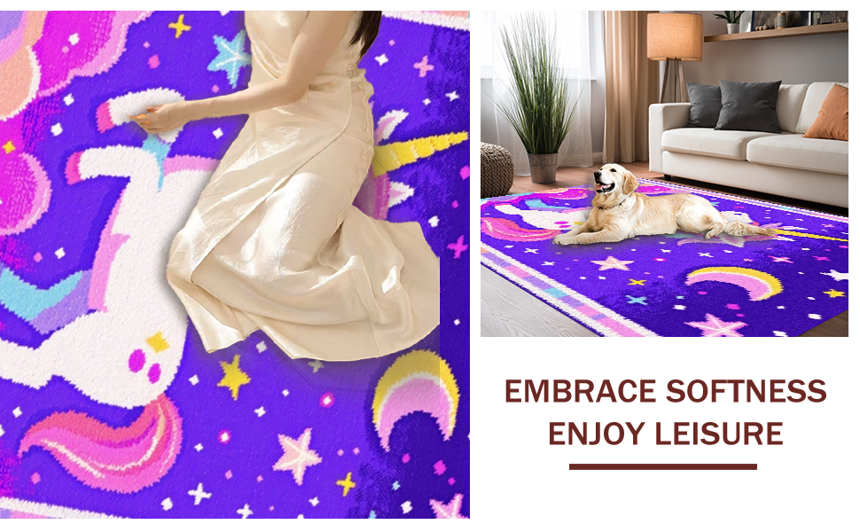Ultra Soft Area Rug, Non Slip, Stain Resistant, Washable Area Rugs for Living Room, Bedroom, Dreamy Rainbow Swirl Artistry(Purple) Overview:
