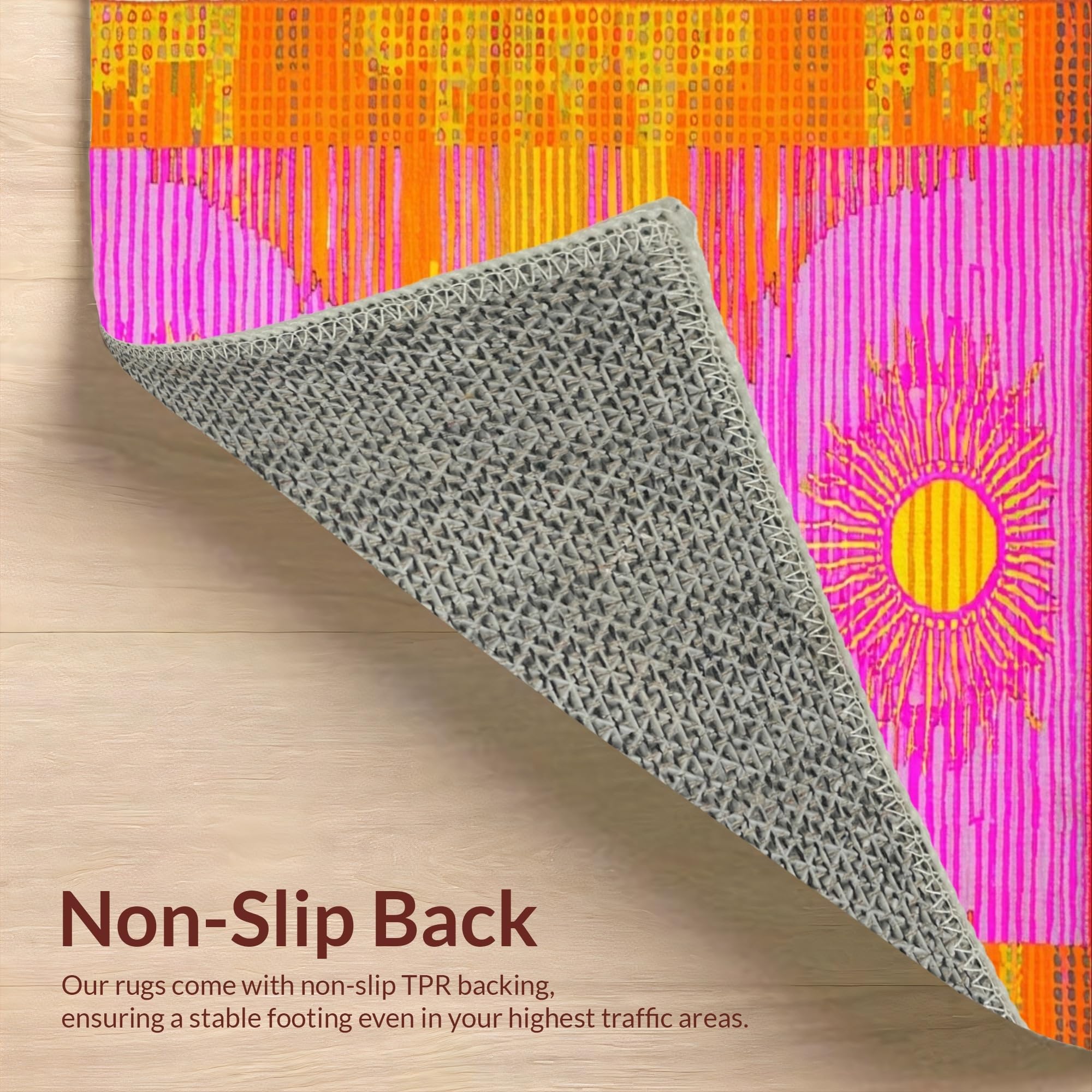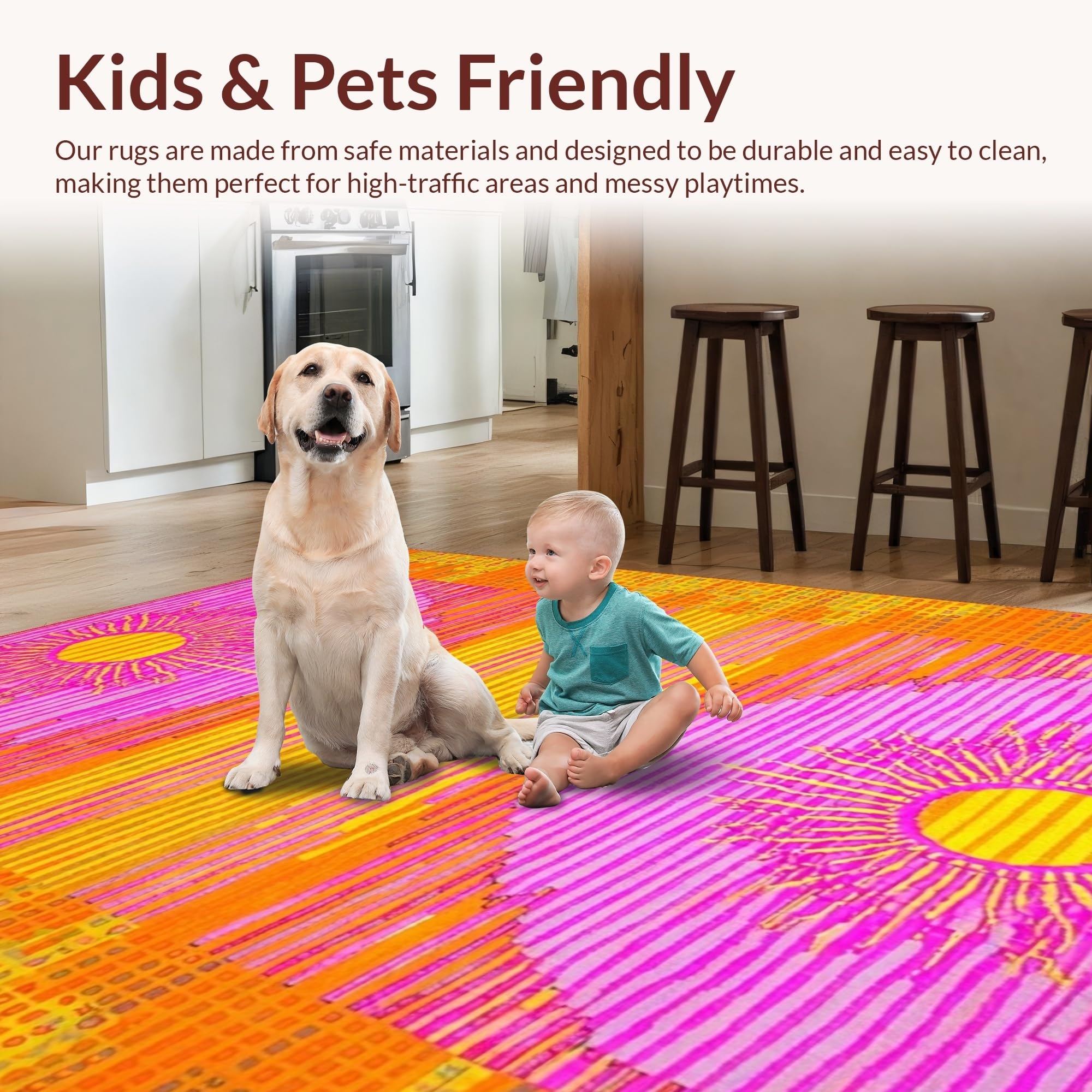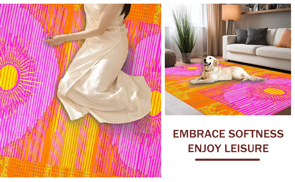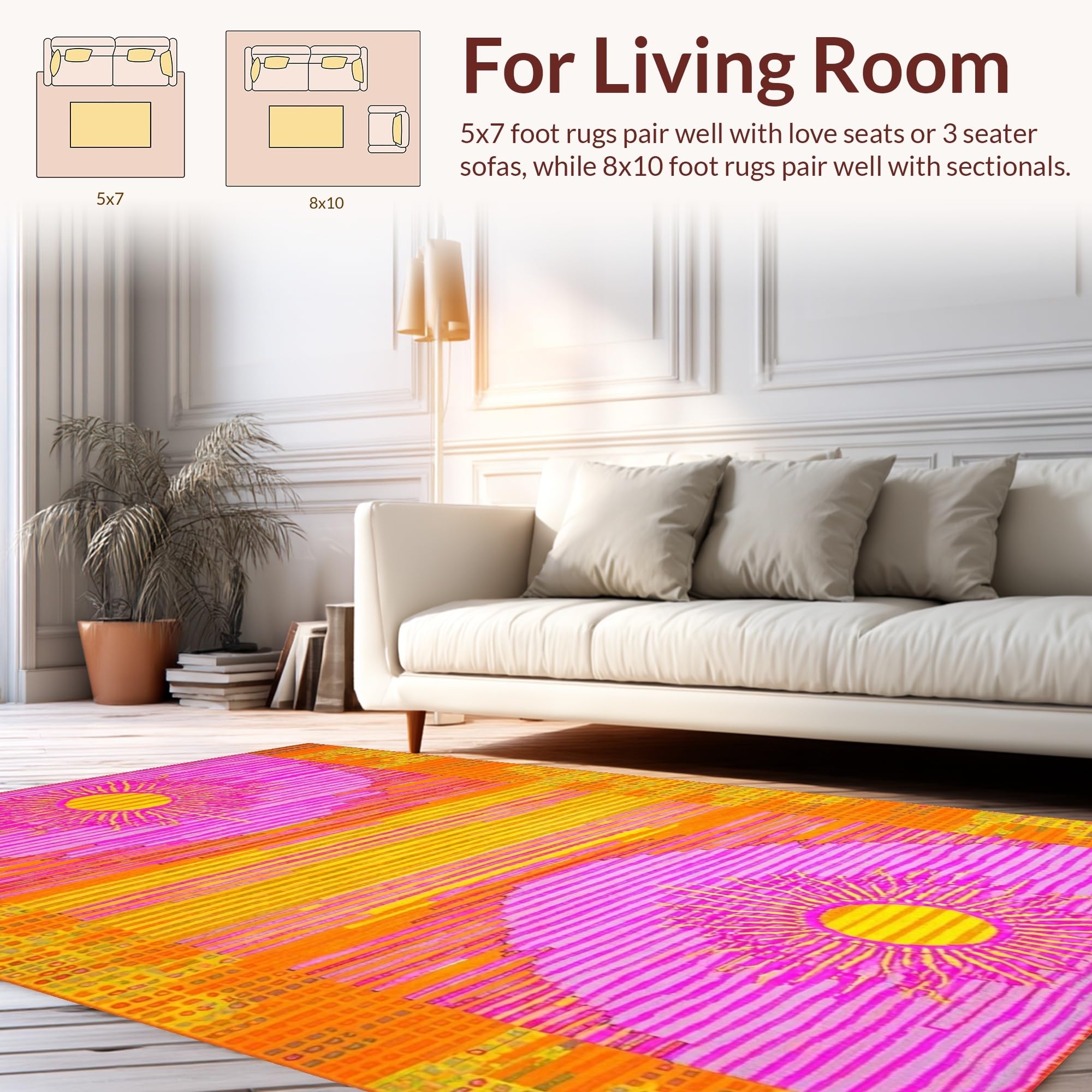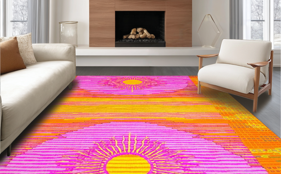 Ultra Soft Area Rug, Non Slip, Stain Resistant, Washable Area Rugs for Living Room, Bedroom, Dreamy Soft-Hued Sun Illustration(Pink) Overview: