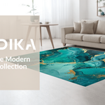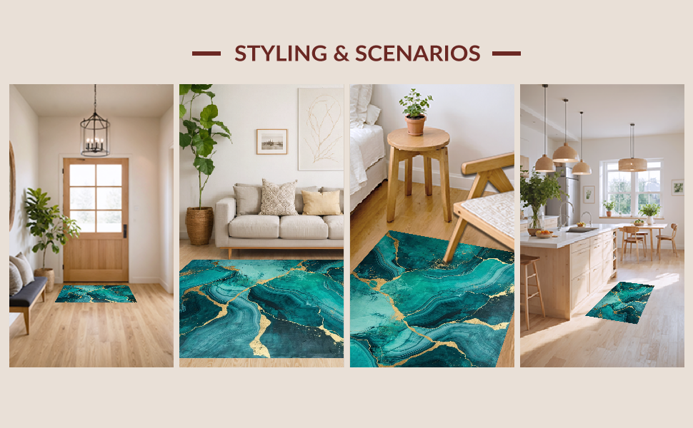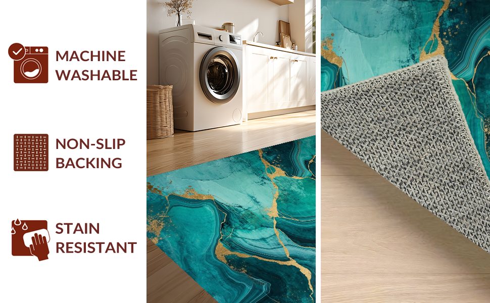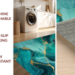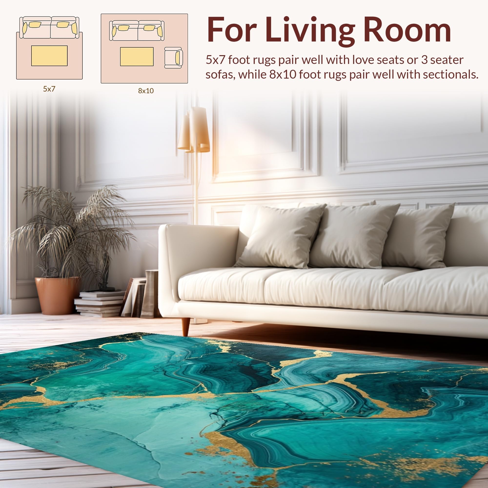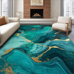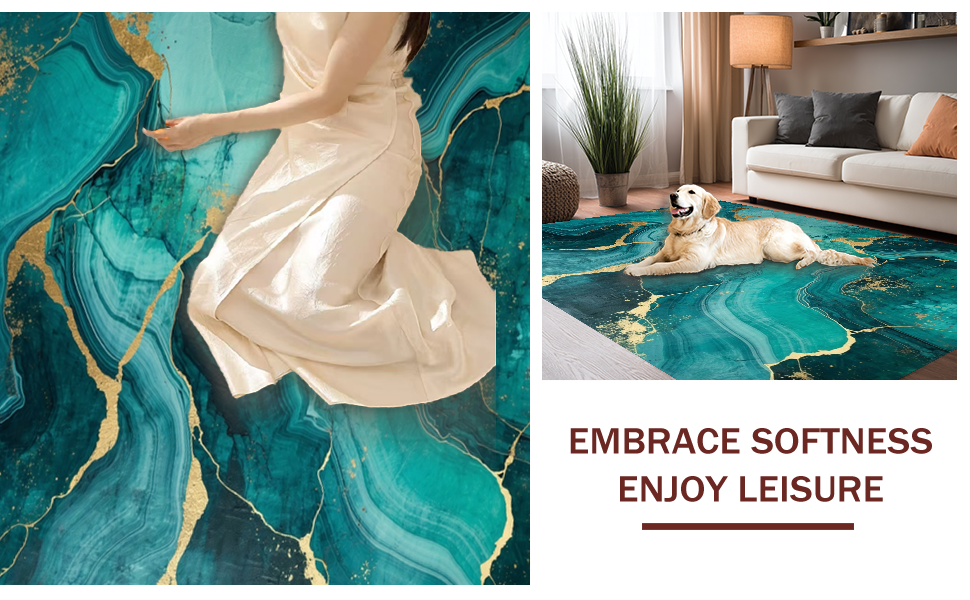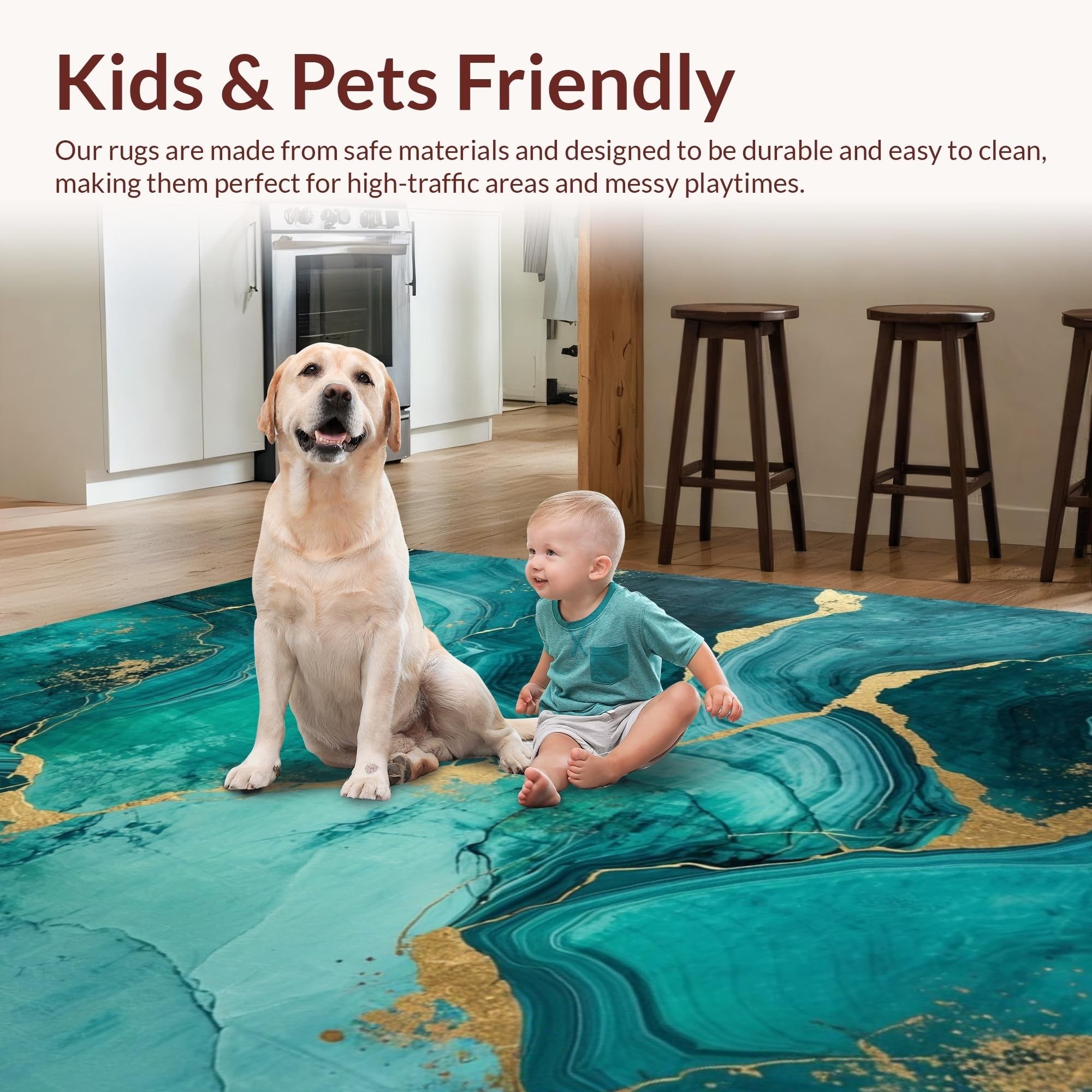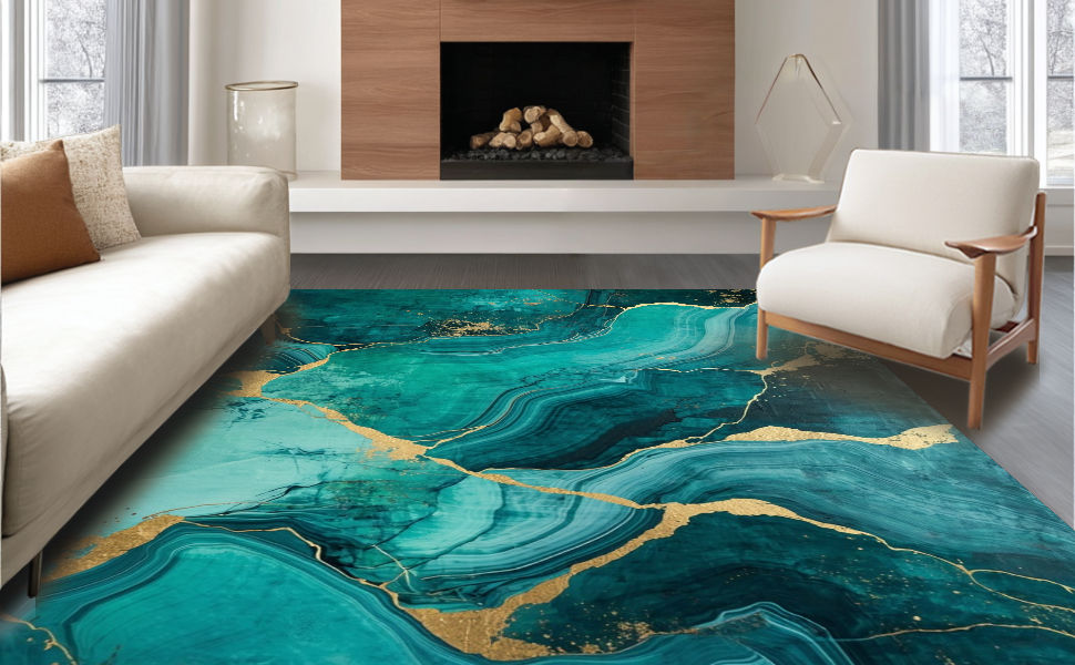 Ultra Soft Area Rug, Non Slip, Stain Resistant, Washable Area Rugs for Living Room, Bedroom, Dreamy Teal and Gold Harmony(Blue) Overview: