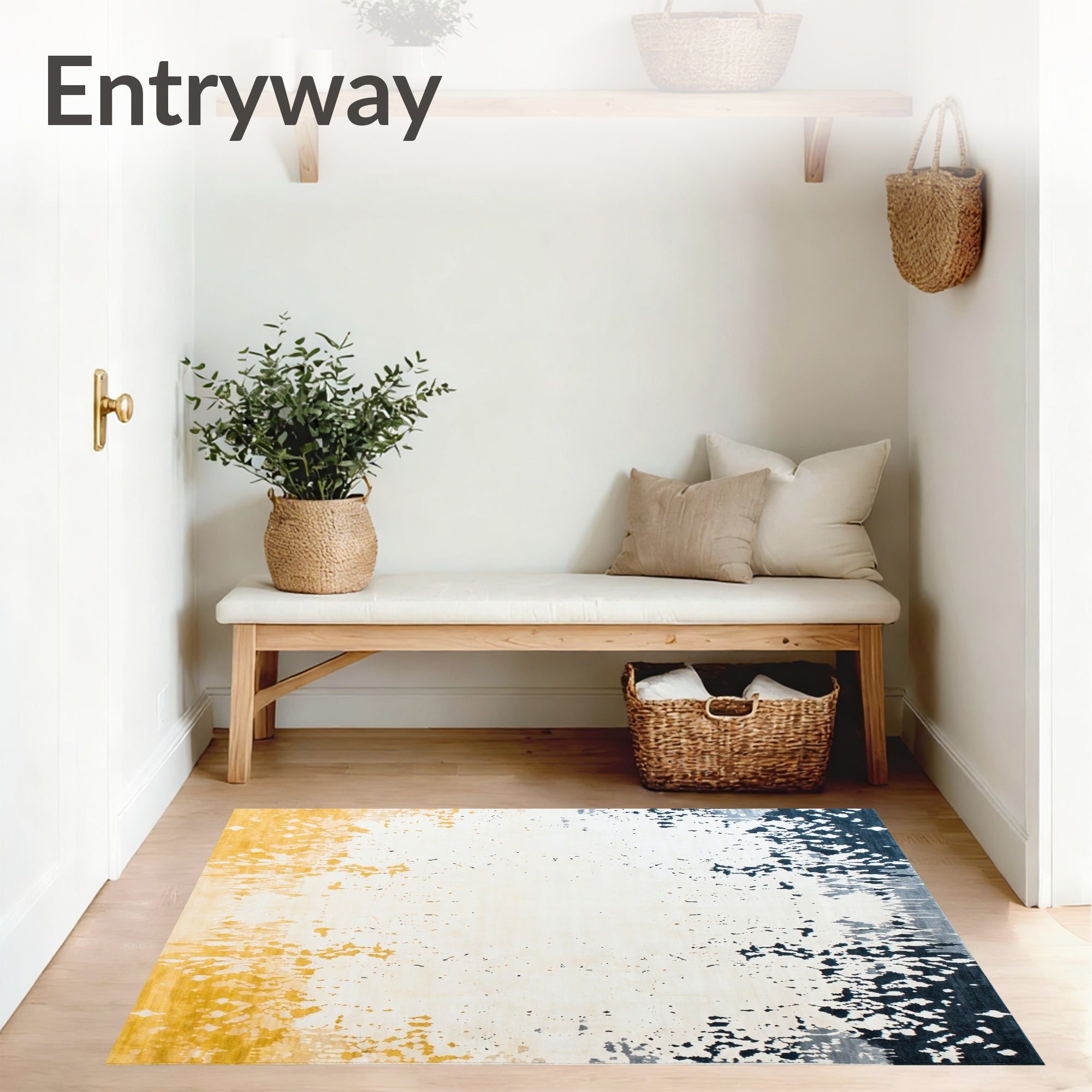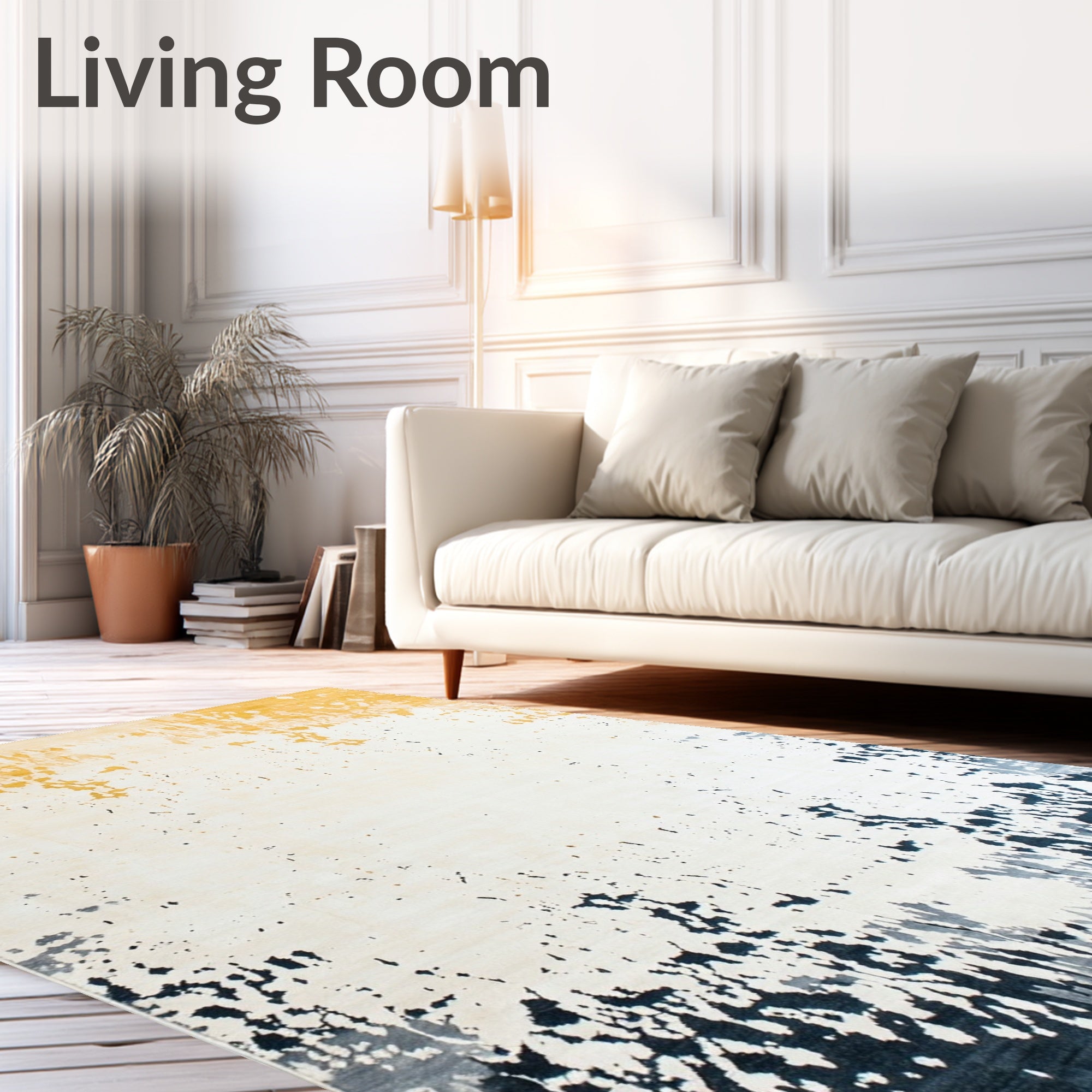 Ultra Soft Area Rug, Non Slip, Stain Resistant, Washable Area Rugs for Living Room, Bedroom, Dreamy Tie Dye Artistic Splatter Design for Playful Ambiance(Yellow) Overview: