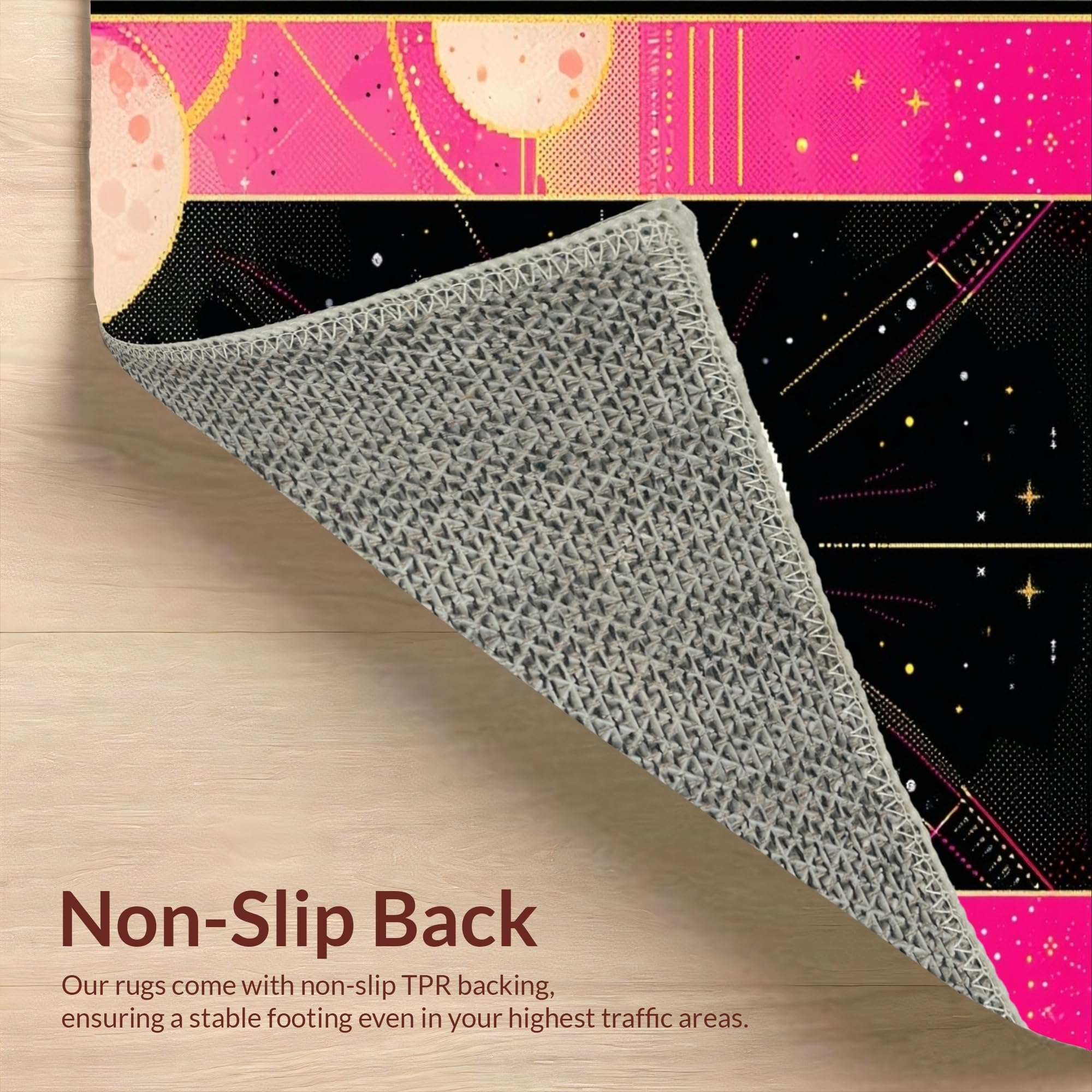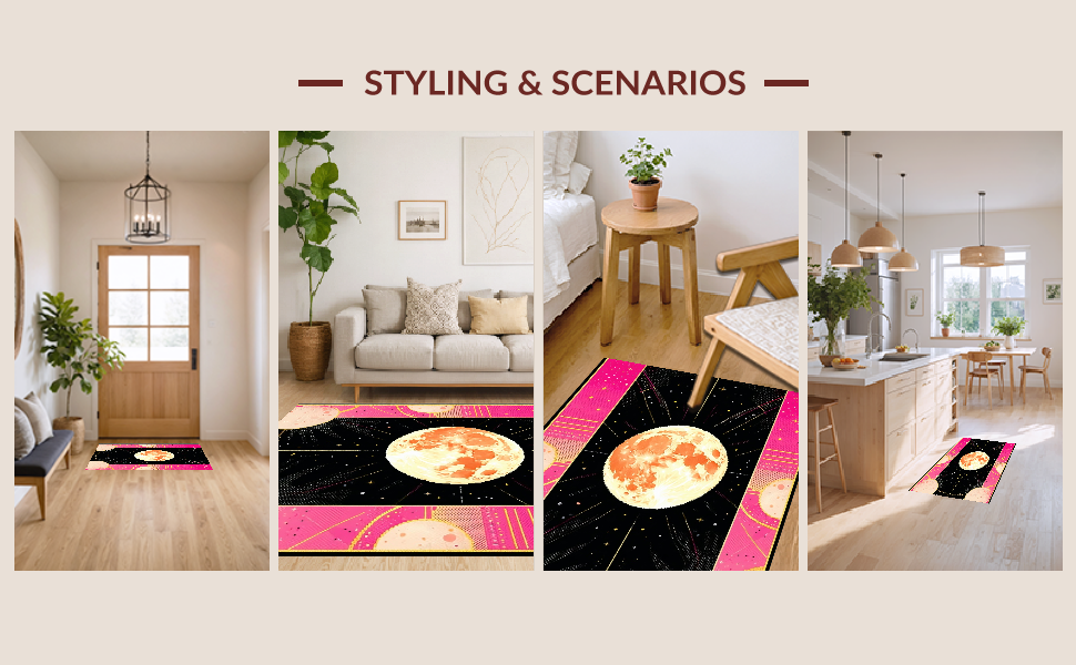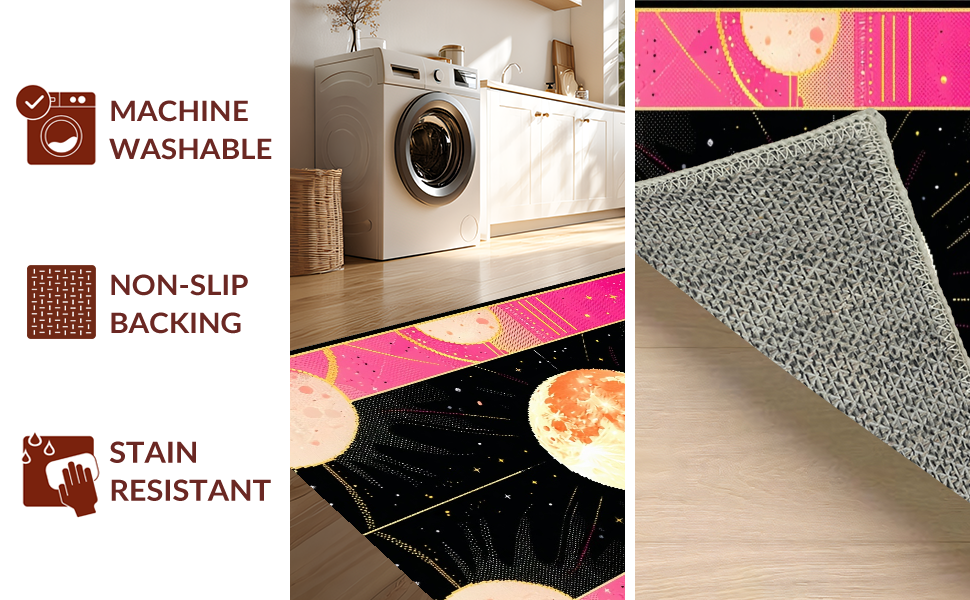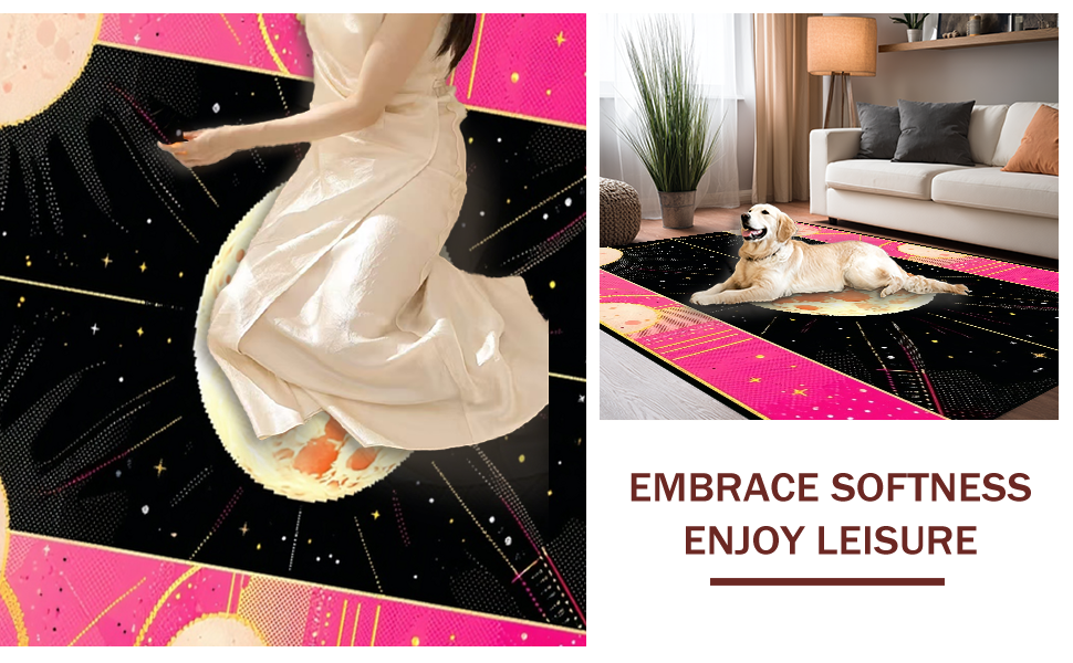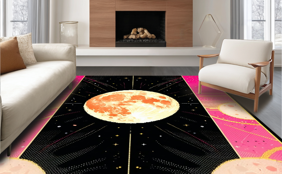 Ultra Soft Area Rug, Non Slip, Stain Resistant, Washable Area Rugs for Living Room, Bedroom, Dreamy Whimsical Celestial Aesthetic(Pink) Overview: