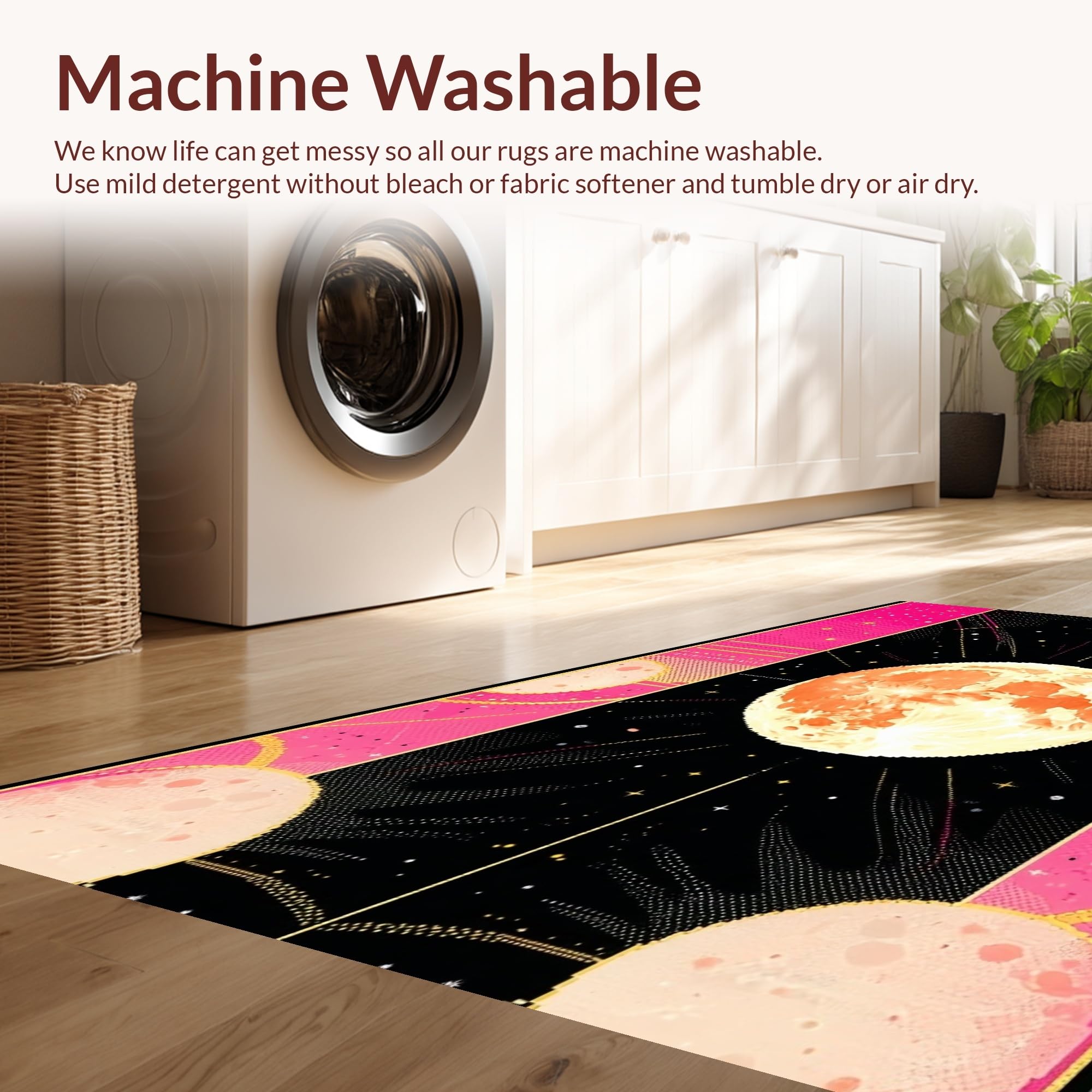 - Machine Washable: Our rugs can be easily thrown in the wash machine.