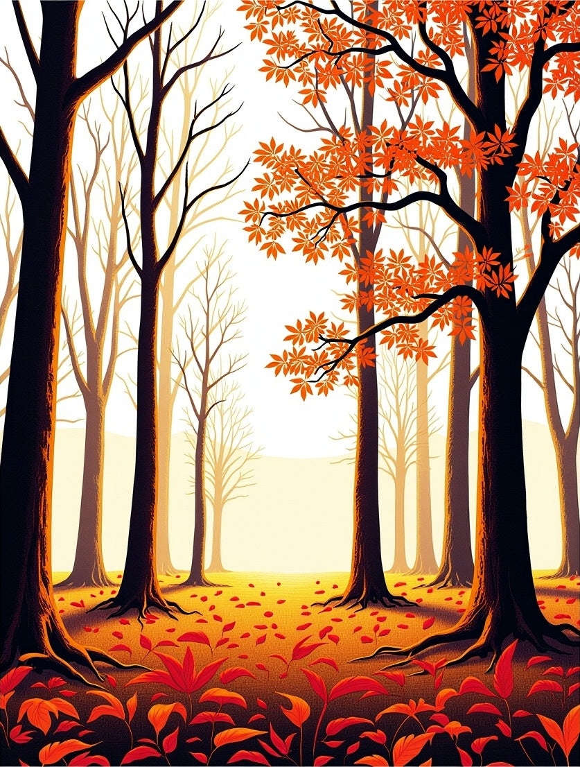 Dreamy Woodland Path Under Glowing Sky(Orange)