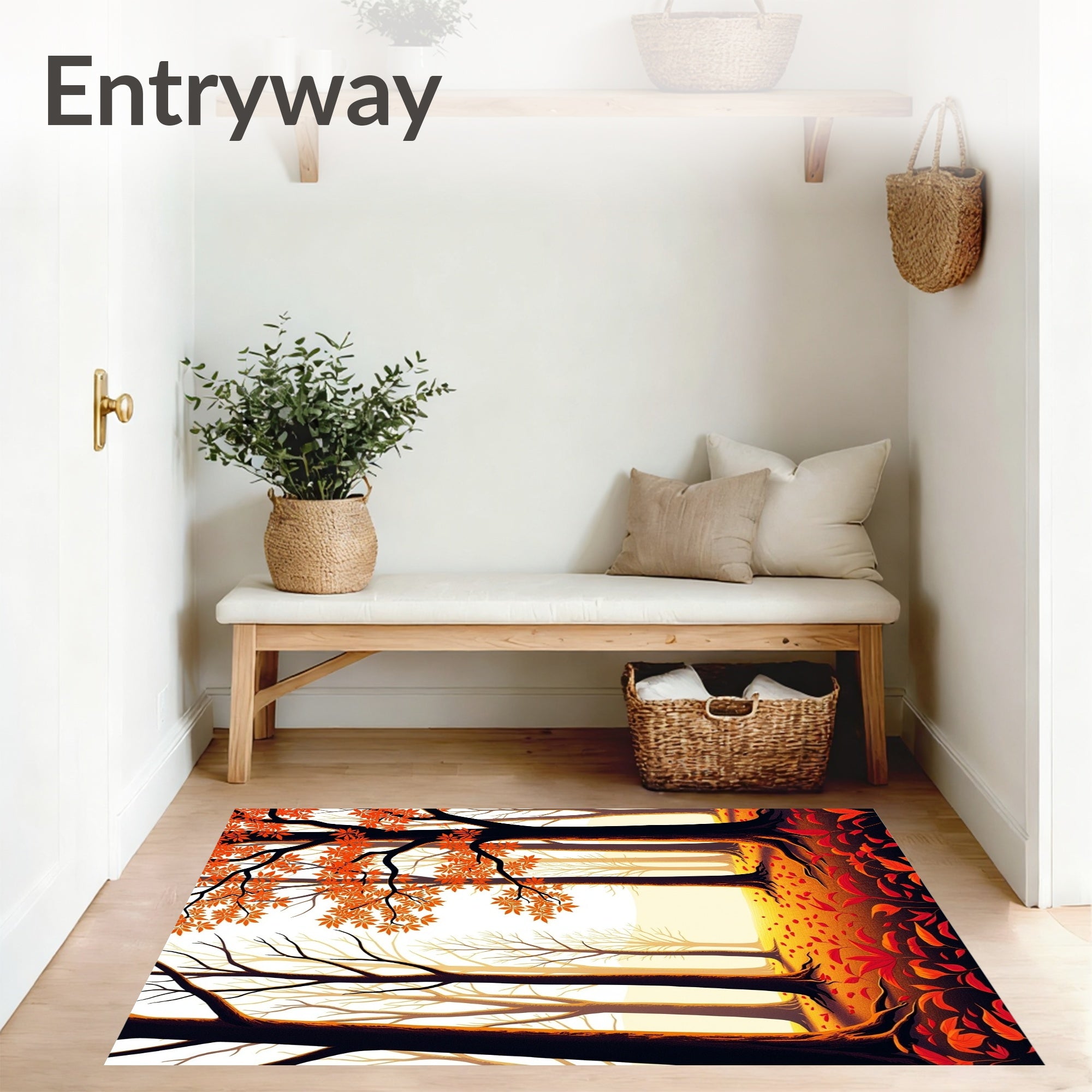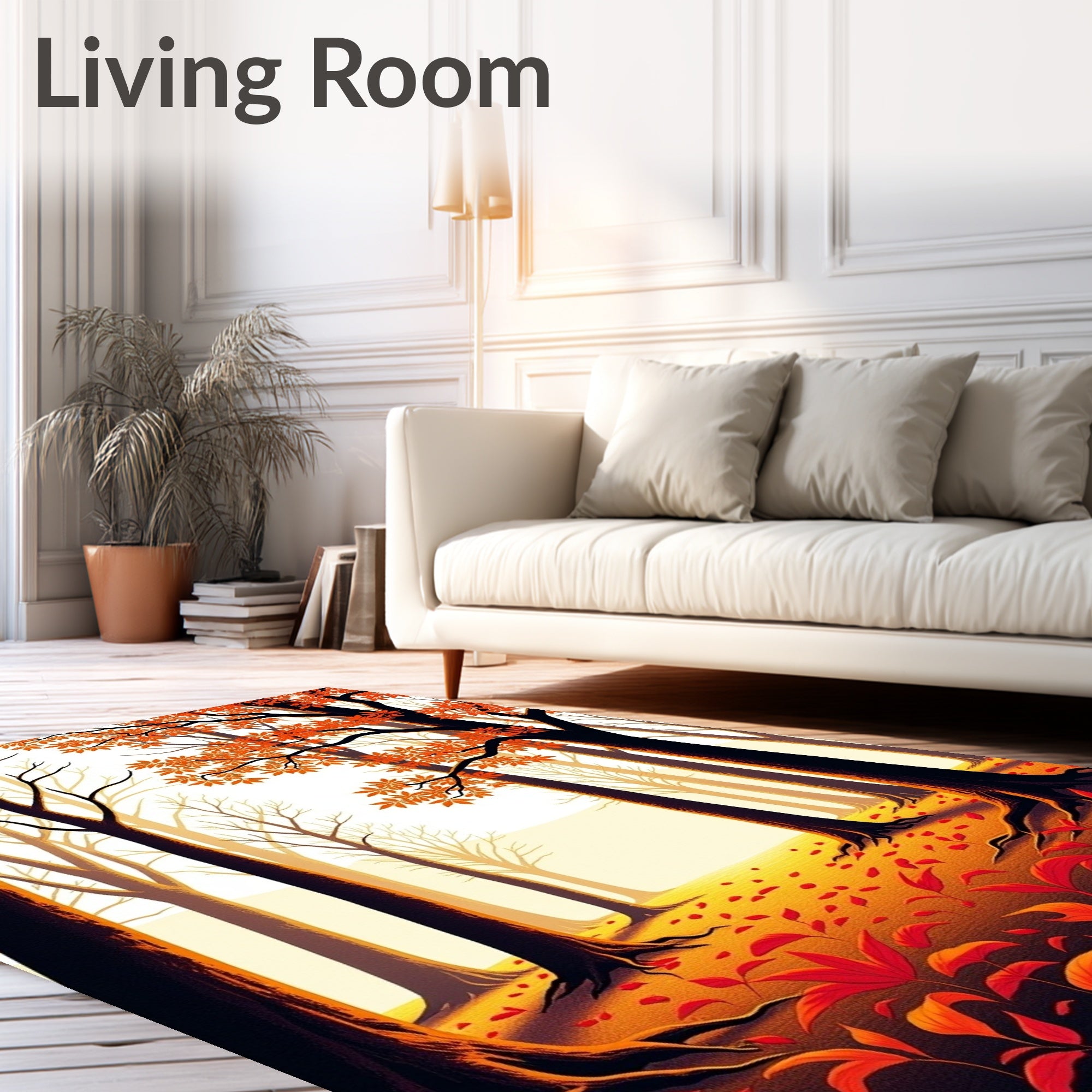 Ultra Soft Area Rug, Non Slip, Stain Resistant, Washable Area Rugs for Living Room, Bedroom, Dreamy Woodland Path Under Glowing Sky(Orange) Overview: