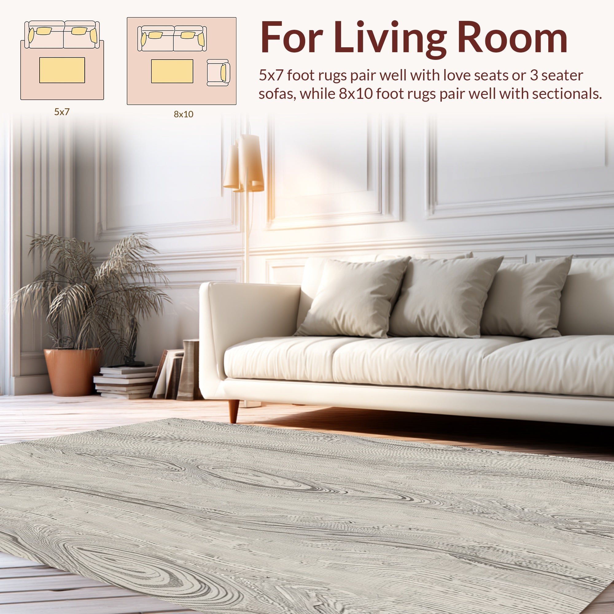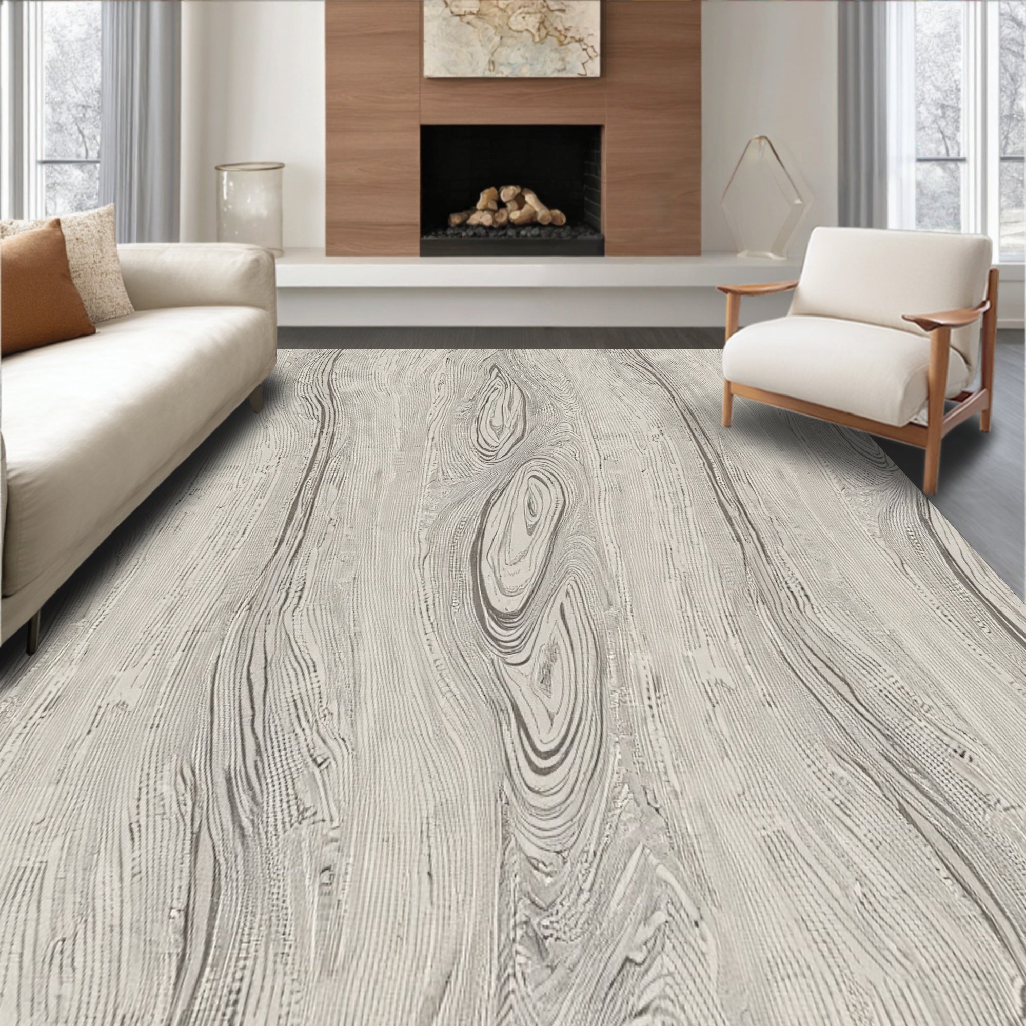 Ultra Soft Area Rug, Non Slip, Stain Resistant, Washable Area Rugs for Living Room, Bedroom, Driftwood Grain Abstract Artisan(Gray) Overview: