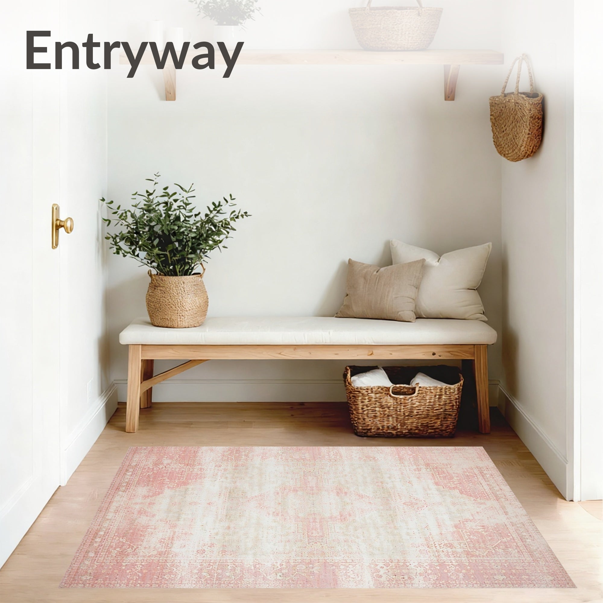 Durable Entryway Beige Dusty Pink Stain Repellent(Pink)
