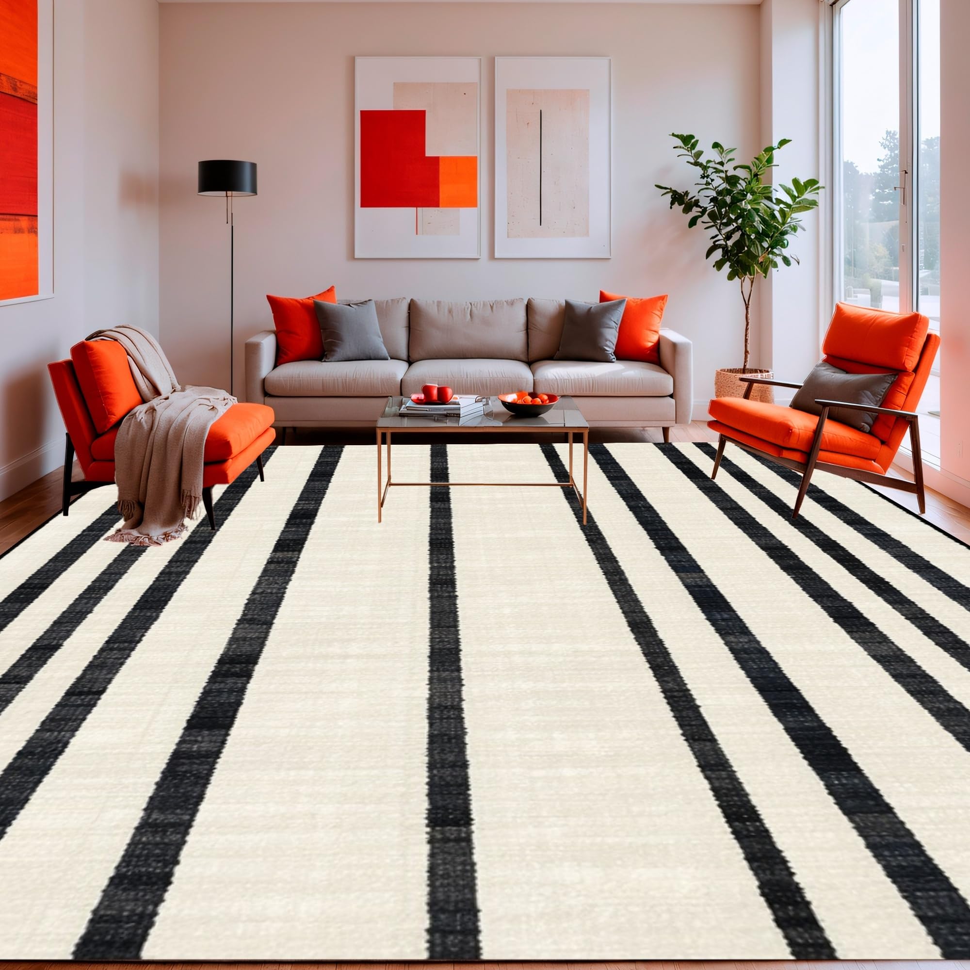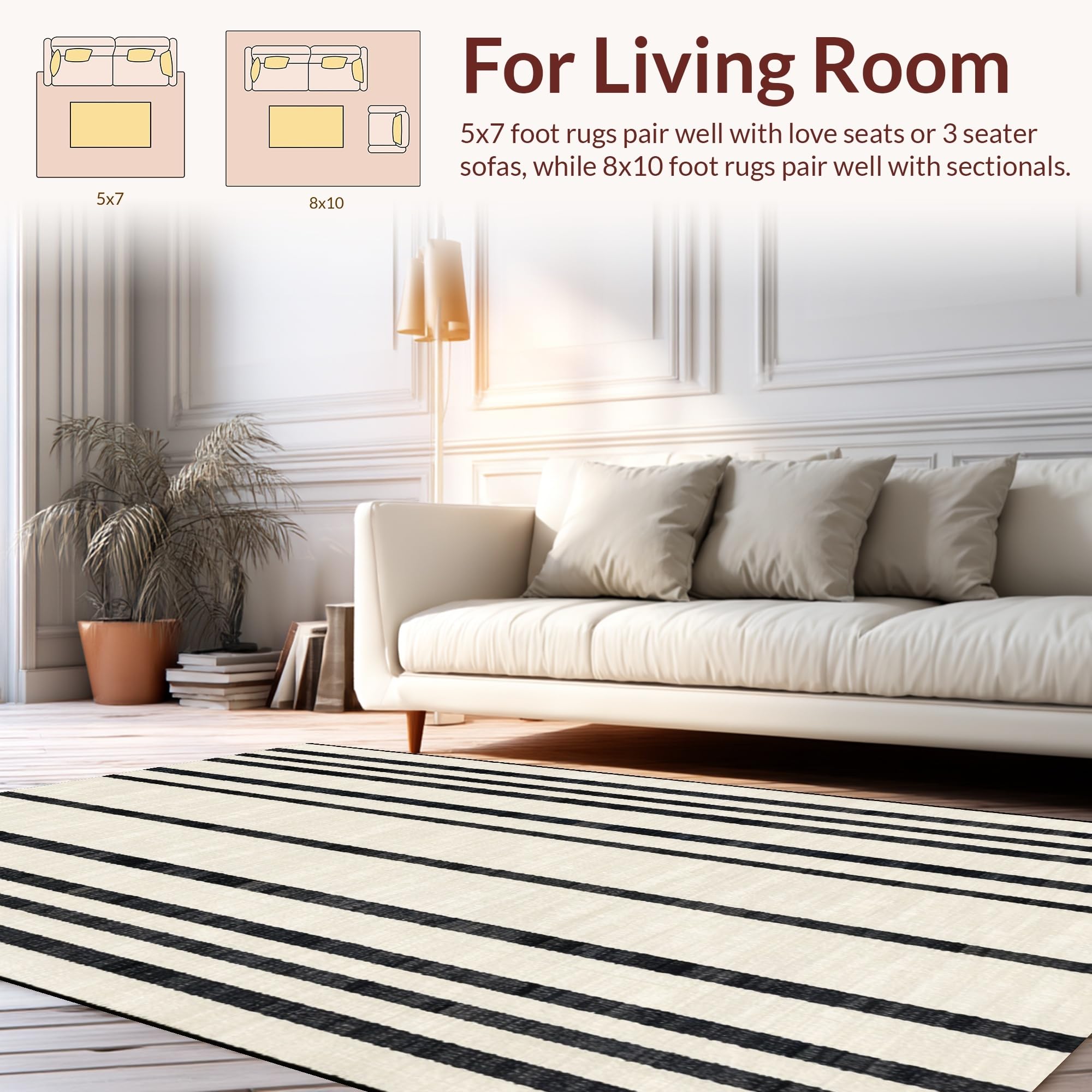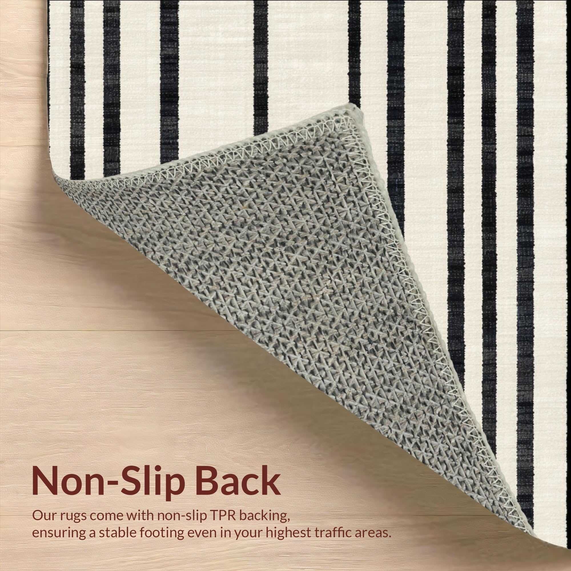 Ultra Soft Area Rug, Non Slip, Stain Resistant, Washable Area Rugs for Living Room, Bedroom, Durable Indoor Entry Rug with Striped Design(Beige) Overview: