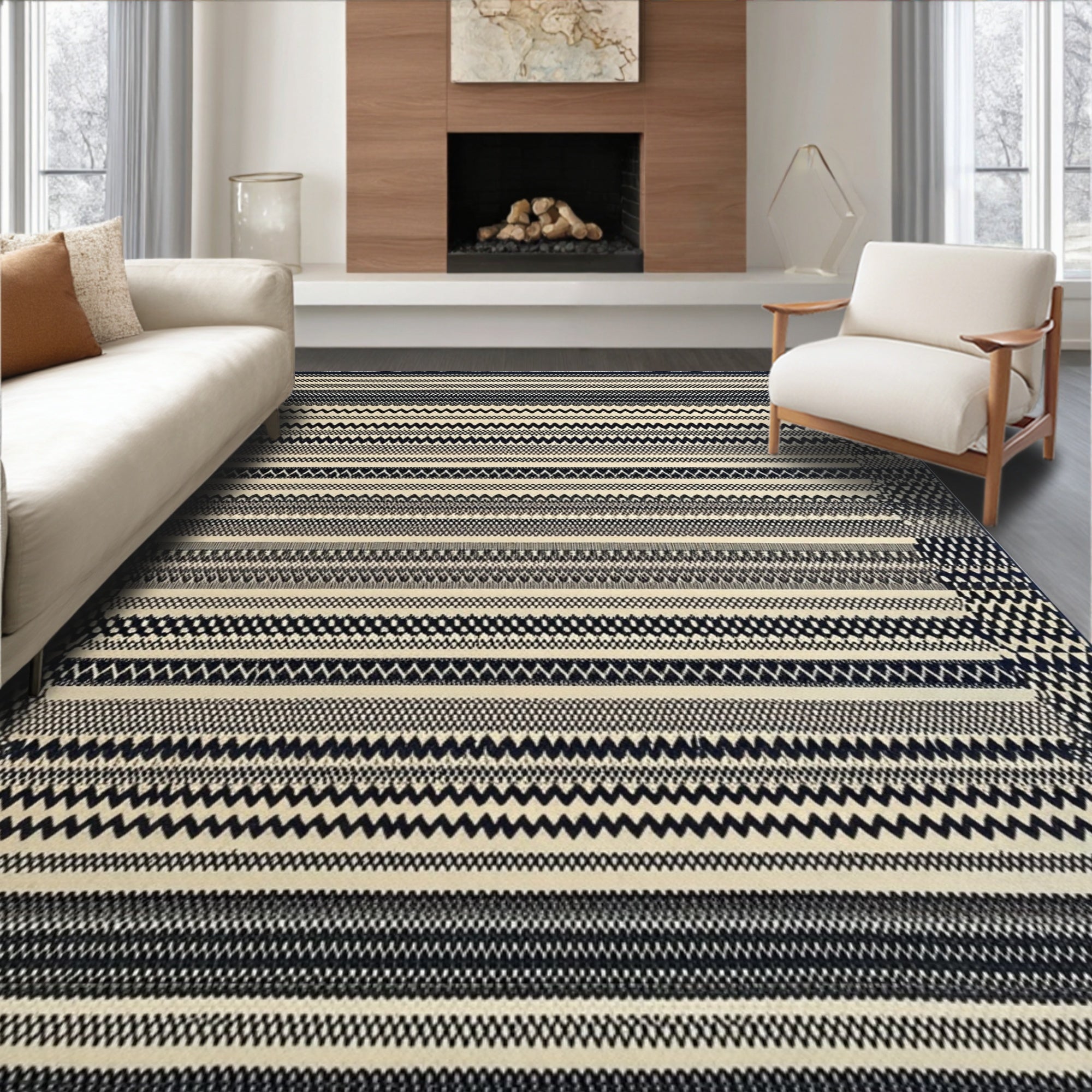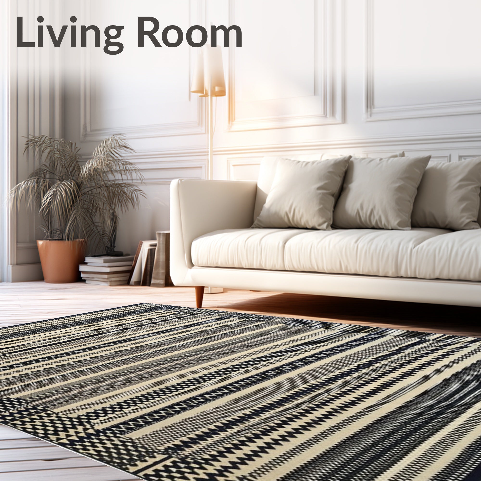 Ultra Soft Area Rug, Non Slip, Stain Resistant, Washable Area Rugs for Living Room, Bedroom, Durable Plastic Reversible Design for Deck and Yard Spaces(Black) Overview: