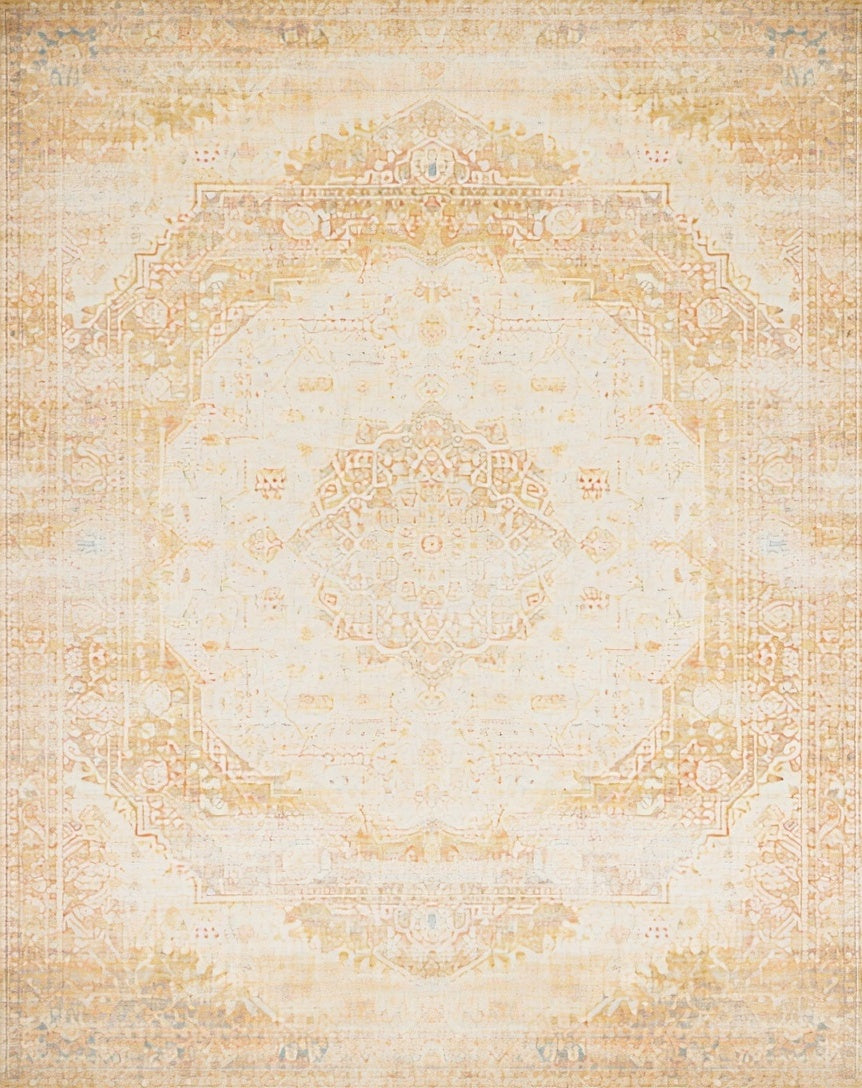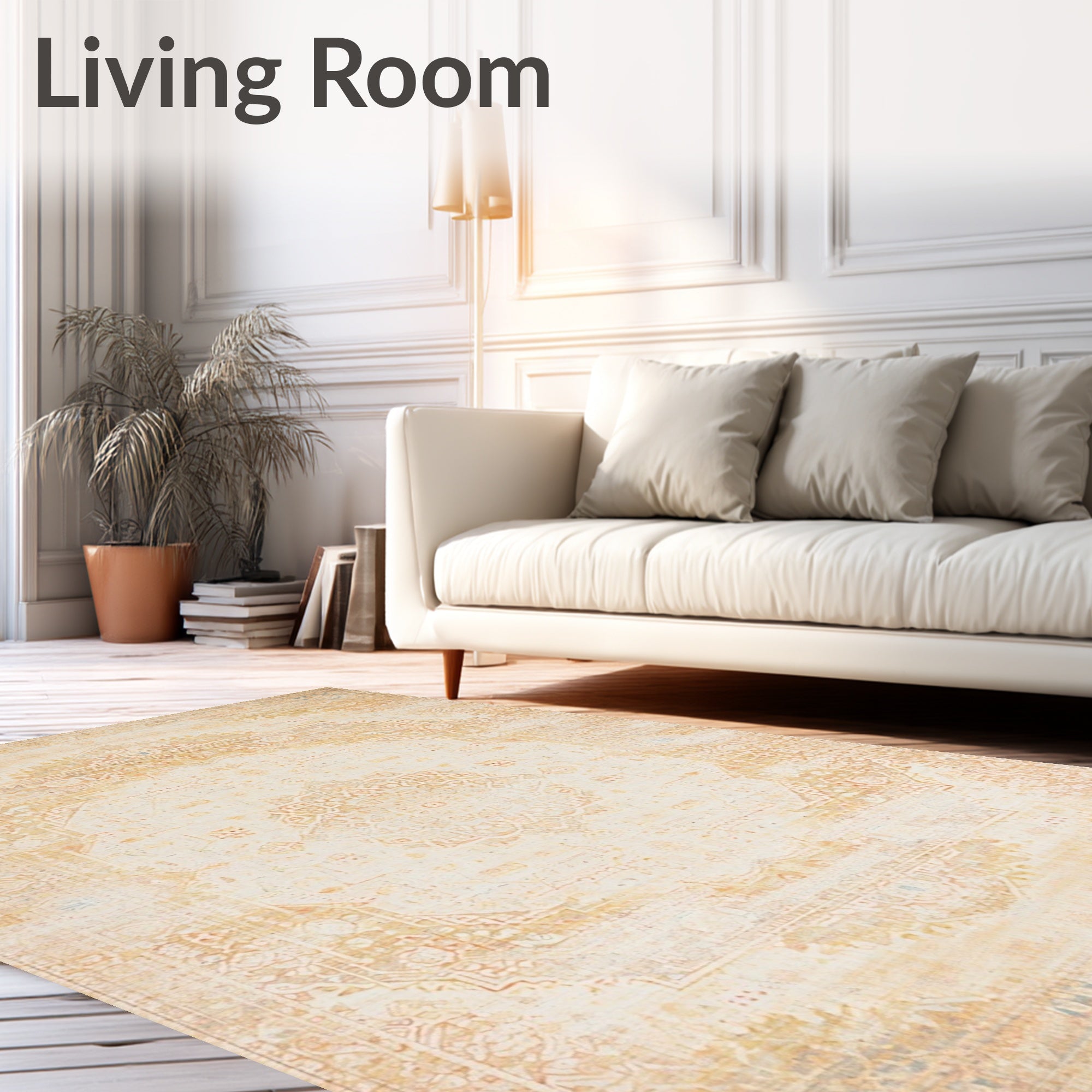 Ultra Soft Area Rug, Non Slip, Stain Resistant, Washable Area Rugs for Living Room, Bedroom, Durable with a Faded Abstract Medallion Motif in Beige(Beige) Overview: