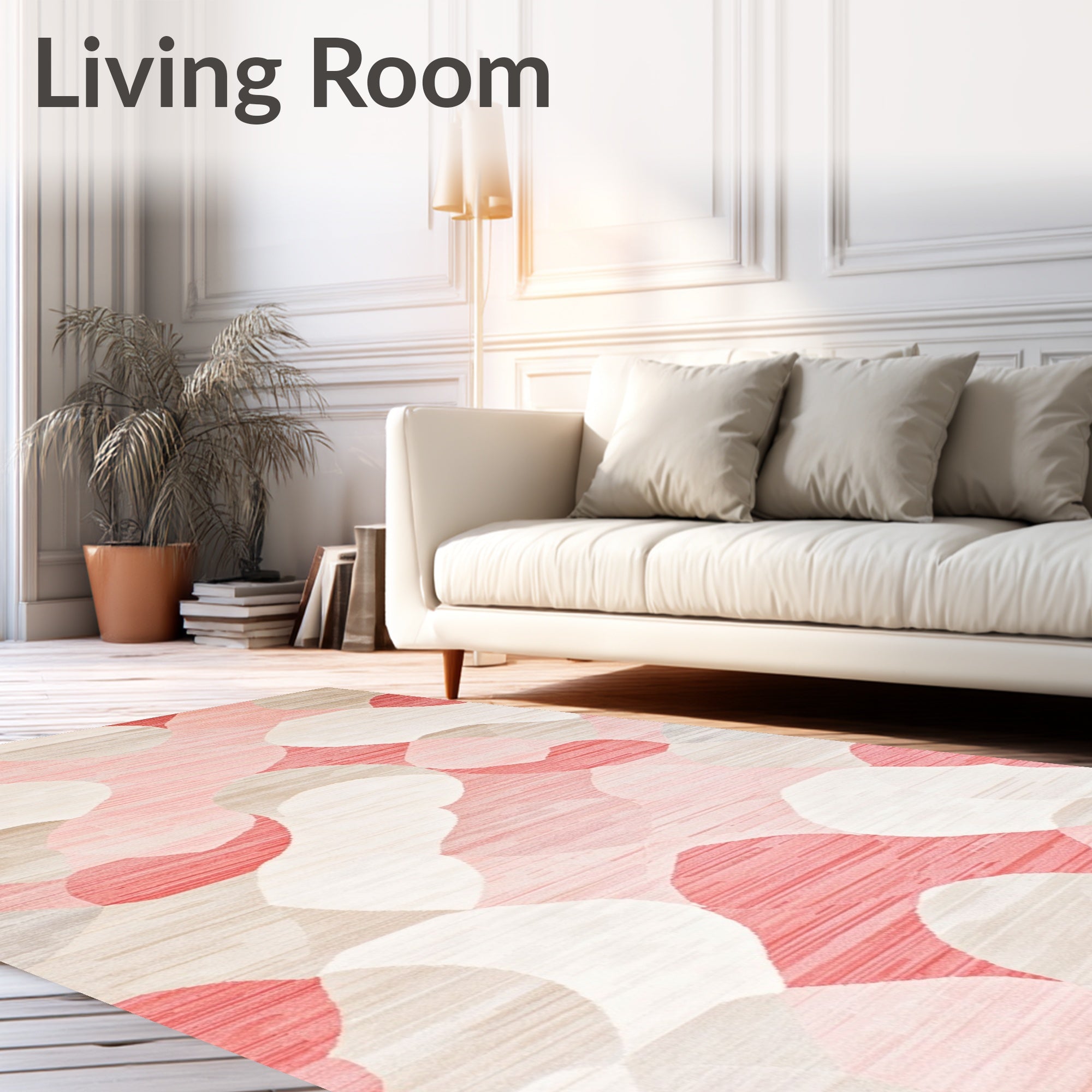 Ultra Soft Area Rug, Non Slip, Stain Resistant, Washable Area Rugs for Living Room, Bedroom, Dusty Rose and Cream Abstract Area With Geometric Flow Design(Red) Overview: