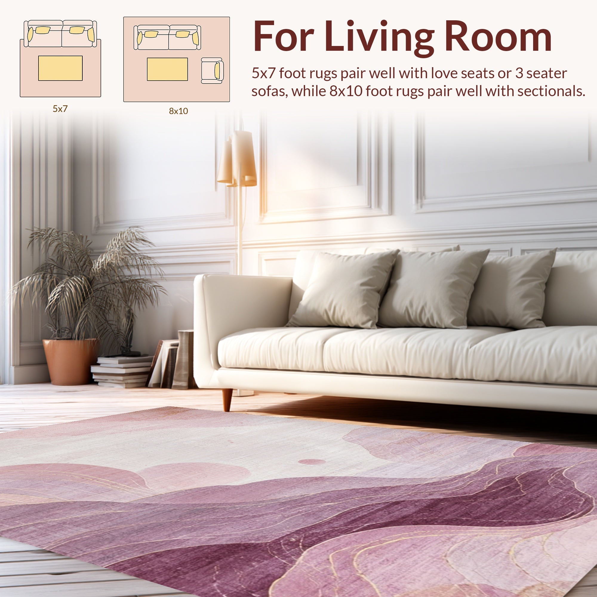 Ultra Soft Area Rug, Non Slip, Stain Resistant, Washable Area Rugs for Living Room, Bedroom, Dusty Rose Kawaii Plush Rug with Soft Mauve Swirls and Cozy Pink Tones(Purple) Overview: