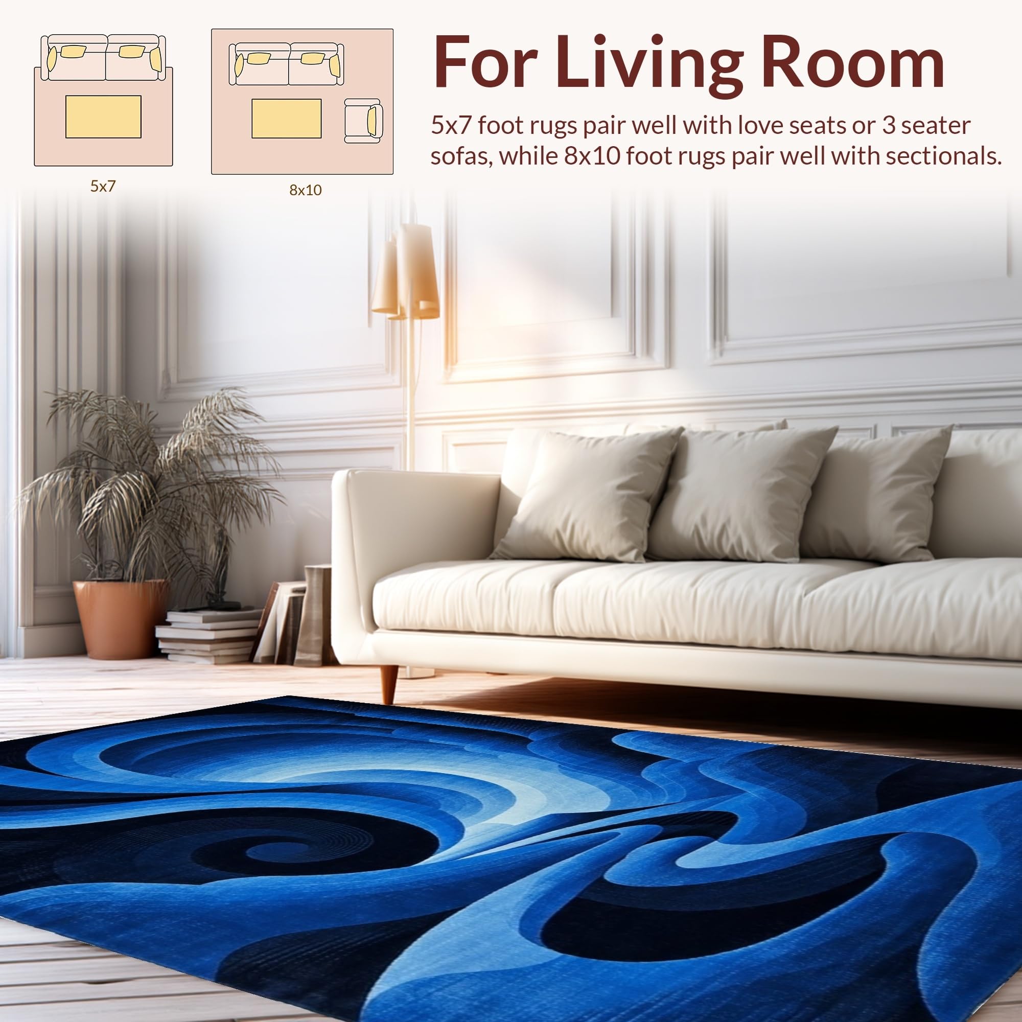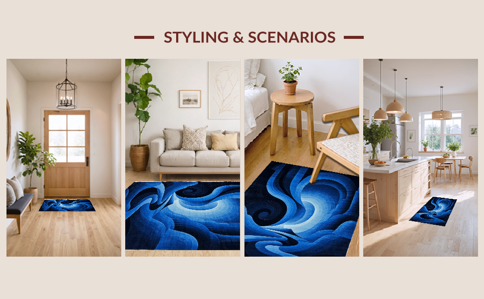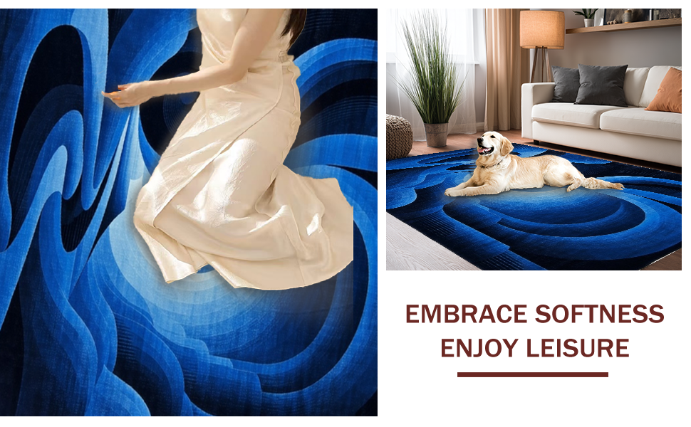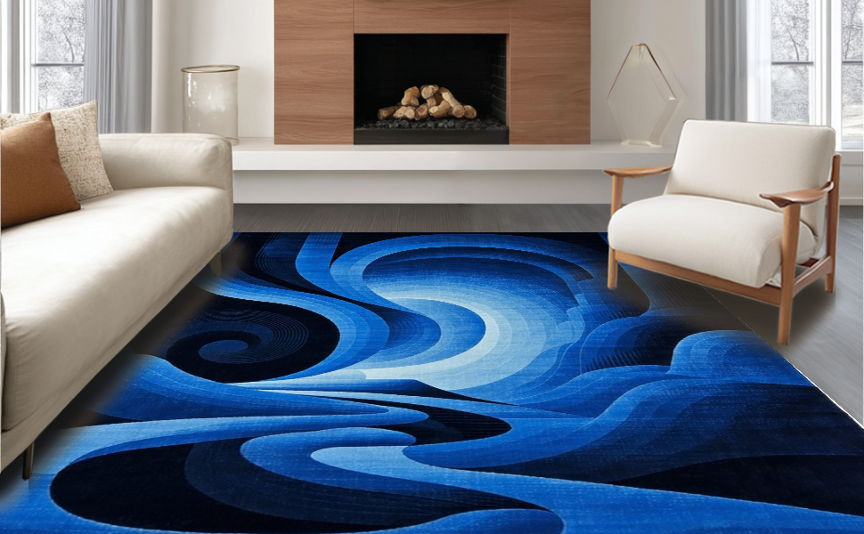 Ultra Soft Area Rug, Non Slip, Stain Resistant, Washable Area Rugs for Living Room, Bedroom, Dynamic 3D Vortex Illusion(Blue) Overview: