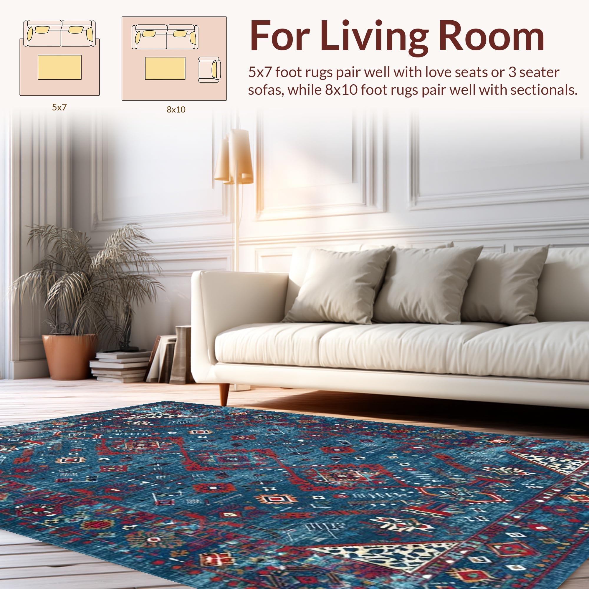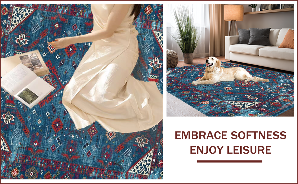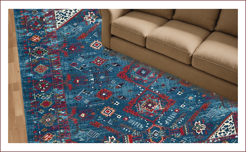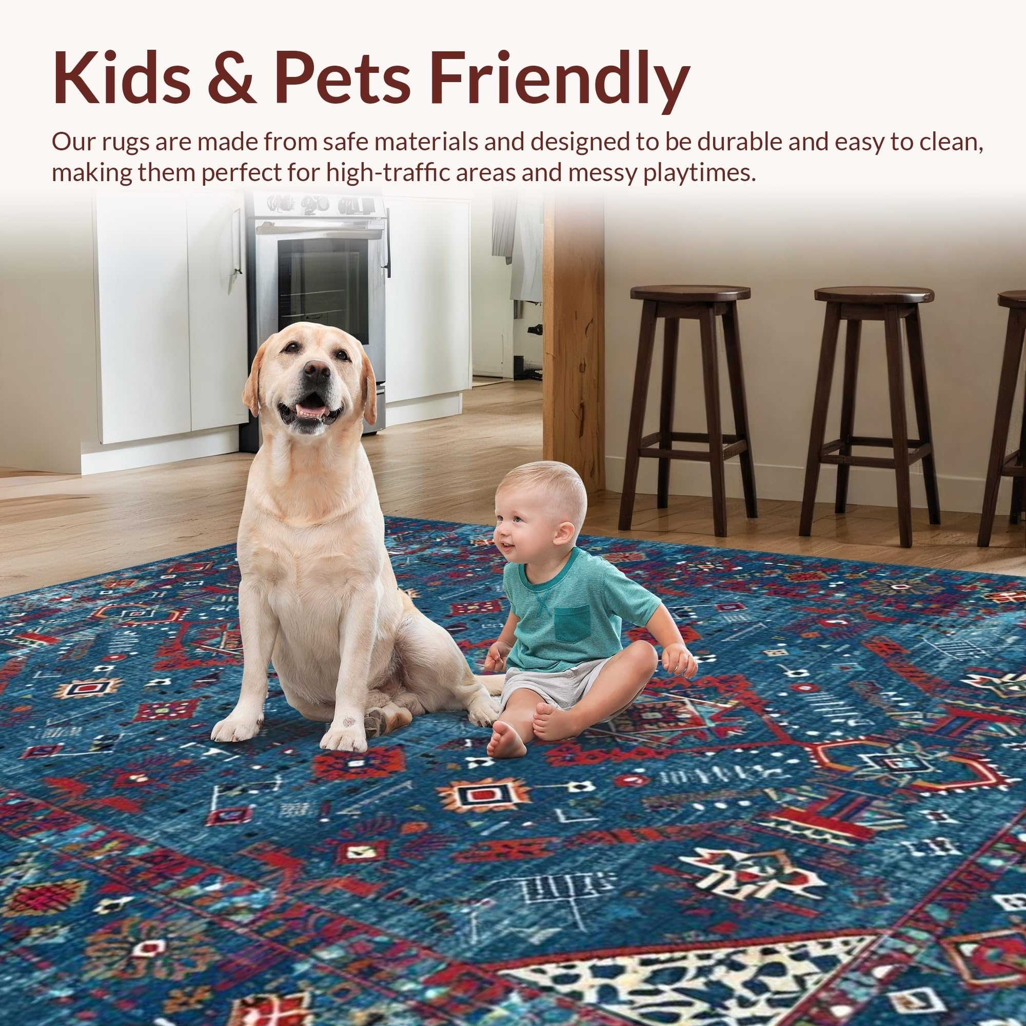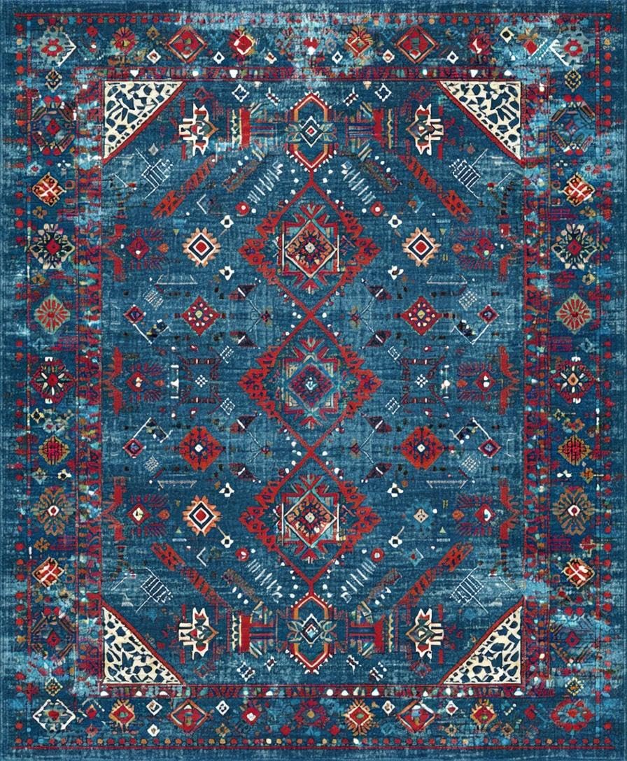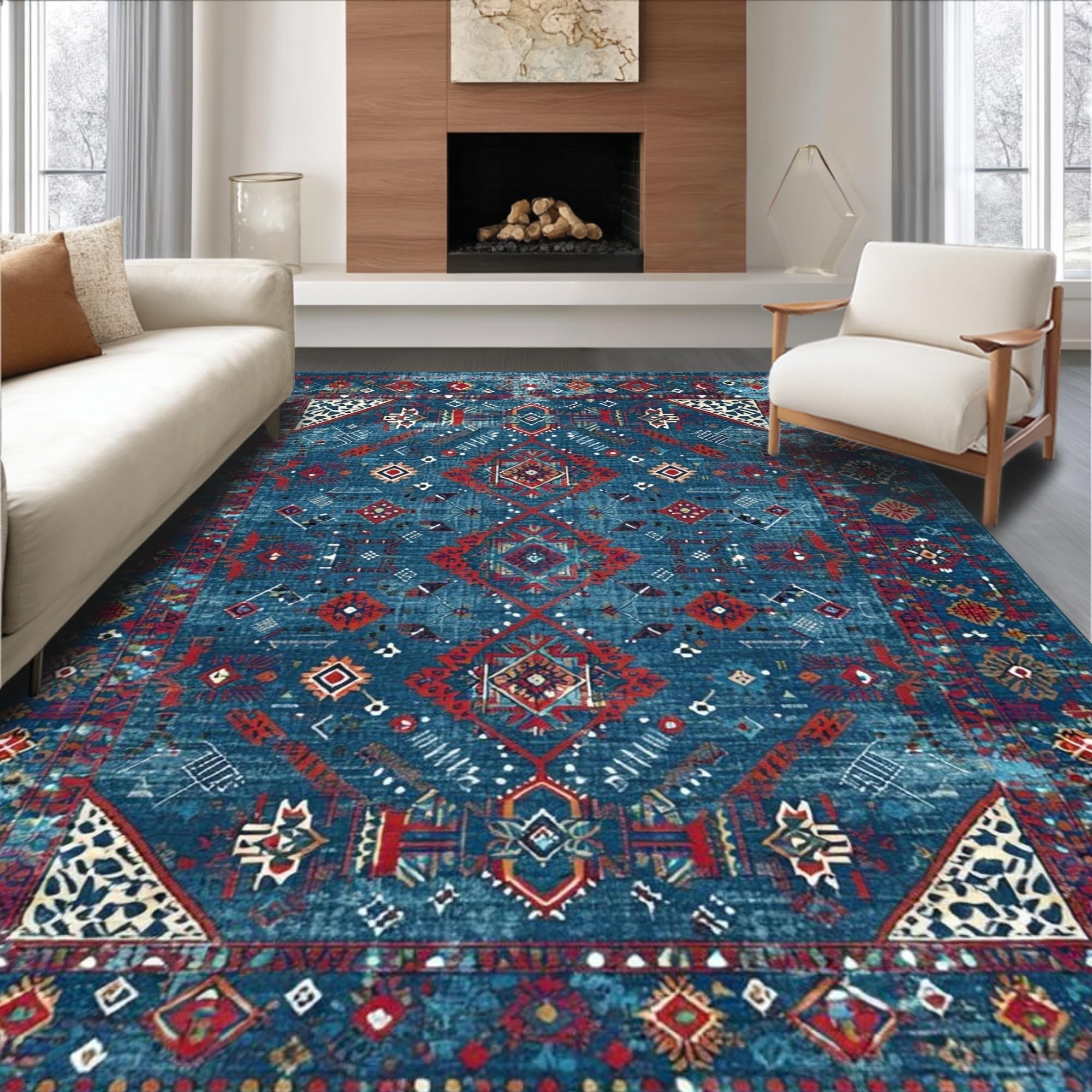 Ultra Soft Area Rug, Non Slip, Stain Resistant, Washable Area Rugs for Living Room, Bedroom, Dynamic Abstract Boho Fusion(Blue) Overview: