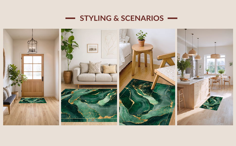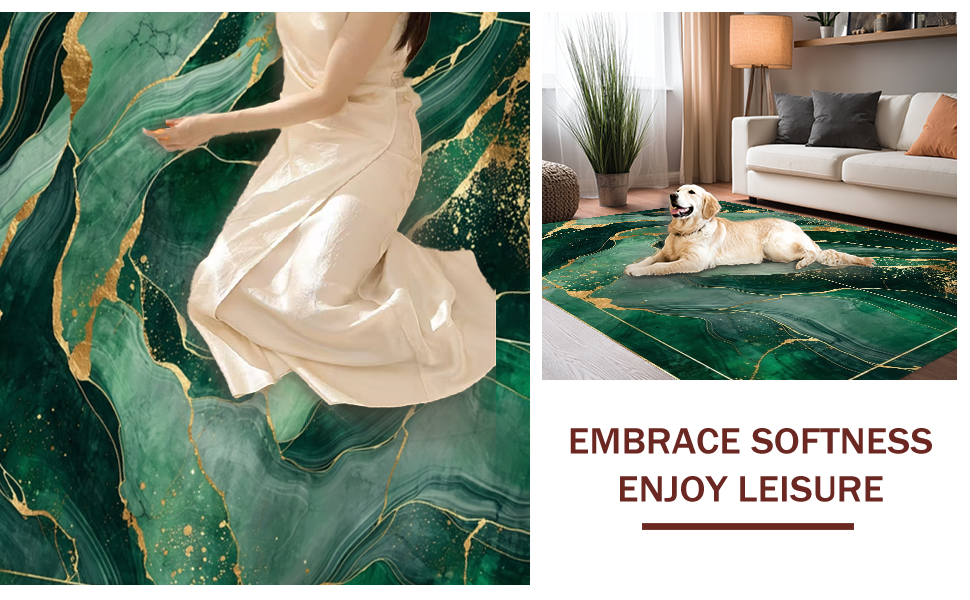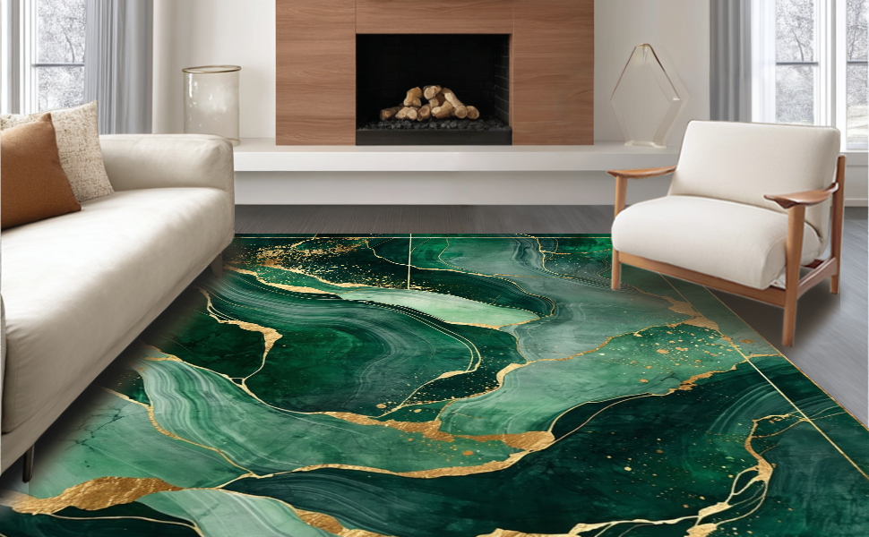 Ultra Soft Area Rug, Non Slip, Stain Resistant, Washable Area Rugs for Living Room, Bedroom, Dynamic Abstract Green Composition(Green) Overview: