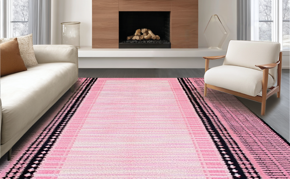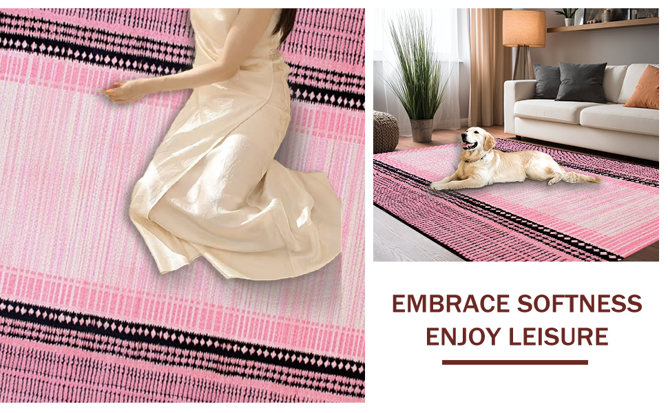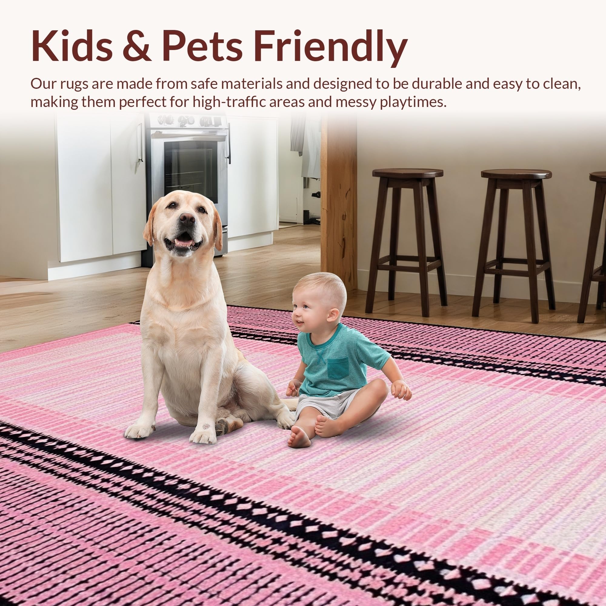 Ultra Soft Area Rug, Non Slip, Stain Resistant, Washable Area Rugs for Living Room, Bedroom, Dynamic Abstract Shape Arrangement(Pink) Overview: