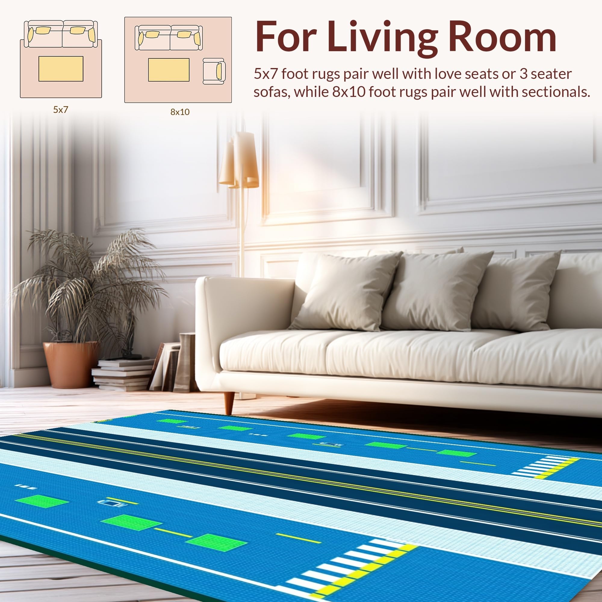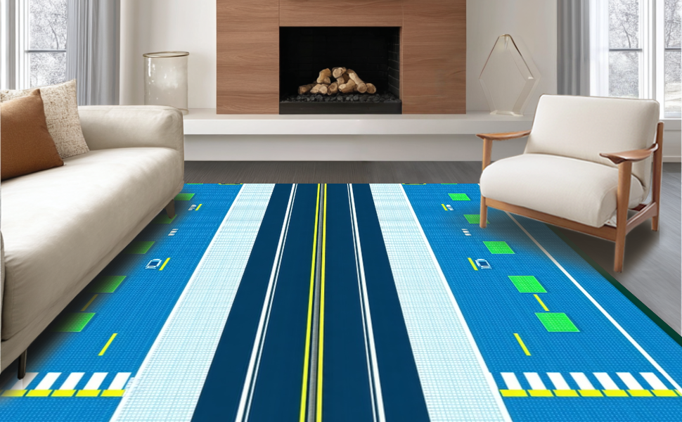 Ultra Soft Area Rug, Non Slip, Stain Resistant, Washable Area Rugs for Living Room, Bedroom, Dynamic Airplane Themed Graphic(Blue) Overview:
