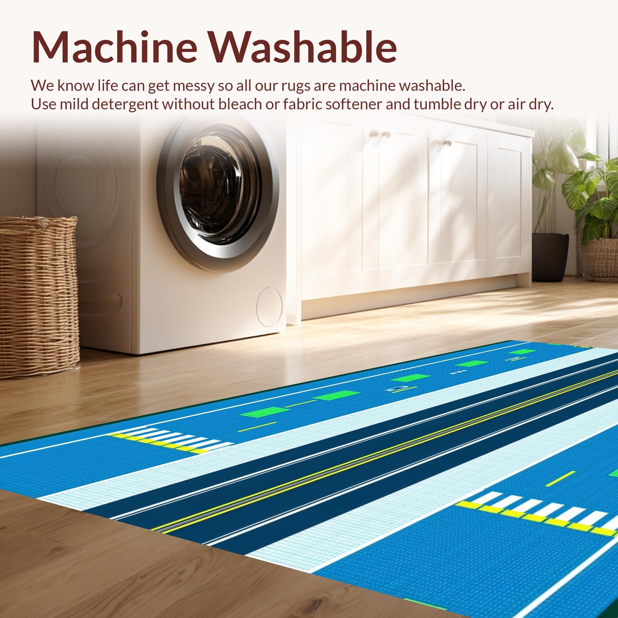 - Machine Washable: Our rugs can be easily thrown in the wash machine.