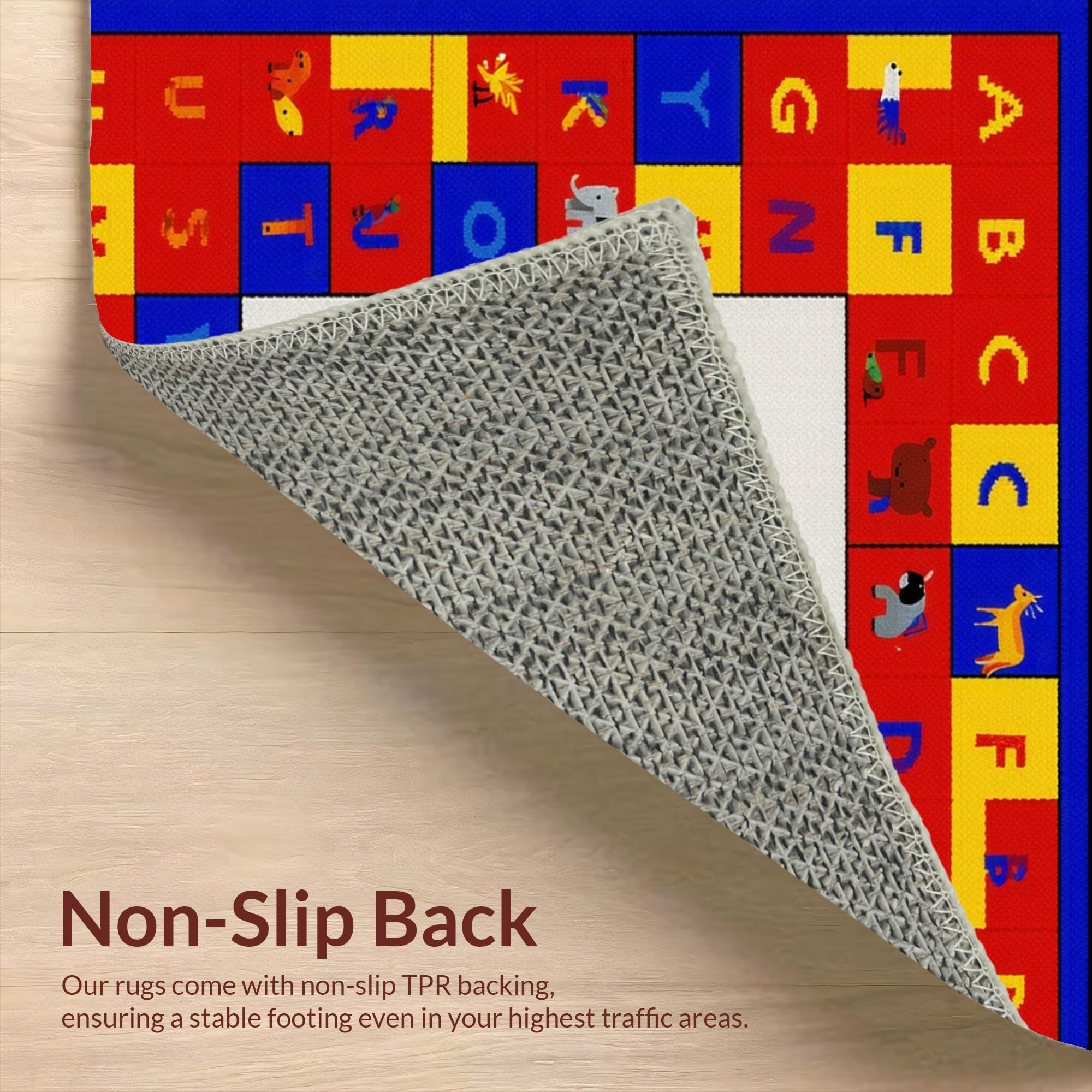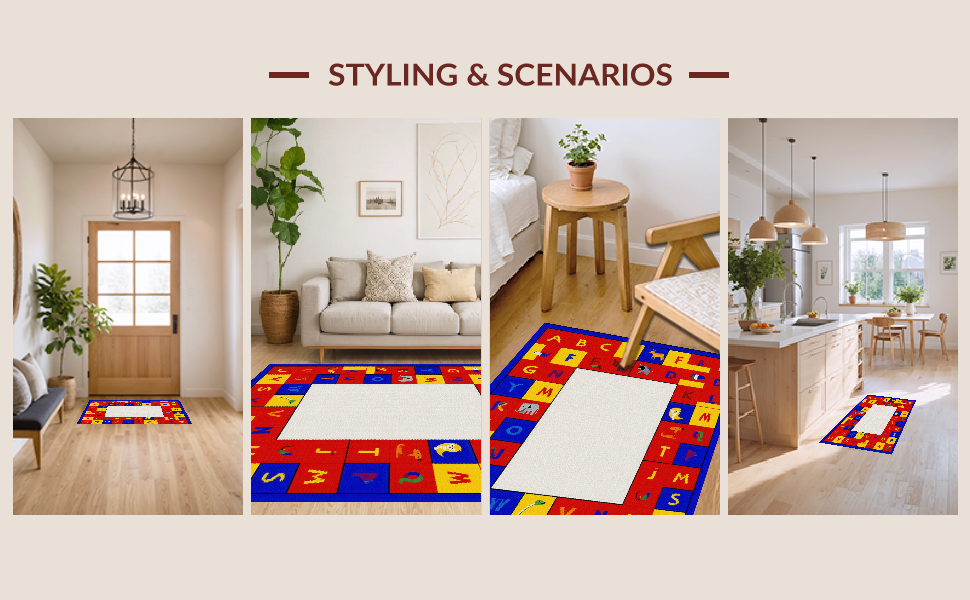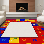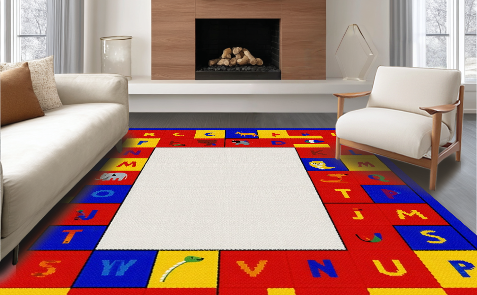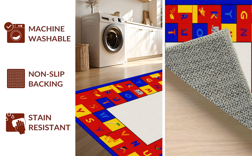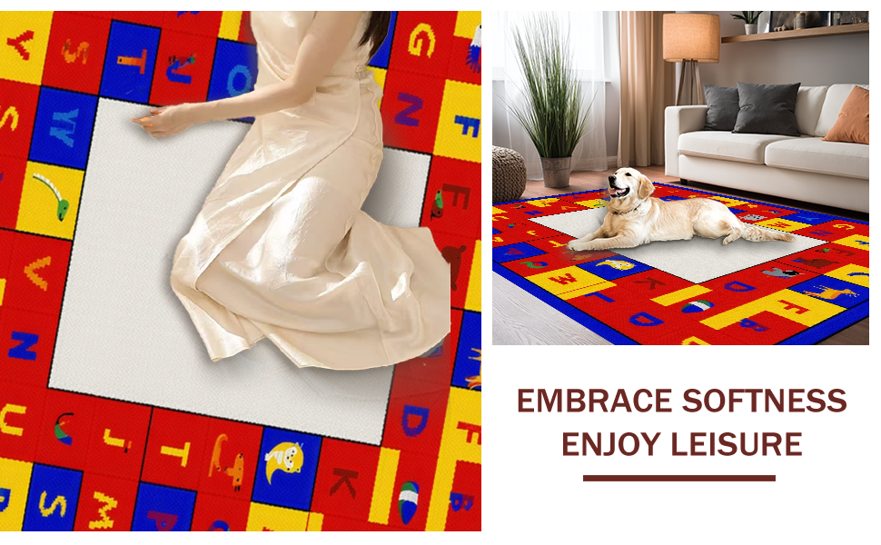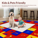 Ultra Soft Area Rug, Non Slip, Stain Resistant, Washable Area Rugs for Living Room, Bedroom, Dynamic Alphabetical Adventure Design(Red) Overview:
